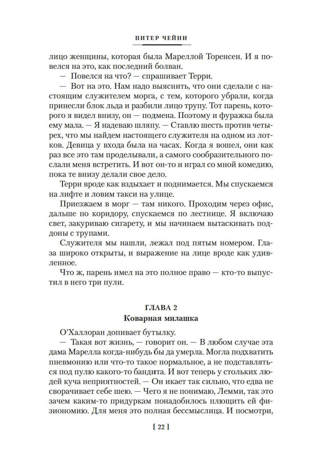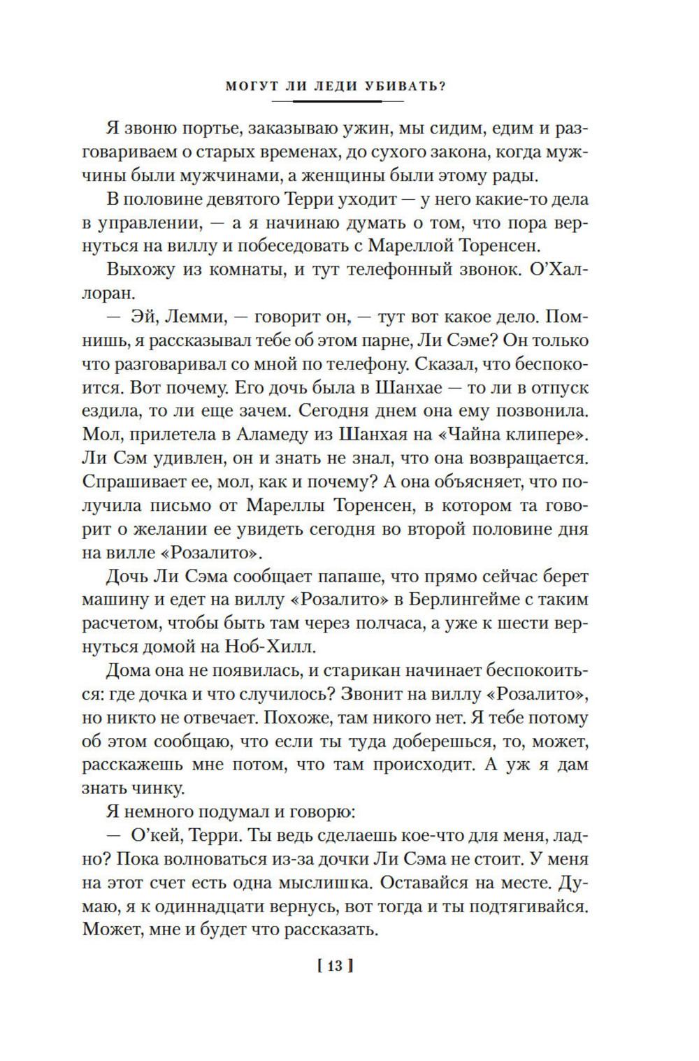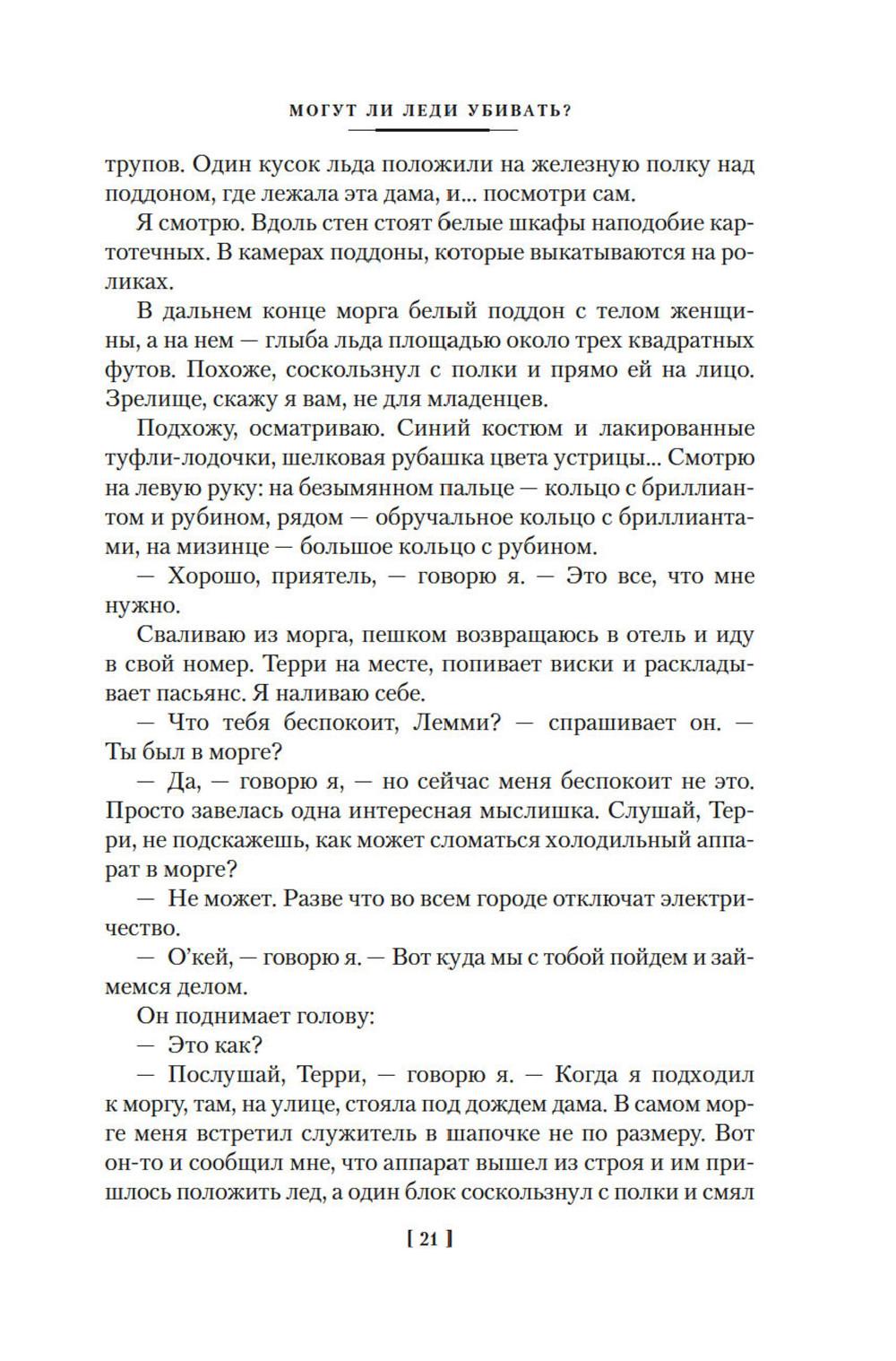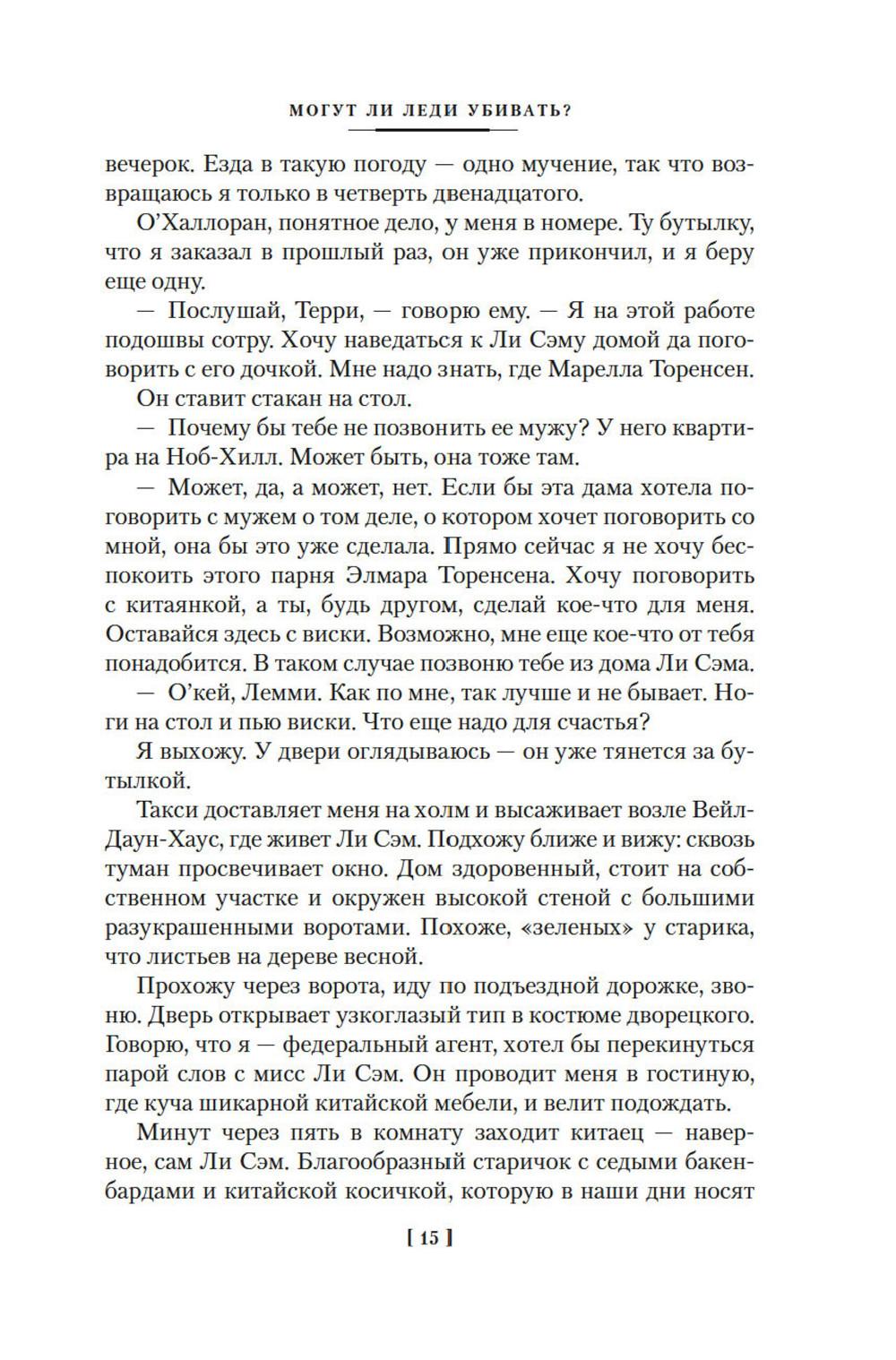 СОДЕРЖИТ ИНФОРМАЦИЮ О НАРКОТИЧЕСКИХ ИЛИ ПСИХОТРОПНЫХ ВЕЩЕСТВАХ, УПОТРЕБЛЕНИЕ КОТОРЫХ ОПАСНО ДЛЯ ЗДОРОВЬЯ. ИХ НЕЗАКОННЫЙ ОБОРОТ ВЛЕЧЕТ УГОЛОВНУЮ ОТВЕТСТВЕННОСТЬ. Классика крутого детектива от прославленного английского писателя. Четвертый, пятый и шестой романы о расследованиях агента ФБР Лемми Коушена. Могут ли леди убивать? Когда директор ФБР получил письмо от некой Мареллы Торенсен с намеками на преступления государственного масштаба, разгадывать загадку он отправил Лемми Коушена. Явившись к автору письма в назначенное время, Лемми обнаружил, что дом пуст, а Марелла странным образом исчезла. Пустяковое, казалось бы, дело выльется в нелегкое расследование, в ходе которого Лемми столкнется с контрабандистами, наемными убийцами, китайской мафией и смертельно опасными красавицами. Поймите меня правильно Двое ученых-химиков, англичанин и американец, независимо друг от друга занялись разработкой отравляющего газа, способного стать оружием нового поколения. В такой ситуации вполне логично объединить усилия, чтобы обеспечить быстрый успех. Решено поселить химиков на тихой гасиенде в мексиканском захолустье. Но вскоре об этом становится известно главарю одной из чикагских гангстерских банд… Вы не поверите! У питтсбургского «стального короля» пропадает сын. Через какое-то время выясняется: это не очередной побег молодого сумасброда из родительского дома, а похищение, причем довольно странное. Похитители почему-то не торопятся назвать сумму выкупа и вообще не дают о себе знать. А тут еще дочь без памяти влюбляется в русского графа, красавца и «настоящего полковника», и отправляется к избраннику в Париж. Казалось бы, очередной скандал в благородном семействе. Но на дворе 1940 год, и «стальной король» занимается производством оружия для Англии… Романы, вошедшие в этот сборник, публикуются в новых переводах.| Издательство | Азбука |