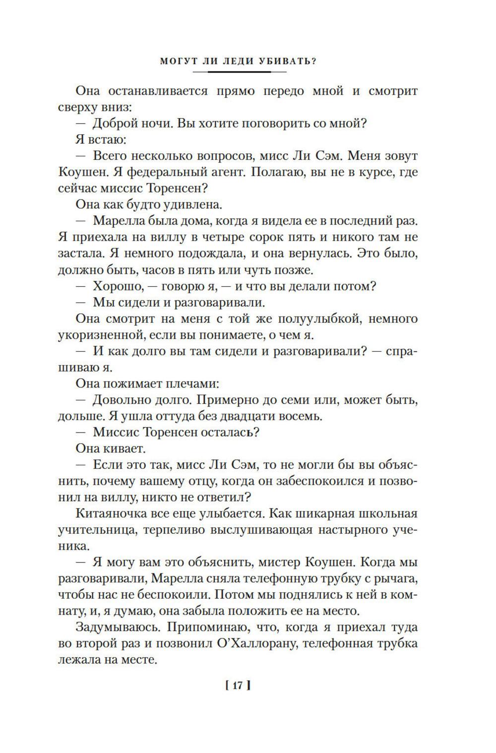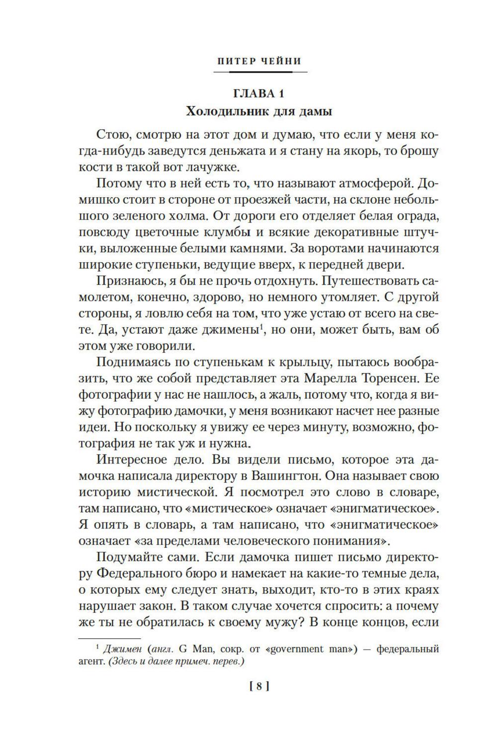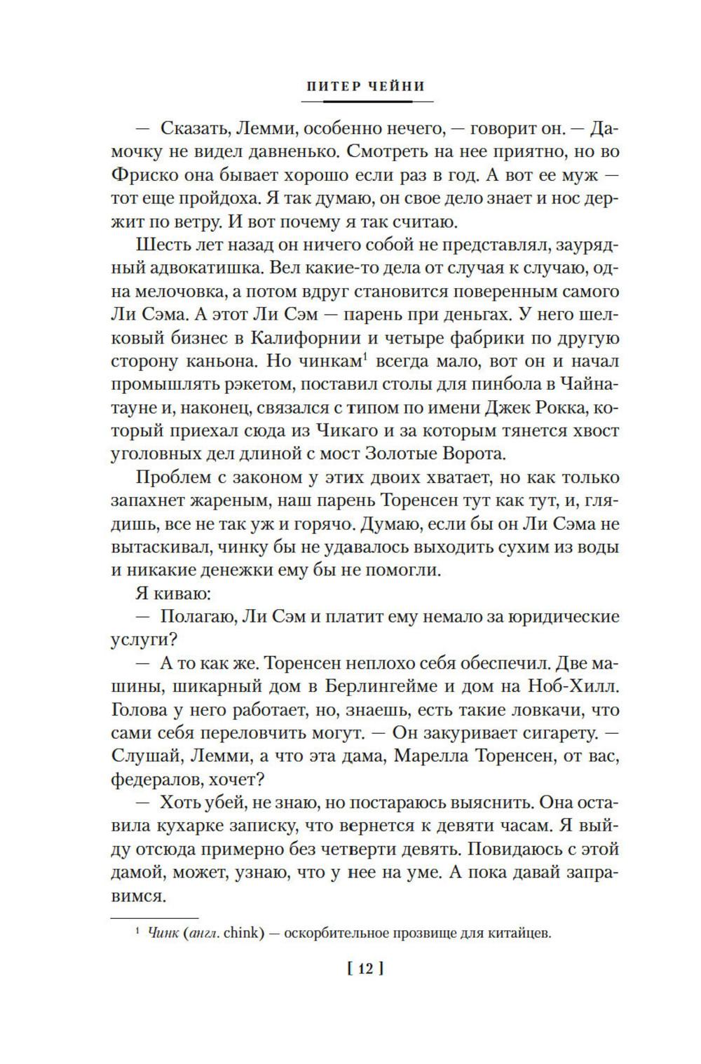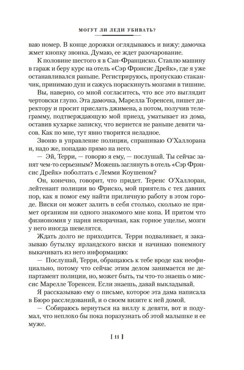 СОДЕРЖИТ ИНФОРМАЦИЮ О НАРКОТИЧЕСКИХ ИЛИ ПСИХОТРОПНЫХ ВЕЩЕСТВАХ, УПОТРЕБЛЕНИЕ КОТОРЫХ ОПАСНО ДЛЯ ЗДОРОВЬЯ. ИХ НЕЗАКОННЫЙ ОБОРОТ ВЛЕЧЕТ УГОЛОВНУЮ ОТВЕТСТВЕННОСТЬ. Классика крутого детектива от прославленного английского писателя. Четвертый, пятый и шестой романы о расследованиях агента ФБР Лемми Коушена. Могут ли леди убивать? Когда директор ФБР получил письмо от некой Мареллы Торенсен с намеками на преступления государственного масштаба, разгадывать загадку он отправил Лемми Коушена. Явившись к автору письма в назначенное время, Лемми обнаружил, что дом пуст, а Марелла странным образом исчезла. Пустяковое, казалось бы, дело выльется в нелегкое расследование, в ходе которого Лемми столкнется с контрабандистами, наемными убийцами, китайской мафией и смертельно опасными красавицами. Поймите меня правильно Двое ученых-химиков, англичанин и американец, независимо друг от друга занялись разработкой отравляющего газа, способного стать оружием нового поколения. В такой ситуации вполне логично объединить усилия, чтобы обеспечить быстрый успех. Решено поселить химиков на тихой гасиенде в мексиканском захолустье. Но вскоре об этом становится известно главарю одной из чикагских гангстерских банд… Вы не поверите! У питтсбургского «стального короля» пропадает сын. Через какое-то время выясняется: это не очередной побег молодого сумасброда из родительского дома, а похищение, причем довольно странное. Похитители почему-то не торопятся назвать сумму выкупа и вообще не дают о себе знать. А тут еще дочь без памяти влюбляется в русского графа, красавца и «настоящего полковника», и отправляется к избраннику в Париж. Казалось бы, очередной скандал в благородном семействе. Но на дворе 1940 год, и «стальной король» занимается производством оружия для Англии… Романы, вошедшие в этот сборник, публикуются в новых переводах.| Издательство | Азбука |