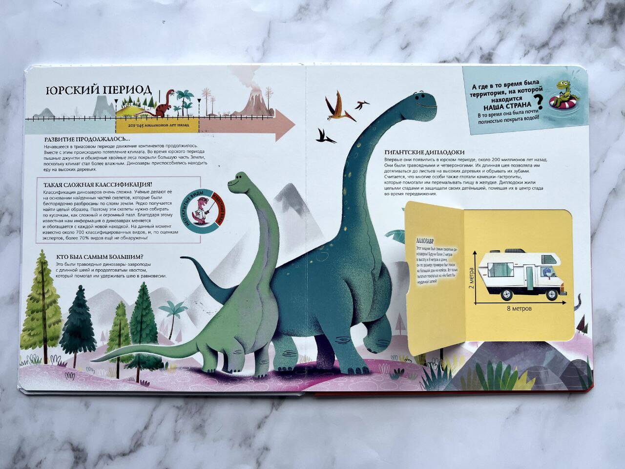 Разглядываем древний мир сквозь окошки этой книги! Отправляемся в путешествие на 230 миллионов лет назад и знакомимся с динозаврами! Познавательная энциклопедия, специально адаптированная для восприятия маленькими детьми, расскажет самое интересное об этих таинственных владыках первобытной Земли, а интерактивные элементы не дадут малышам заскучать! Фишки книги: • Покрути колесо времени и выясни, как на нашей планете развивалась жизнь! • Открой окошки и разгадай все секреты «ужасных ящеров»! • Рассмотри с обеих сторон большой постер и узнай ещё больше интересного о каждом динозавре!| Издательство | ООО "Издательство "Эксмо" |
