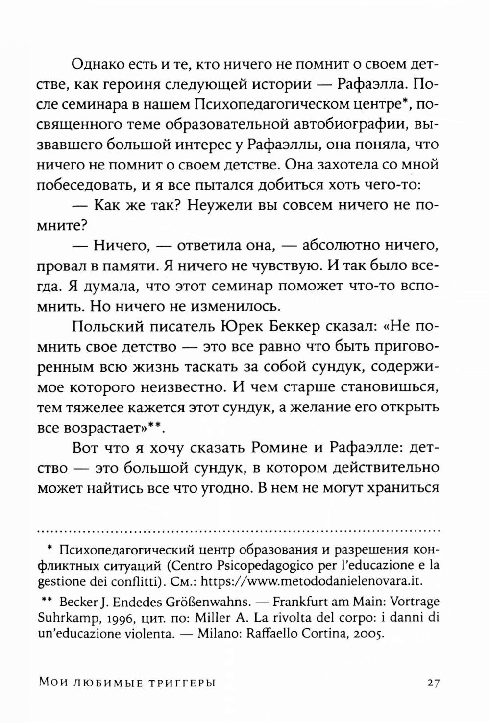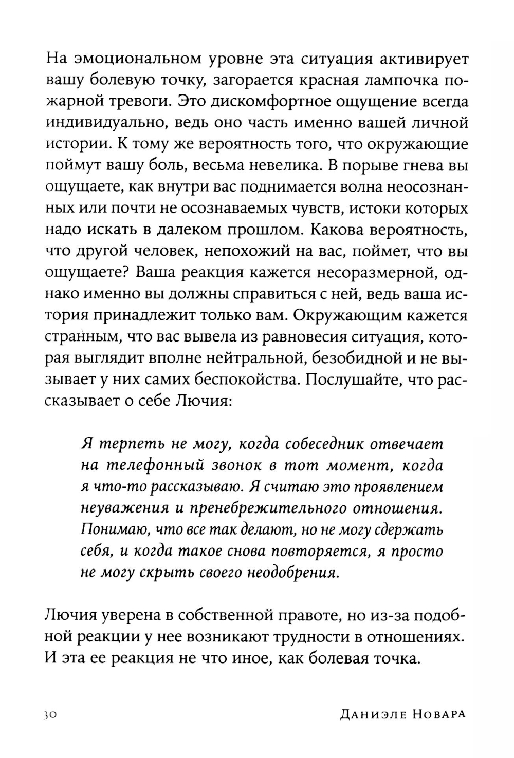Триггер - это наша болевая точка: вроде бы безобидное действие или фраза, которые причиняют нам боль, оглушают, лишают сил или провоцируют на бурную реакцию. Триггеры возникают, когда конфликтная ситуация или неосторожное слово постороннего человека, коллеги или близкого задевают самые глубокие слои нашей памяти о незаживших детских травмах. И тогда мы внезапно теряем здравомыслие, плачем, замыкаемся в себе или устраиваем скандал. В своей работе Даниэле Новара - опытный психолог и педагог, автор книг «Наказания бесполезны!», «Не кричите на детей!» и других бестселлеров, рассказывает о том, как возникают триггеры и как их заблаговременно распознавать, а также делится авторской методикой эффективного разрешения конфликтов. Его книга поможет читателям жить в гармонии с собой и научит бережно и эффективно взаимодействовать с другими людьми.| Издательство | Альпина Паблишер |