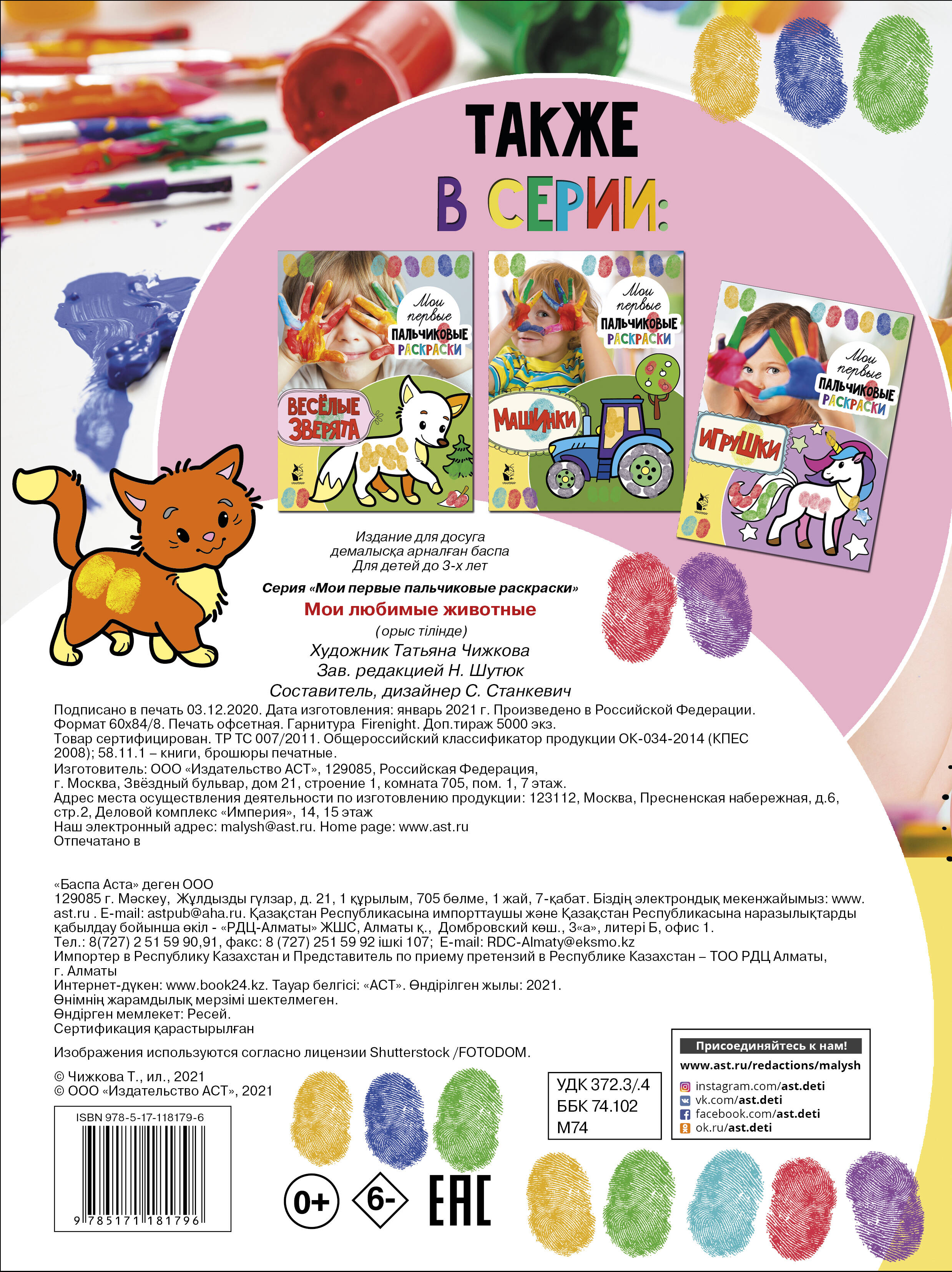 Раскраски для пальчиков - первый шаг к знакомству малыша с раскрасками. Они не только развивают мелкую моторику, координацию движений и способствуют концентрации внимания ребенка, но и подготовят его ручки к рисованию карандашами и кисточками. А благодаря легким заданиям малыш сможет сам создавать яркие и забавные иллюстрации!| Издательство | ИЗДАТЕЛЬСТВО "АСТ" |