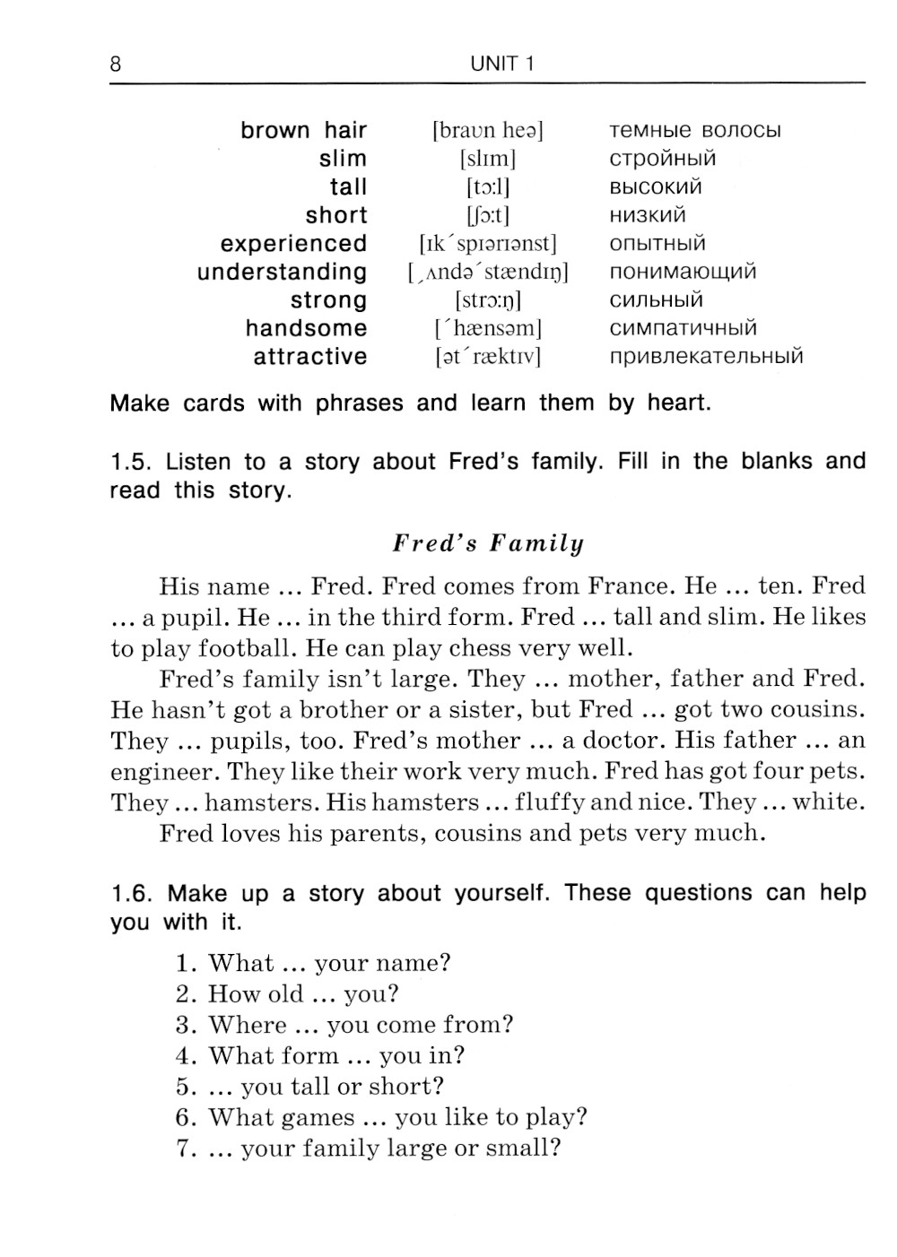 Пособие представляет собой сборник тем для учащихся средних школ. В сборнике рассматриваются такие темы, как "Му Family and I", "Daily Life", "My Friend", "School Life", "Favourite Animals", "Hobbies", "Seasons", "Travelling", "Moscow", "St. Petersburg", "London" и др. Тексты-рассказы, письма, написанные от лица российских и англоговорящих школьников, диалоги позволяют учащимся запомнить новые слова и выражения, подготовиться к устному ответу и написанию сочинения. С помощью упражнений к текстам и диалогам школьники закрепляют пройденный материал и учатся подробно отвечать на вопросы. Новая лексика представлена в словариках к упражнениям. Издательством подготовлена аудиозапись. Учителя могут использовать ее в качестве заданий на аудирование. Регулярное прослушивание аудиозаписи помогает детям совершенствовать произношение и учиться понимать живую английскую речь на слух.| Издательство | Каро |