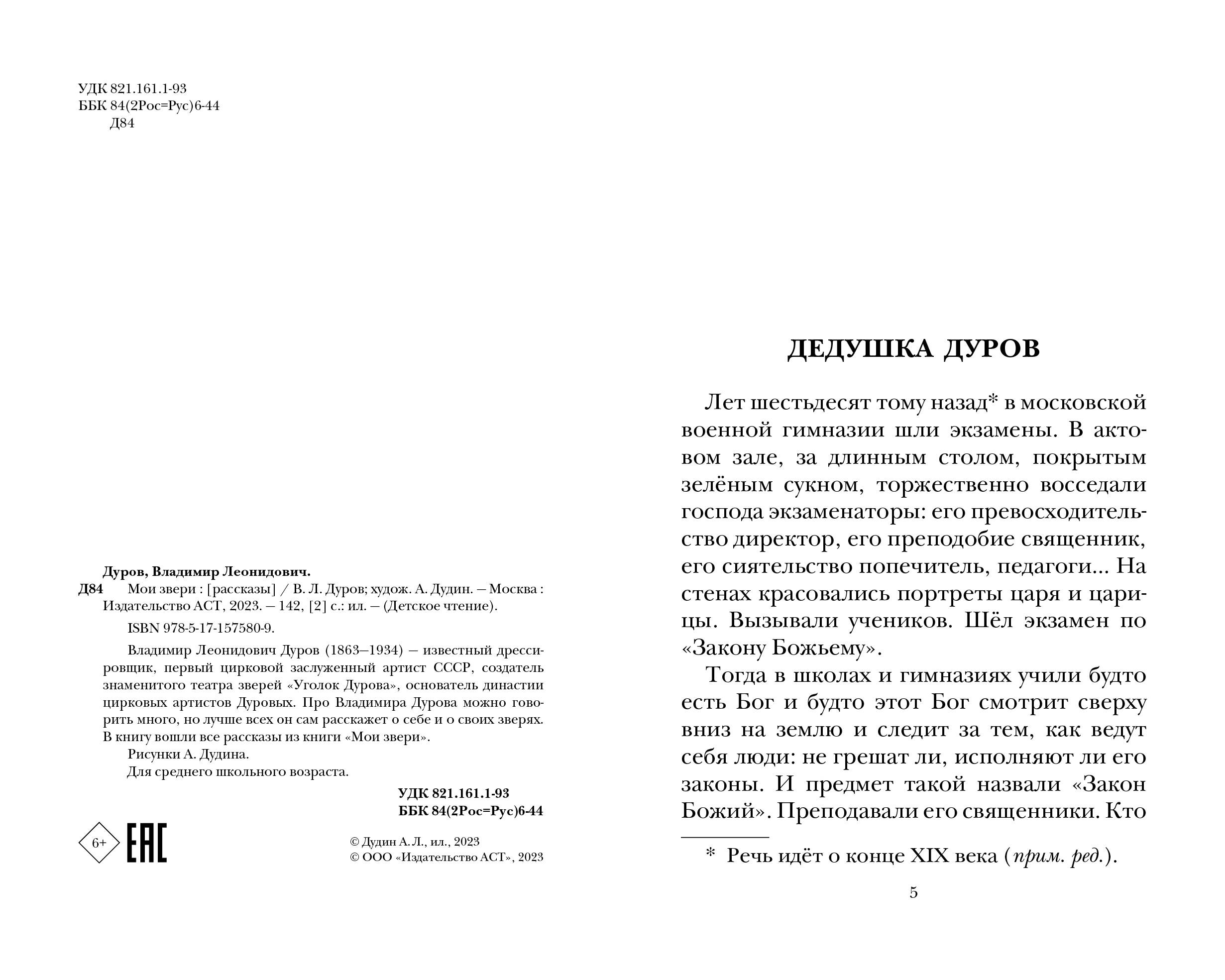 Обыкновенная домашняя хрюшка может летать. Слон - работать парикмахером. А собака - читать мысли человека. И это не чудеса, а обыкновенная дрессировка. Просто дрессировщик удивительный - Владимир Леонидович Дуров. Он первым в своей профессии стал учить зверей не болью, а лаской и любовью. О своих подопечных он написал книгу. Она перед вами.| Издательство | Издательство "АСТ" |