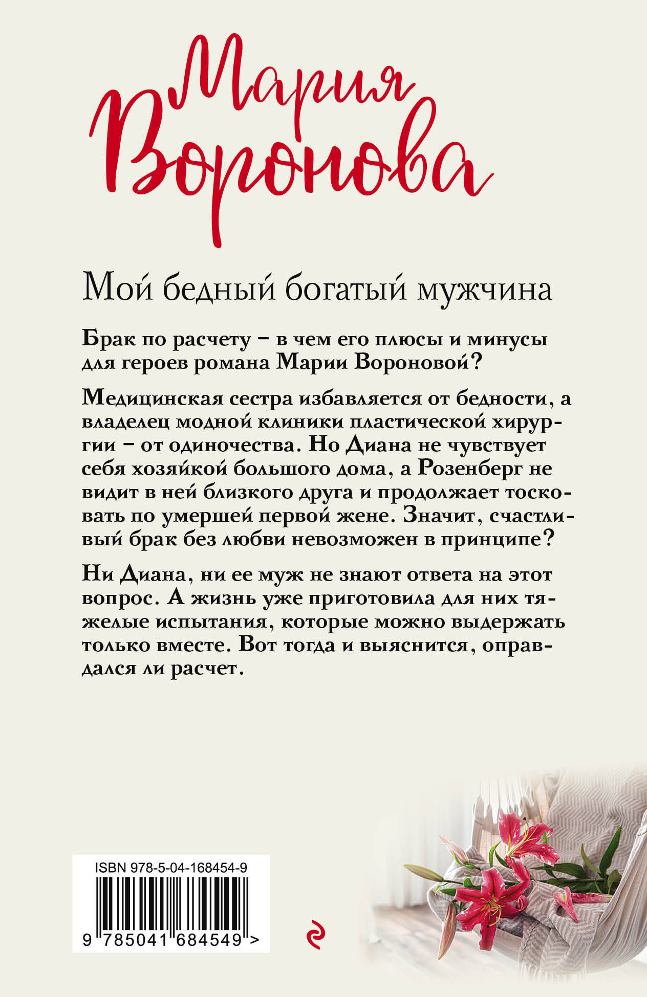 Брак по расчету - в чем его плюсы и минусы для героев романа Марии Вороновой? Медицинская сестра избавляется от бедности, а владелец модной клиники пластической хирургии - от одиночества. Но Диана не чувствует себя хозяйкой большого дома, а Розенберг не видит в ней близкого друга и продолжает тосковать по умершей первой жене. Значит, счастливый брак без любви невозможен в принципе? Ни Диана, ни ее муж не знают ответа на этот вопрос. А жизнь уже приготовила для них тяжелые испытания, которые можно выдержать только вместе. Вот тогда и выяснится, оправдался ли расчет.| Издательство | ООО "Издательство "Эксмо" |