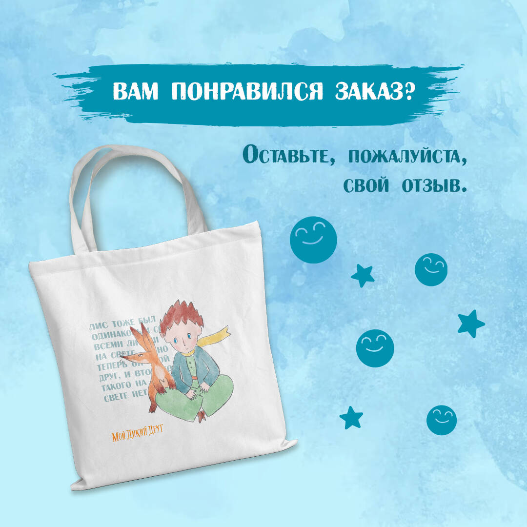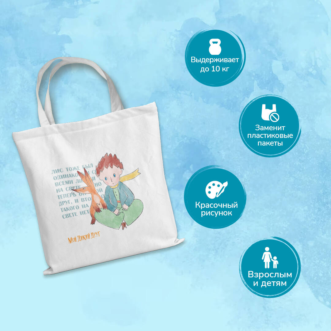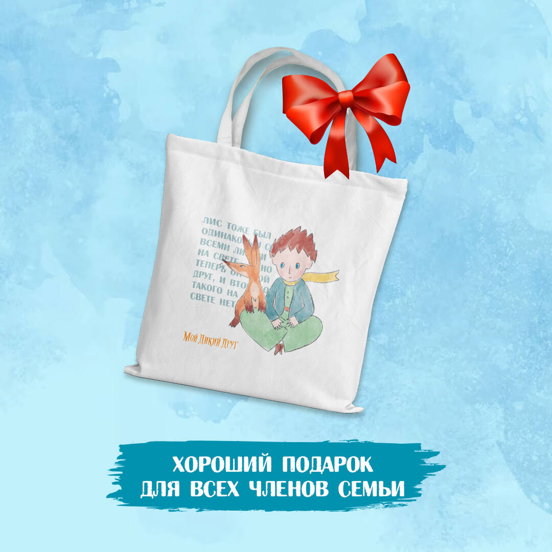 Лис и Маленький принц станут вашими неизменными спутниками. Шоппер можно брать в школу и на работу, ходить с ним на прогулку и за покупками. Благодаря универсальному размеру 35х40 см шоппер подойдет как взрослым, так и детям. Длина ручек 54х2,5 см. Шоппер сделан из качественной ткани, приятной на ощупь. Он отличается прочностью и износостойкостью. Рисунок нанесен методом сублимации, благодаря чему рисунок долго останется таким же красочным, как в первый день после покупки. Один шоппер заменит сотню пластиковых пакетов и при этом может выдержать до 10 кг. Сумка-шоппер сделан совместно с «Яндекс студией» («Кинопоиск») к выходу фильма «Мой дикий друг». Это трогательная история о мальчике, спасающем лисенка от браконьеров. Главный герой читает своему новому другу притчу «Маленький принц» и погружается с головой в сказочный мир Экзюпери. В главных ролях Юлия Александрова, Юрий Колокольников, Михаил Башкатов, Евгений Шварц и другие.