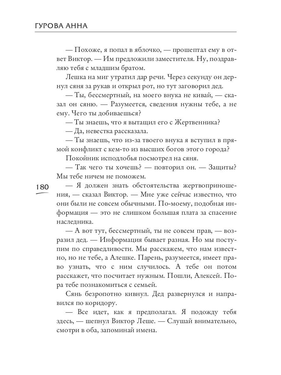 Как известно, мистический Санкт-Петербург - обиталище множества темных сил. Демонические сущности обитали в здешних болотах задолго до появления города, Другие, тысячелетние шаманские духи, прибыли с мигрантами с Алтая и Сибири и немедля вступили в соперничество со "старожилами". А есть еще и боги, гении места - темные и светлые, - которых породил уже сам город. Эта обратная сторона мира открывается двум непохожим друг на друга питерским подросткам, угодившим в один и тот же конфликт между старыми и новыми богами. Обычный мальчишка Леша, едва не погибнув от несчастного случая, вдруг узнает, что это была никакая не случайность - он предназначен в жертву. И то, что он чудом ускользнул от гибели, еще не отменяет его участи. Теперь ему предстоит побороться за свою жизнь, и лучше ему даже не знать, с кем. В то же время неформалка и бунтарка, девочка Ники, начинает подозревать, что все ее странности, и то, что она с детства сильно отличалась от других - тоже неспроста. Похоже, не только она, но и вся ее семья - крайне необычные люди. Да и люди ли?