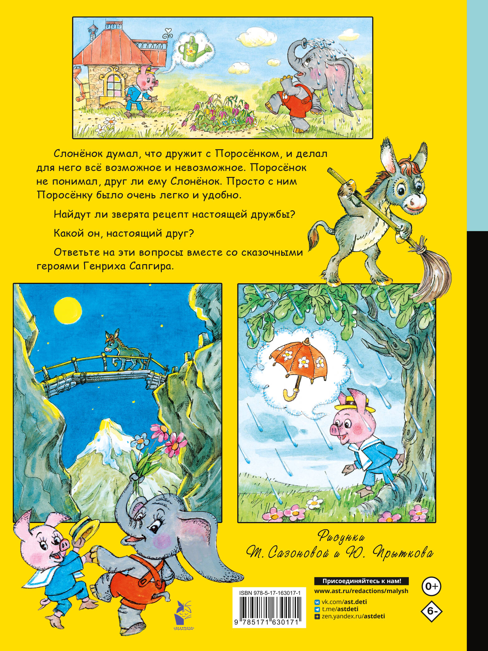 Слонёнок думал, что дружит с Поросёнком, и делал для него всё возможное и невозможное. Поросёнок не понимал, друг ли ему Слонёнок. Просто с ним Поросёнку было очень легко и удобно. Найдут ли зверята рецепт настоящей дружбы? Какой он, настоящий друг? Ответьте на эти вопросы вместе со сказочными героями Генриха Сапгира.| Издательство | Издательство "АСТ" |