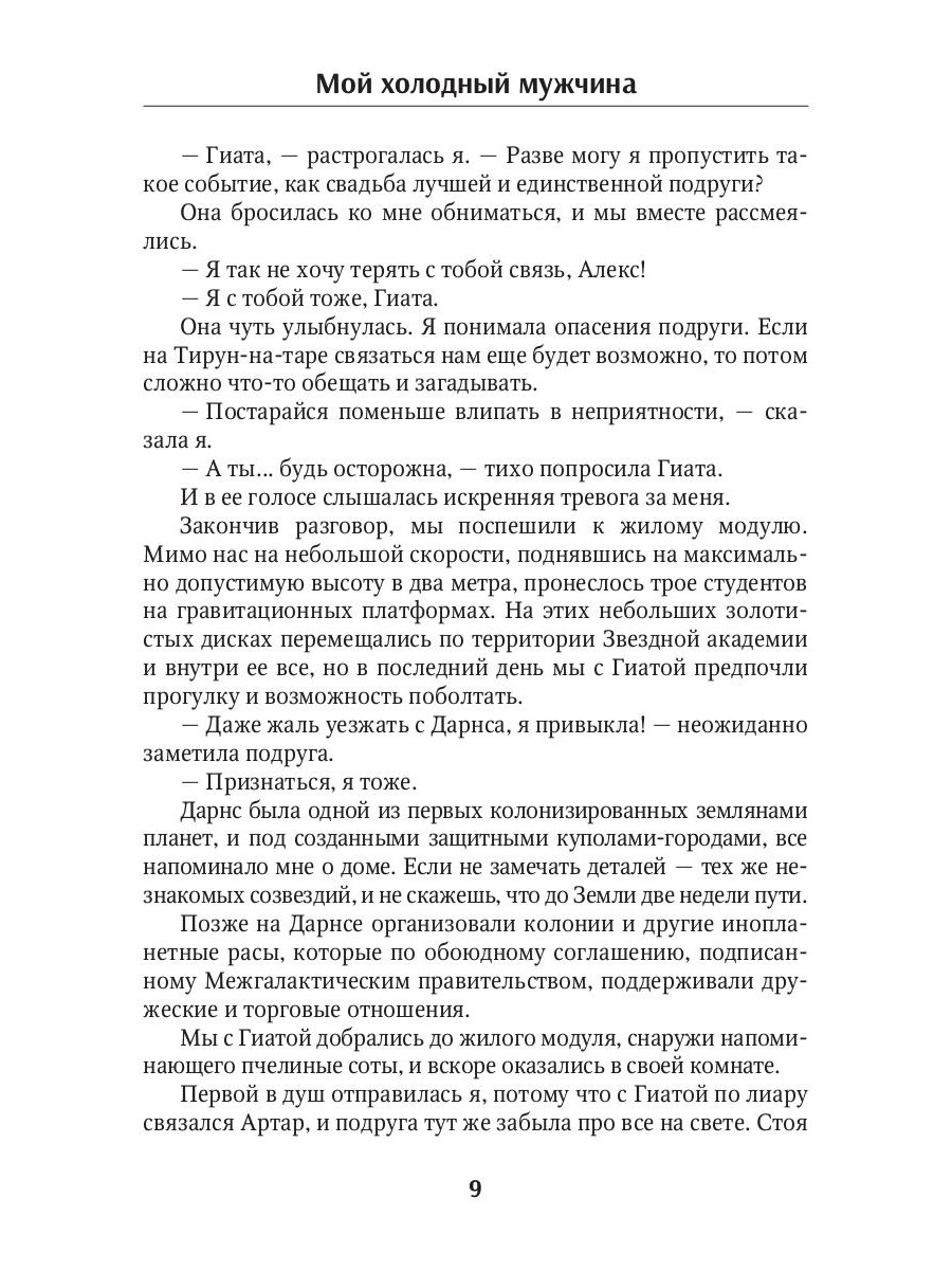 Мне говорили, что в морозной бездне его глаз можно сгинуть. И что мне, Александре Соколовой, выпускнице Звездной академии Дарнса, лучше держаться от него подальше. От этого холодного мужчины, способного превратить мир в стужу. Но… Один-единственный взгляд, одно-единственное случайное прикосновение… Пожалуй, после этого даже не стоило и пытаться не влюбиться. Это было неизбежно. Да и как теперь не сократить расстояние, если нас, помимо чувств, связали работа и его враги? А в ледяном взгляде я смогла рассмотреть ответное пламя любви. Пламя, способное озарить все вокруг, согреть, защитить… Вопреки всему. На краю бездны. Когда смерть стоит за плечом… я просто протяну ему руку. И вместе мы преодолеем любые беды и разберемся даже с самыми коварными врагами. Разве может быть иначе, если любовь в наших сердцах сияет ярче всех звезд?| Издательство | Т8 RUGRAM |