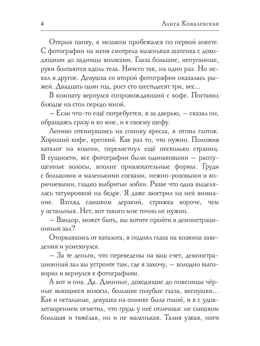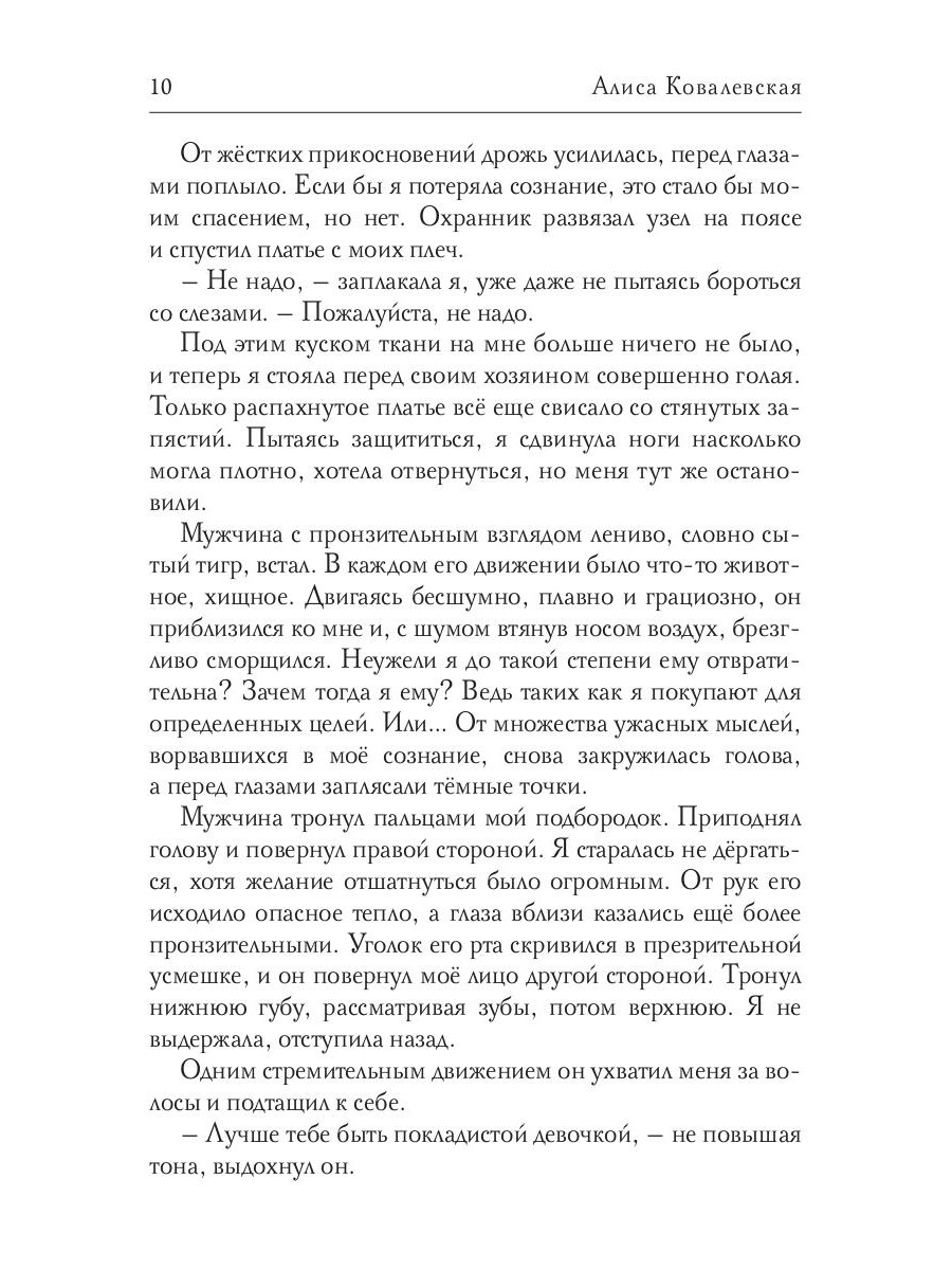 Я - товар, беспородная дворняжка, которую выбрали по каталогу. У меня есть лишь одно право - подчиняться и исполнять желания хозяина. Но я боюсь его. Боюсь близости с ним. Потому что он сломает меня. Мою волю, моё тело и мои мечты. И с каждым новым днём, проведённом в его доме, душа моя тоже переходит в его владение. На что можно пойти ради женщины в мире, где такие, как она - лишь бесправная вещь, предназначенная для утех? Прежде я никогда не задумывался об этом, потому что даже представить себе не мог, что способен потерять голову. Она - моё проклятье, моё наваждение и моя погибель, но ради неё я готов на всё.| Издательство | Т8 RUGRAM |