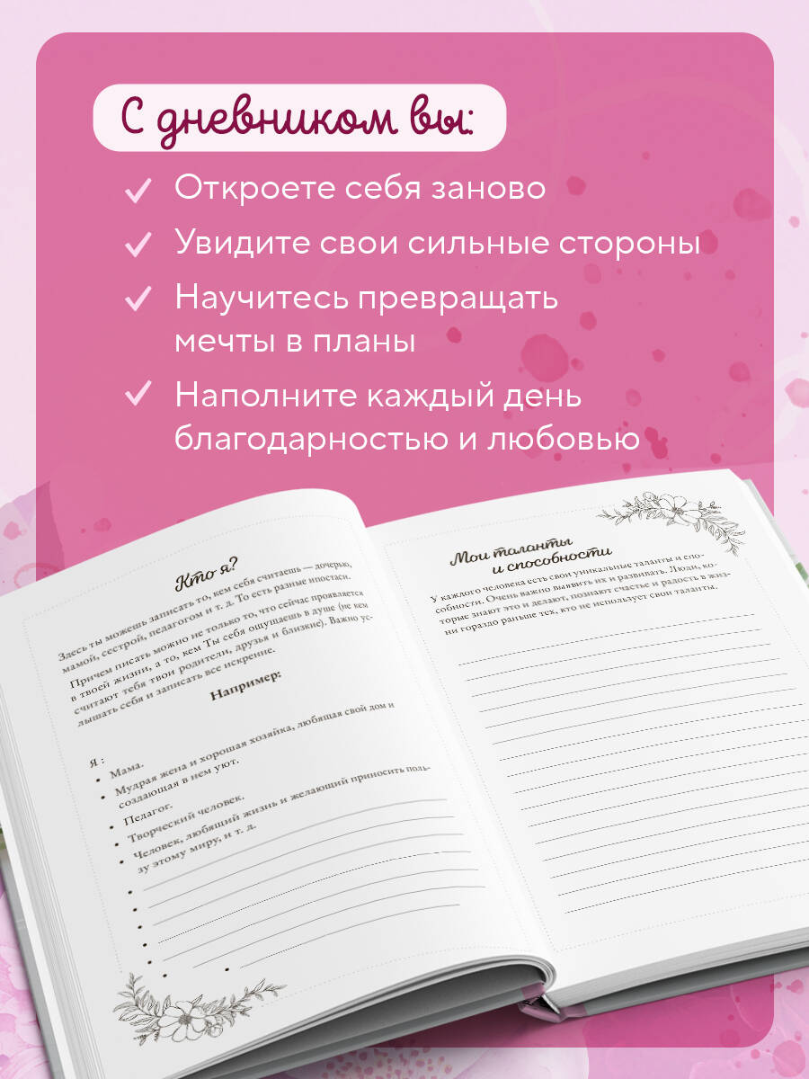 Ты когда-нибудь мечтала о месте, где тебя примут без условий и оценок? Где можно быть на 100% честной, уязвимой, настоящей и не бояться осуждения? Это место существует. И оно создано специально для тебя. Дневник принятия и любви к себе от Ольги Дяченко, автора «Дневника мечты» и «Дневника благодарности» - это твой личный проводник в путешествии к самой себе. К той удивительной, сильной и уникальной личности, которой ты всегда была. Внутри этого дневника тебя ждет безопасное пространство, где ты сможешь: ✨ Узнать себя заново: Честно ответить на вопросы «Кто я?», «В чем мое предназначение?», «Какие мои сильные стороны и таланты?» ✨ Принять себя целиком: Со всеми достоинствами и «недостатками» ✨ Услышать знаки Вселенной: Научиться замечать подсказки, которые мир посылает тебе каждый день, и следовать им ✨ Превратить мечты в планы, а ошибки - в опыт: Отделить мимолетные желания от истинных целей и понять уроки, которые преподносит жизнь ✨ Наполнить каждый день благодарностью и любовью: Найти сотни поводов сказать «спасибо» себе, близким и Вселенной за все, что у тебя есть Это твой шанс начать все с чистого листа. Этот дневник станет началом твоей новой жизни. Жизни, в которой ты: - Перестанешь зависеть от чужого мнения. - Научишься слышать голос своей души и доверять интуиции. - Обретешь внутреннюю гармонию и настоящую, безусловную любовь к себе. - Начнешь притягивать желаемые события и людей. Ты заслуживаешь быть счастливой. Просто разреши себе это. Сделай первый шаг навстречу себе. Начни вести свой дневник принятия и любви уже сегодня!| Издательство | ООО "Издательство "Эксмо" |