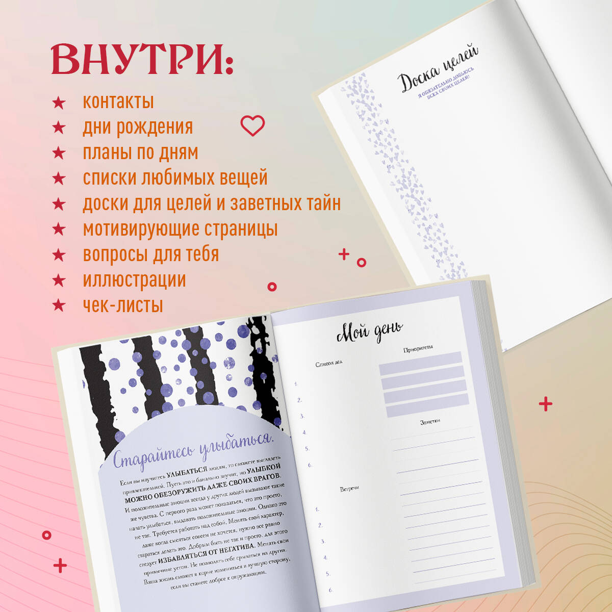 Личный дневник - это то, что нужно каждой девочке. В нем можно собрать все свои мысли, чувства, мечты, секреты, идеи, планы и многое другое. Он помогает лучше понять и узнать себя, обдумать прошедший день, свои успехи и неудачи, а также передать мысли и эмоции с помощью творчества. Это дневник для тех, кто: - любит переносить свои мысли и эмоции на бумагу; - любит записывать свои тайны и секреты; - любит вести трекеры привычек; - хочет сохранить приятные воспоминая навсегда. С его помощью вы сможете: - заполнить собственную анкету; - получить полезные советы на разные темы; - собрать любимые фотографии; - сохранить свои впечатления, эмоции и даже секреты; - поделиться своими предпочтениями в моде, еде и многом другом. Технические параметры: - удобный формат А5 (140×195 мм); - 56 листов на офсетной бумаге; - стильная обложка из переплетного картона; - стильный блок. Дневник станет отличным подарком для девочки школьного возраста.| Издательство | ООО "Издательство "Эксмо" |
