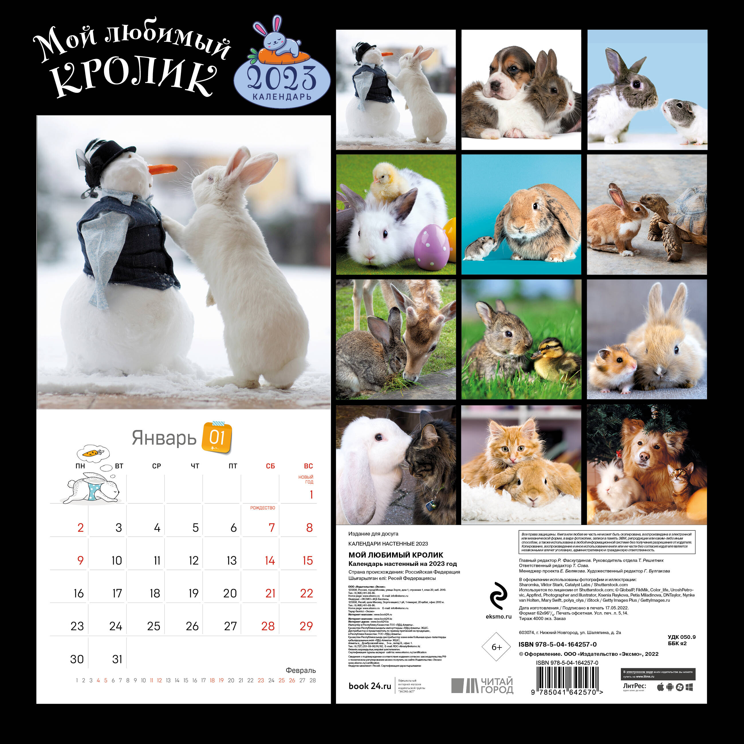 О серии: Наши настенные календари отличаются высоким качеством исполнения! Тщательно подобранные иллюстрации, напечатанные на глянцевой бумаге высочайшего качества, станут настоящим украшением дома, а в календарной сетке найдется место для ваших планов: большие клетки позволят делать записи и организовать свой год! В календаре также отмечены все государственные праздники. В серии настенных календарей издательства «ЭКСМО» каждый найдет тему по вкусу: великие художники, великолепные подборки с самыми знаменитыми произведениями искусства, легендарные кинематографические саги и игры, главные книжные авторы и бестселлеры, фотографии и иллюстрации любимых животных и многое-многое другое! О календаре: Самое милое украшение интерьера и подарок - настенный календарь с очаровательными кроликами! Каждое изображение сопровождается удобной календарной сеткой, которая поможет планировать дни недели и месяцы. В сетке отмечены государственные праздники. Для кого: 12 эксклюзивных фотографий пушистых кроликов заставят улыбнуться любого! Технические параметры: Тип календаря - настенный перекидной Год - 2023 Календарная сетка - с разбивкой по месяцам Вид скрепления - скрепка Ширина - 30 см Высота - 30 см Внутренний блок - мелованная бумага 150 г/м2 Подложка - плотный гофрокартон для поддержания формы Индивидуальная упаковка в плотный целлофановый пакет| Издательство | Эксмо |