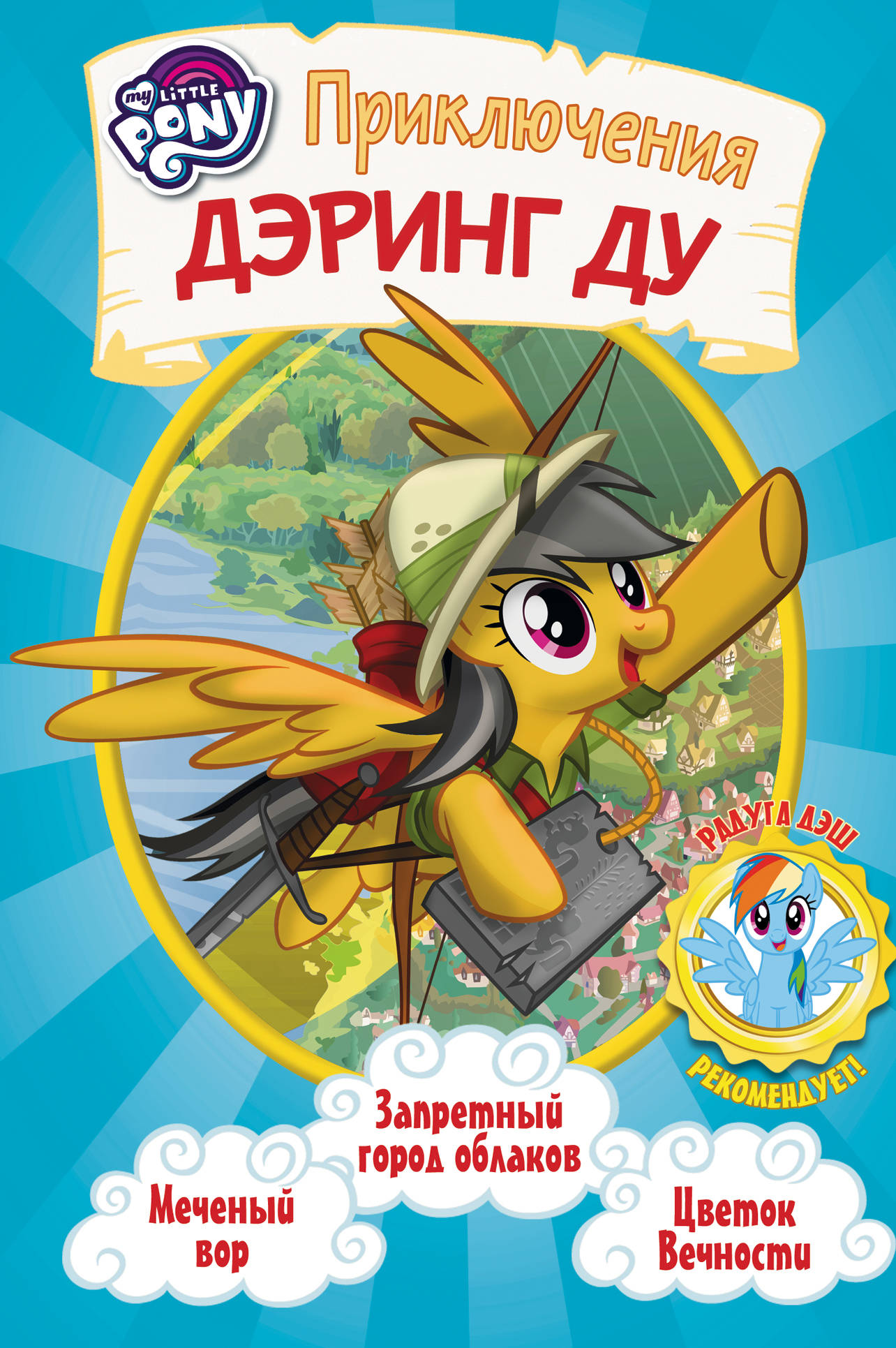 Кстати, храбрая пони описала свои удивительные похождения в увлекательных книгах! Перед вами собрание из трёх таких историй: о меченом воре, Цветке Вечности и запретном городе облаков. Вперёд, навстречу приключениям!