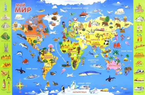 Настольная карта для детей "Мой мир" 58x38 см (ламинированная).