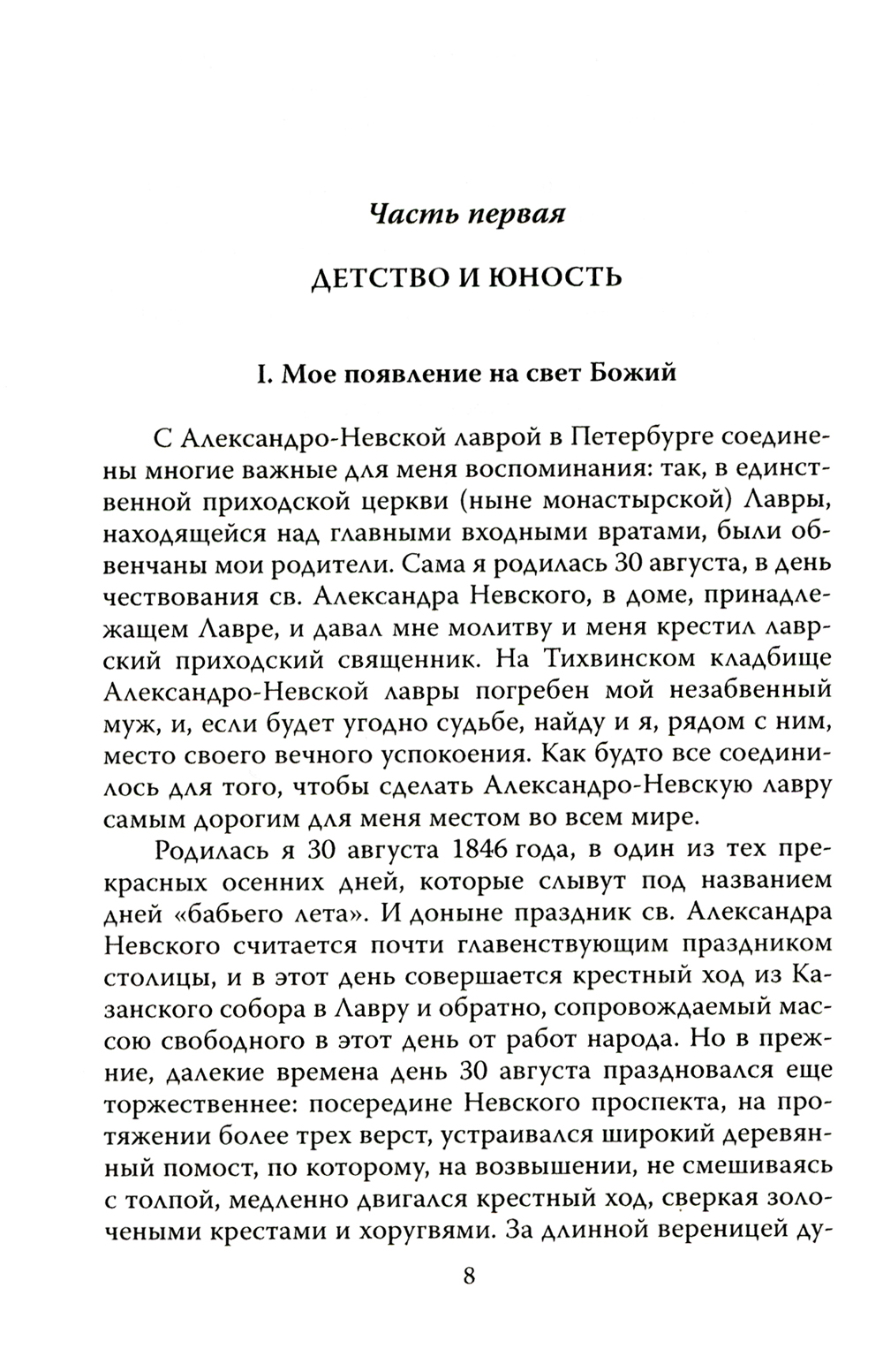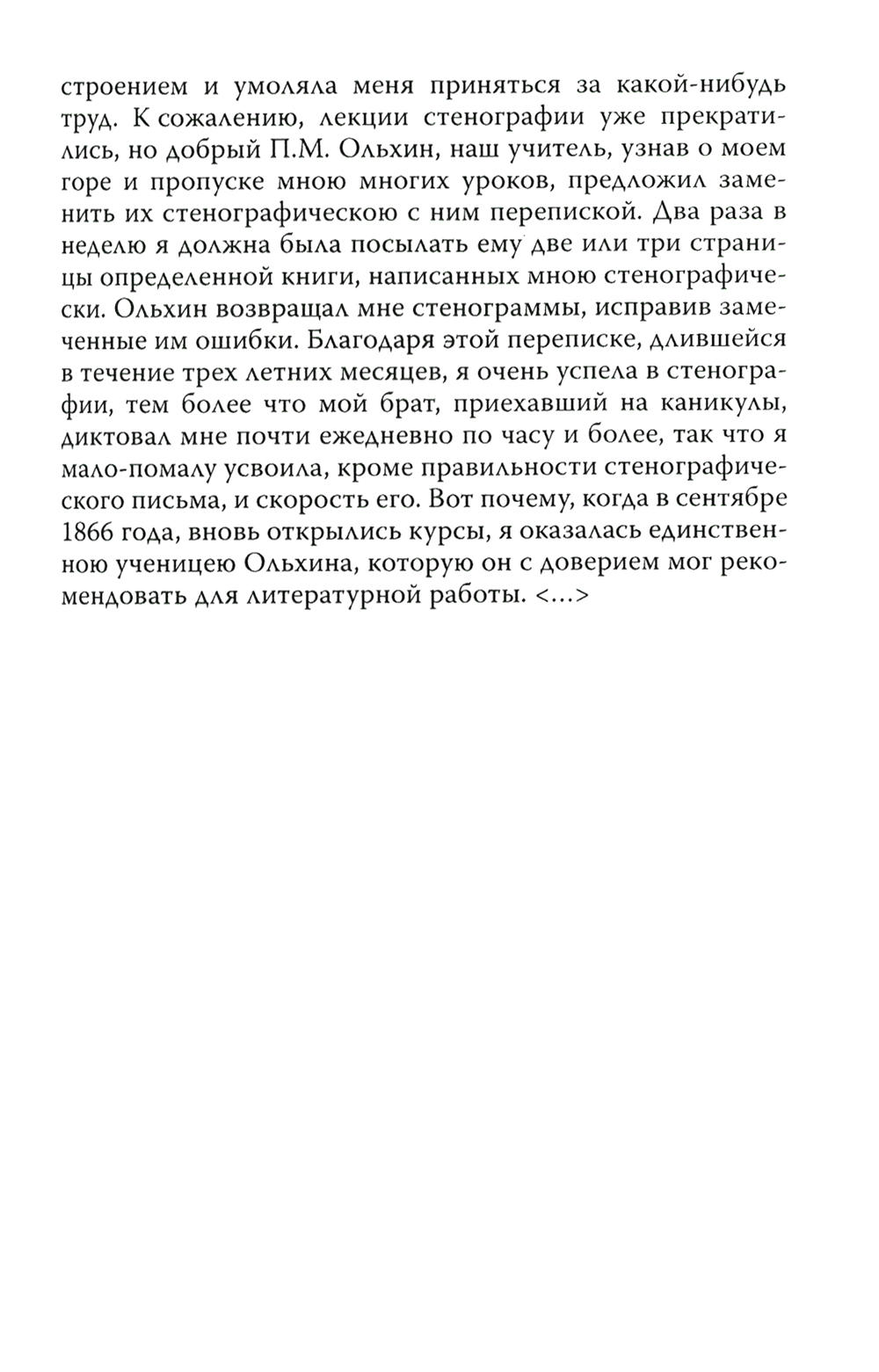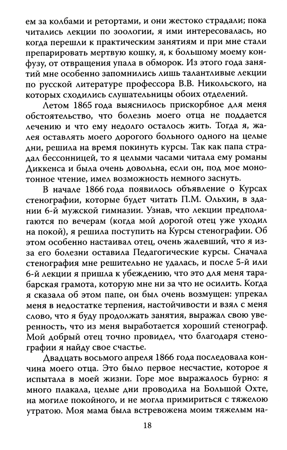 Перед нами воспоминания и мысли женщины, которая прошла через бедность, нужду, дурное настроение, частые припадки эпилепсии и игровую зависимость своего гениального мужа, но не перестала любить. Став вдовой в возрасте тридцати пяти лет, Анна Достоевская всю свою оставшуюся жизнь посвятила заботе о его публикациях и оставила нам сентиментальный рассказ о том истинном Достоевском, которого могла знать только любящая женщина. Рассказ о семьянине, любящем муже, заботливом и нежном отце - главная тема мемуаров его жены.