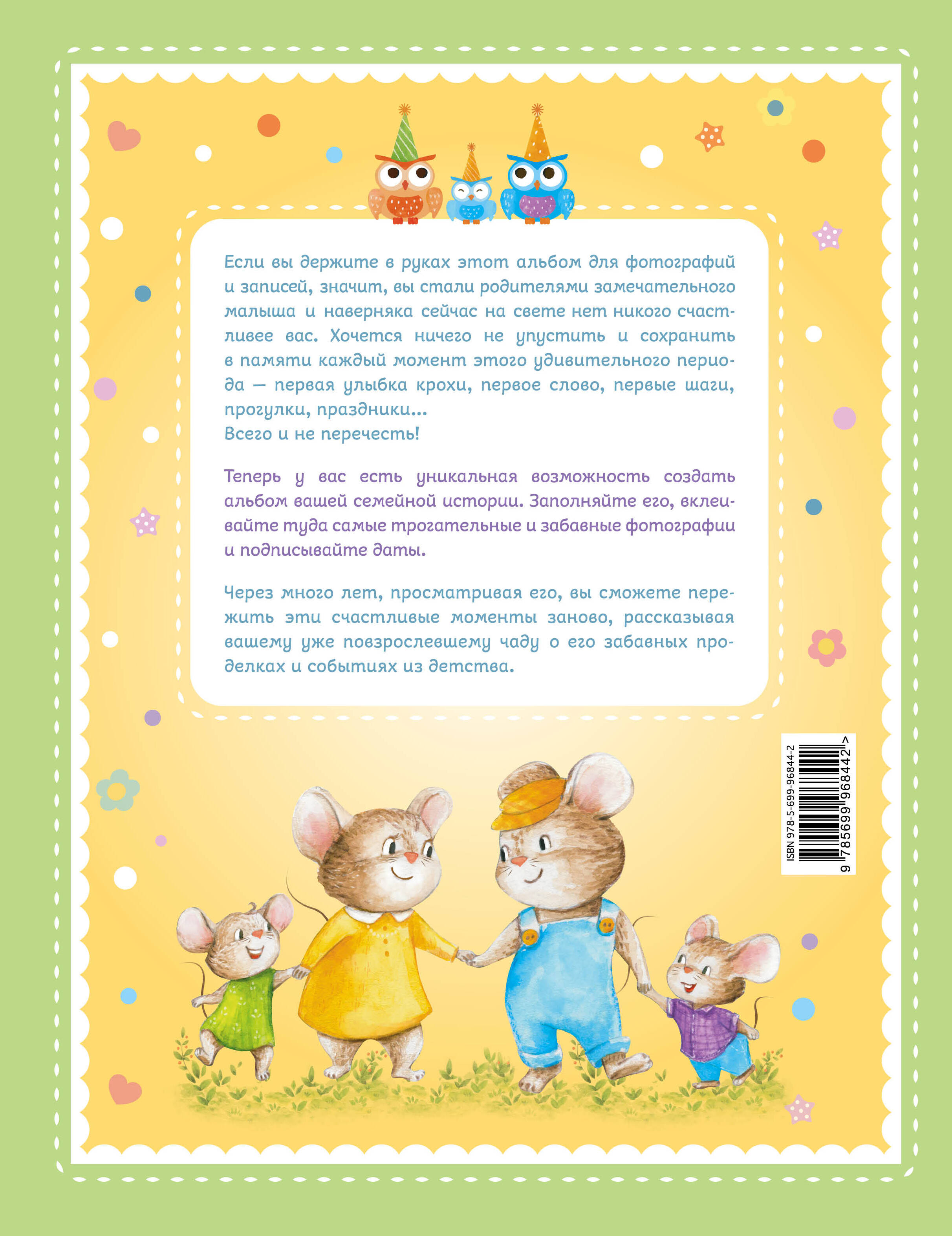 О чем эта книга Этот трогательный альбом позволяет не только вклеивать фотографии, но и записывать памятные события первых пяти лет жизни малыша. Для кого эта книга Для всех любящих родителей, мечтающих сохранить в памяти как можно больше трогательных моментов, связанных с их ребёнком. Особенности книги Уникальный авторский дизайн популярной художницы Ольги Бадулиной.| Издательство | Эксмо |