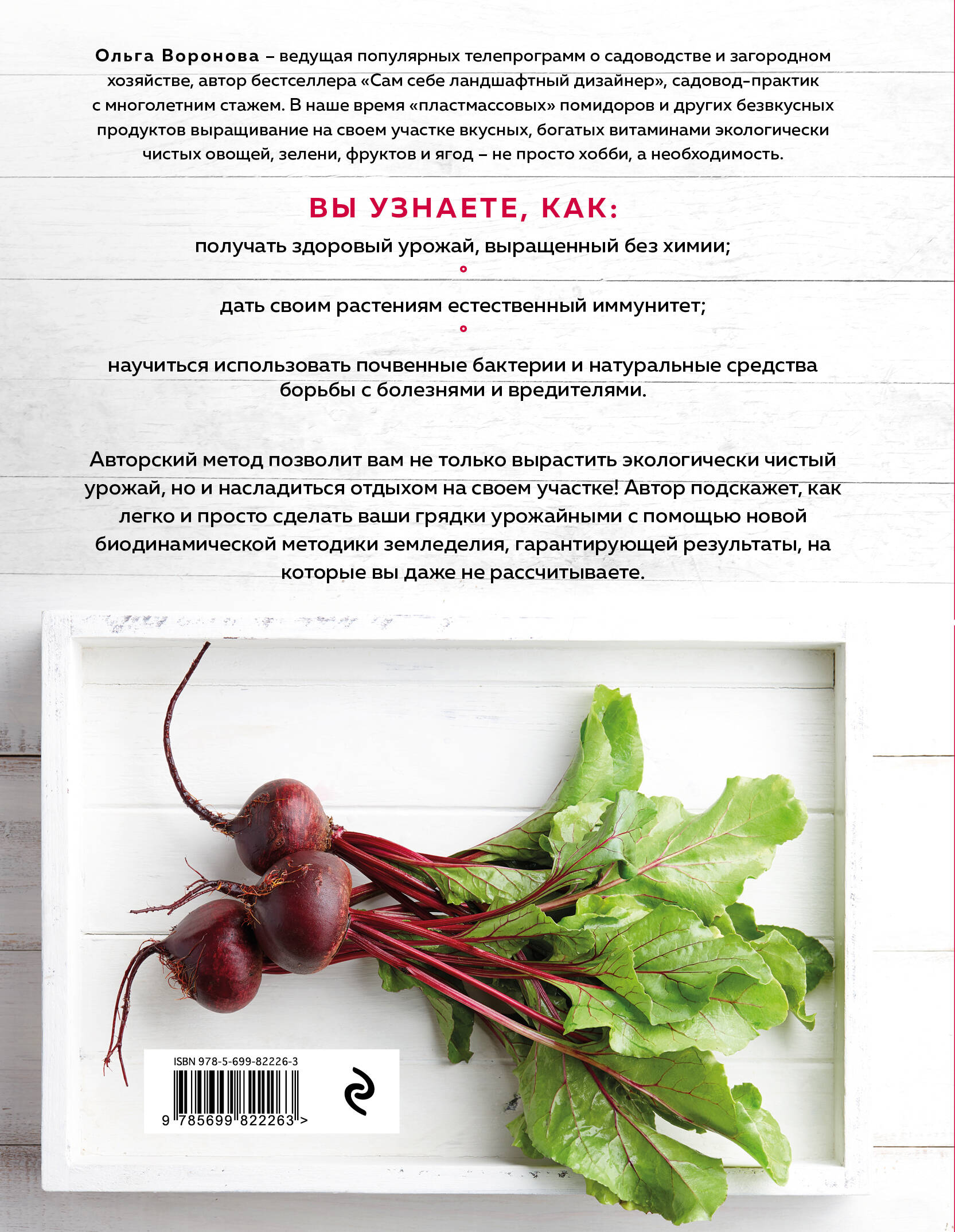 Ежегодно получать богатый урожай своих овощей и ягод и тратить при этом минимум усилий - это ли не мечта! Тем более что на даче мы можем вырастить самую вкусную, витаминную и экологически чистую продукцию, которая подарит нам здоровье, отличное самочувствие и много радости. Книга известной ведущей телепрограмм о загородном хозяйстве и садоводстве Ольги Вороновой подскажет, как легко и просто сделать ваши грядки урожайными. В книге представлена новая биодинамическая методика земледелия, которая гарантирует результаты, на которые вы даже и не рассчитывали. Если вы хотите получать здоровый урожай, выращенный без химии, дать своим растениям иммунитет и научиться использовать почвенные бактерии и естественные методы борьбы с болезнями и вредителями, то авторский метод позволит вам не только проводить время за работой на грядках, но и получать качественные продукты со своего участка и удовольствие от дачного отдыха.