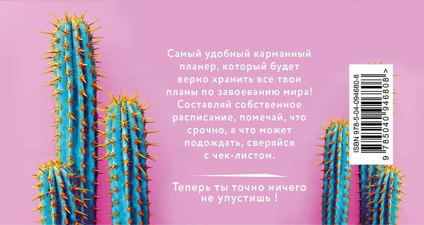 Милый планер для серьёзных задач! Ни одно дело не останется забытым, всё будет сделано в срок! Составляй свое собственное расписание, помечай, что срочно, а что может подождать, что нужно обязательно запомнить, а о чем лучше вообще забыть. 96 страниц на пружине для записи всех предстоящих событий, места для комментариев, удобный формат позволяет всегда твоему планеру быть с тобой и не позволит упустить ничего важного из виду.| Издательство | ООО "Издательство "Эксмо" |