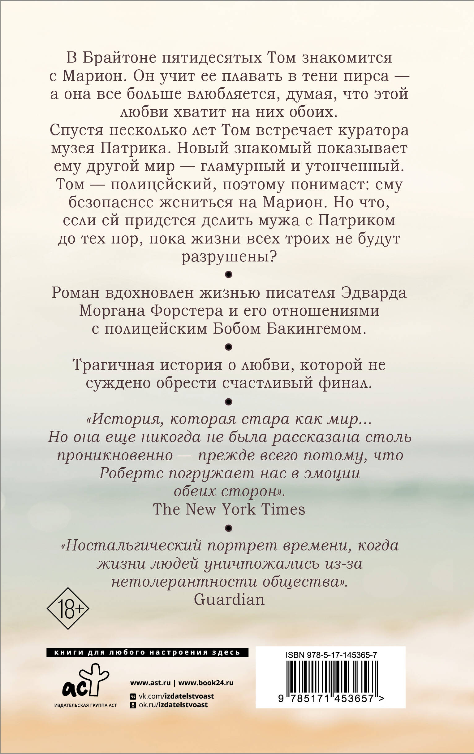 - Трагичная история о дружбе и любви, которой не суждено обрести счастливый финал. - Экранизация 2022 года - главные роли исполнили Гарри Стайлс, Эмма Коррин (роль принцессы Дианы в сериале «Корона») и Дэвид Доусон («Острые козырьки»). - Роман вдохновлен жизнью писателя Эдварда Моргана Форстера. - «Ностальгический портрет времени, когда жизни людей уничтожались из-за нетолерантности общества», - Guardian. - «История, которая стара как мир… Но она ещё никогда не была рассказана столь проникновенно - прежде всего потому, что Робертс погружает нас в эмоции обеих сторон», - The New York Times.