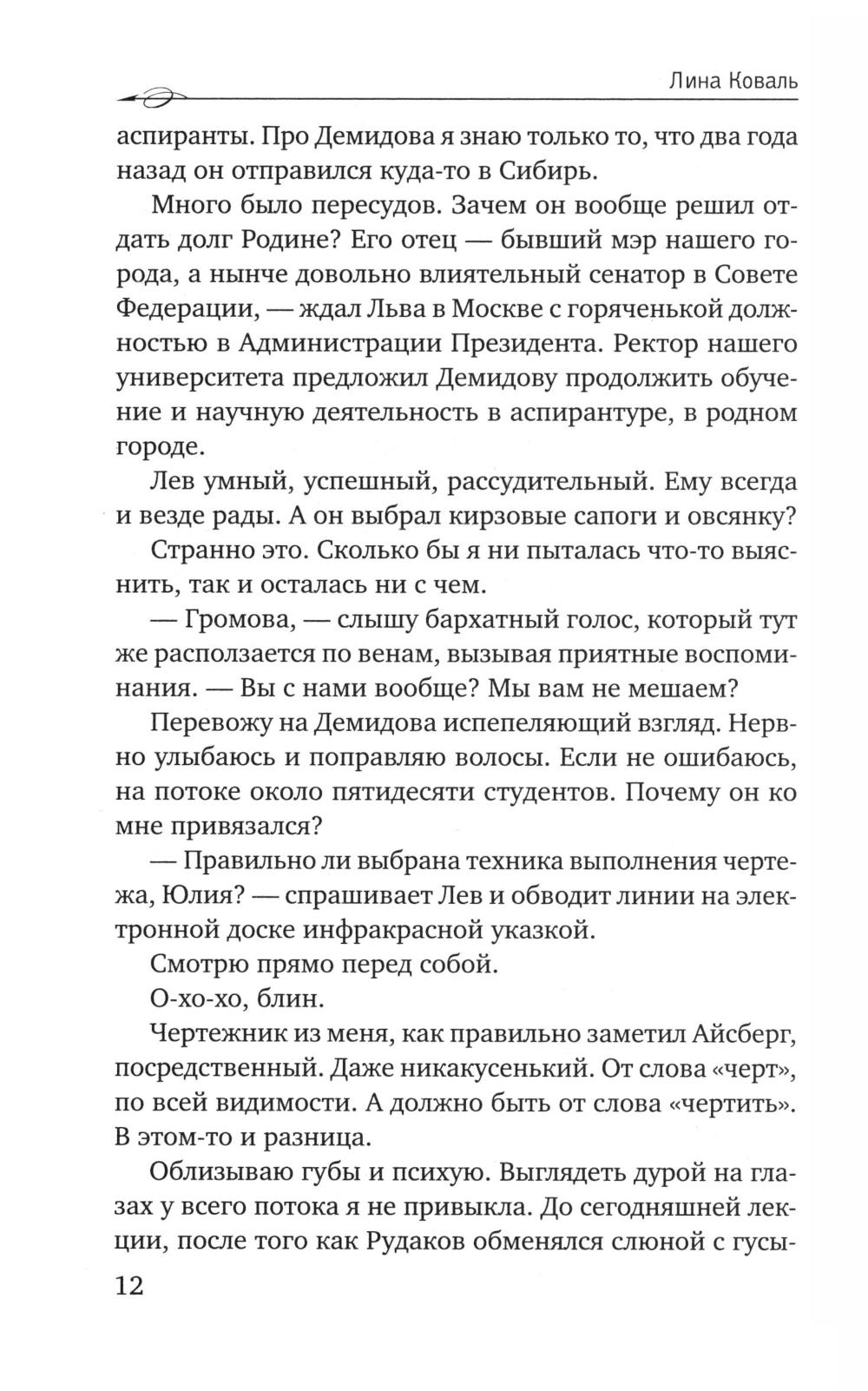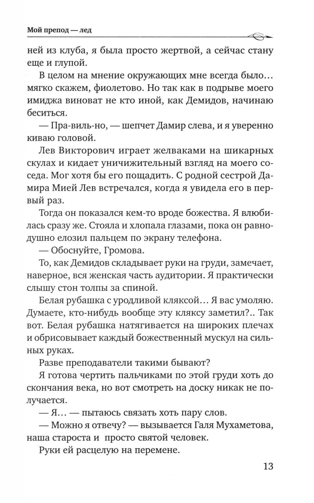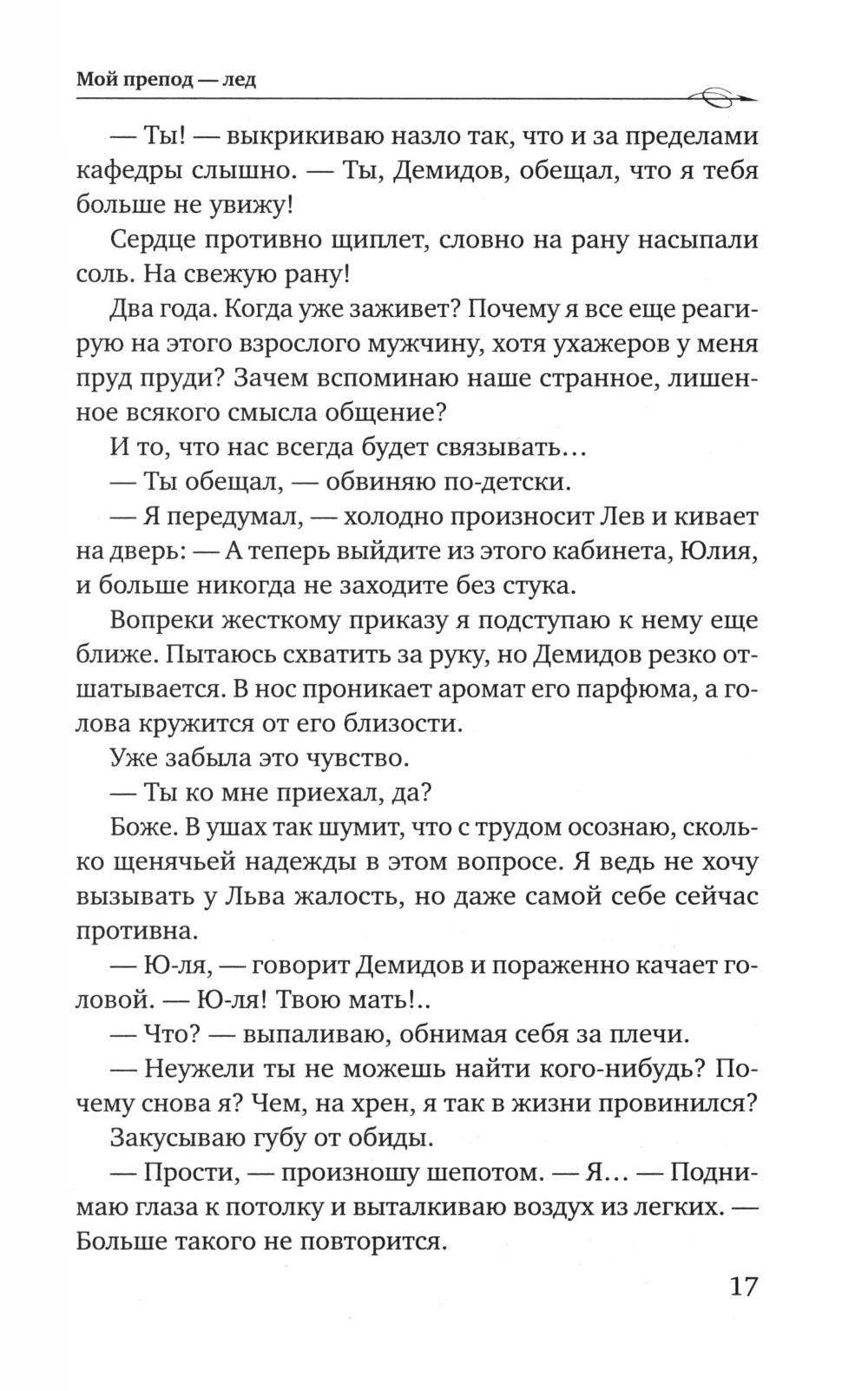 Лев Демидов, моя первая любовь и главное жизненное разочарование, теперь мой препод. Вау. Как в это поверить?.. Позапрошлой зимой я в буквальном смысле сбила его с ног и... заморозила в сугробе. Хотя горячим этот парень никогда не был. Бездушный. Холодный. Лёд. Просто идеальная глыба льда в деловом костюме и модных очках... Когда Лев Викторович внимательно смотрит на меня в заполненной студентами аудитории, мне хочется немедленно встать и отогреть его сердце. Но я всего лишь первокурсница, которая второй год бережно хранит наш маленький, грязный секрет...| Издательство | Т8 RUGRAM |