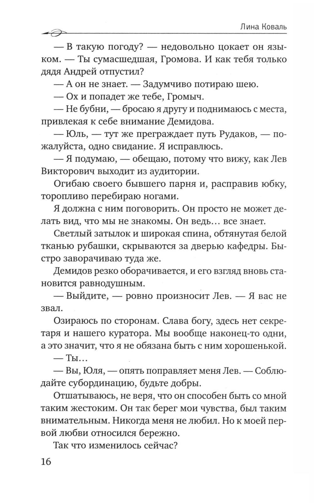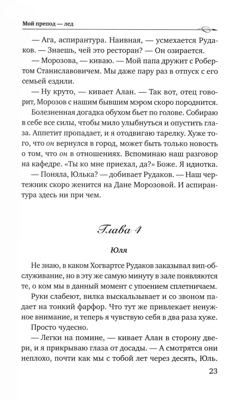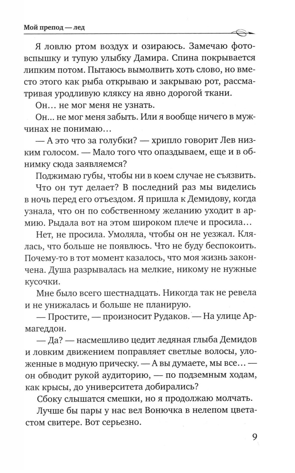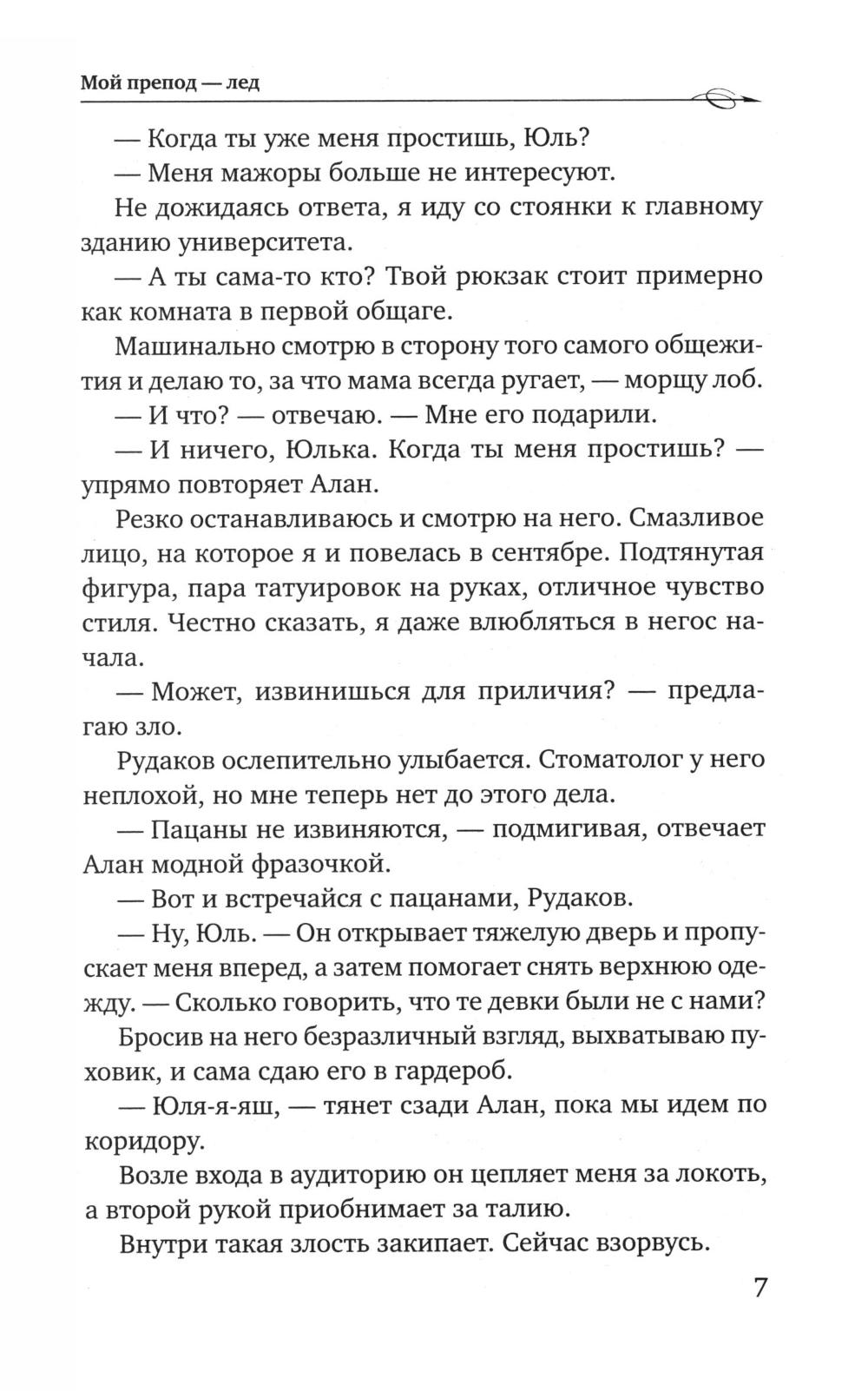 Лев Демидов, моя первая любовь и главное жизненное разочарование, теперь мой препод. Вау. Как в это поверить?.. Позапрошлой зимой я в буквальном смысле сбила его с ног и... заморозила в сугробе. Хотя горячим этот парень никогда не был. Бездушный. Холодный. Лёд. Просто идеальная глыба льда в деловом костюме и модных очках... Когда Лев Викторович внимательно смотрит на меня в заполненной студентами аудитории, мне хочется немедленно встать и отогреть его сердце. Но я всего лишь первокурсница, которая второй год бережно хранит наш маленький, грязный секрет...| Издательство | Т8 RUGRAM |
