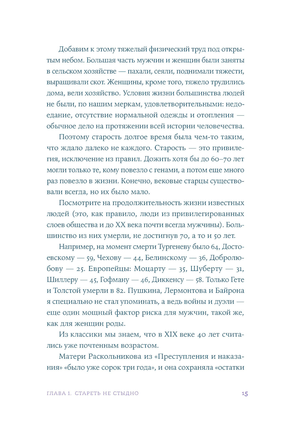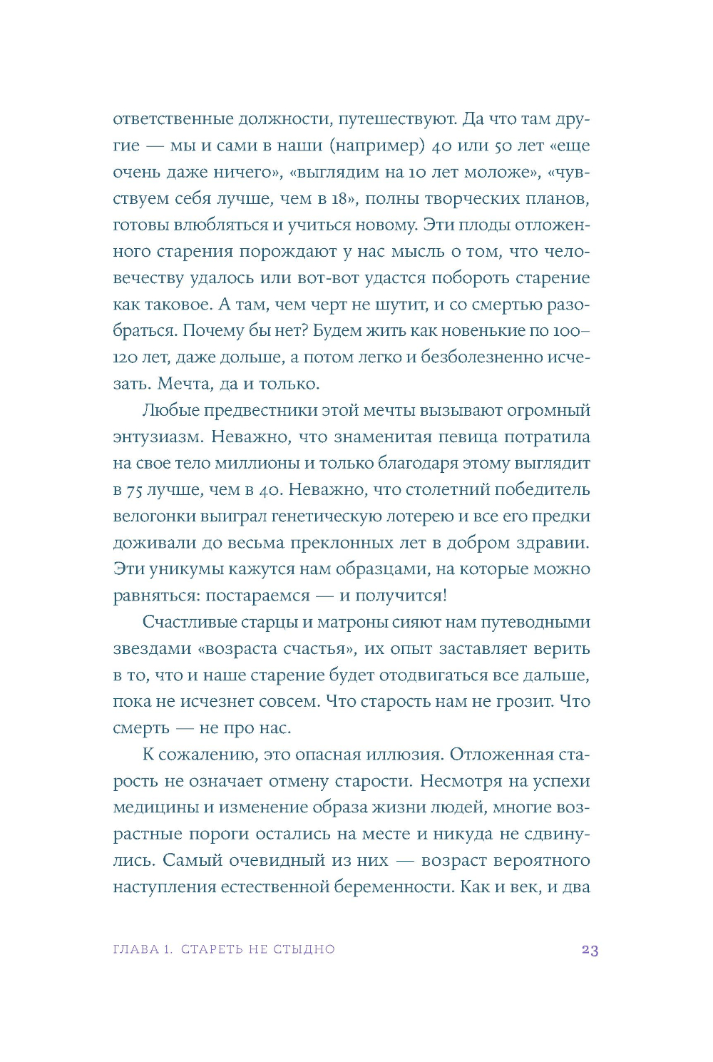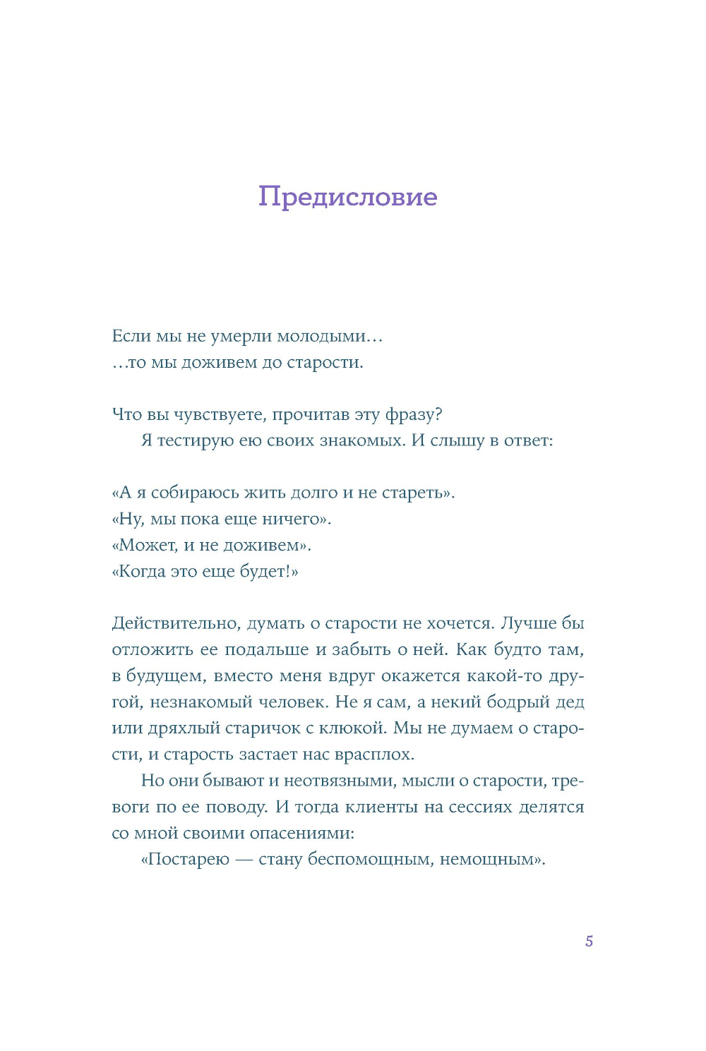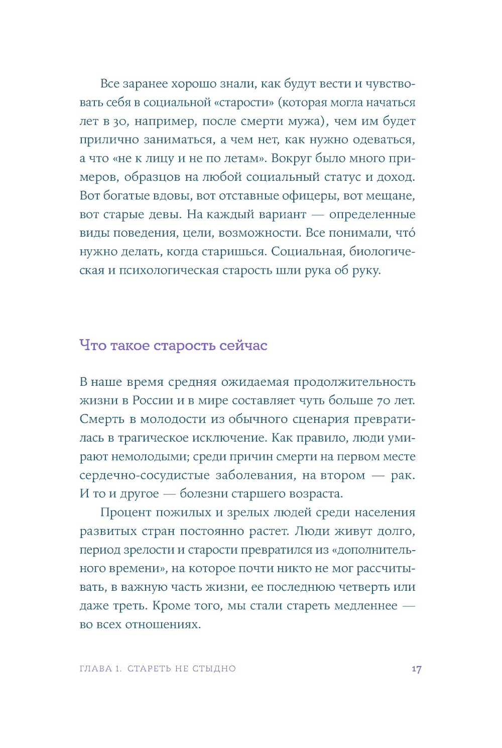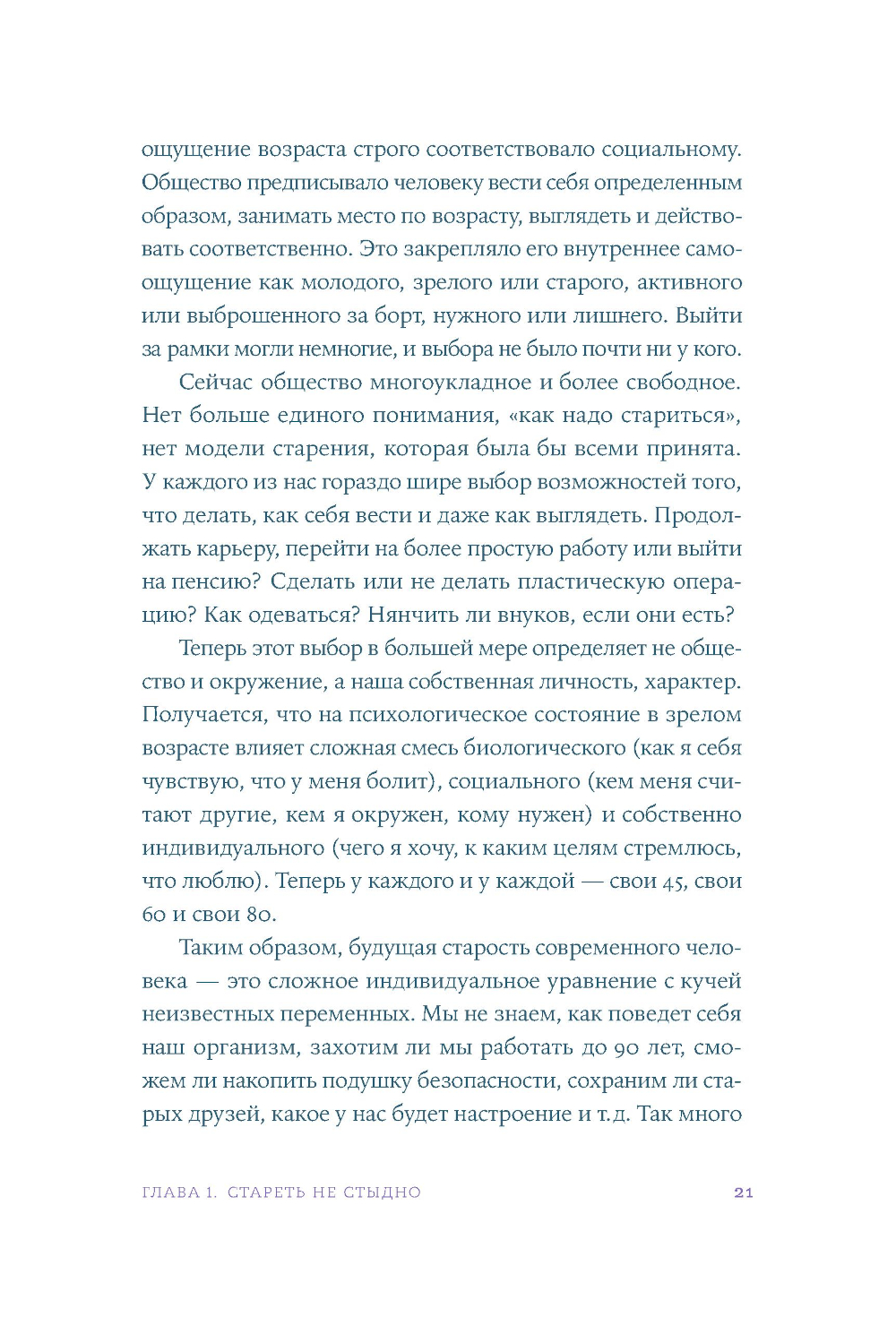 Достигнув зрелости, мы всё чаще задумываемся о неотвратимо приближающейся старости. Психологи, работающие с этой темой, видят очень интересный срез мнений: некоторые люди относятся к мыслям о старении со страхом и неприязнью, а кто-то отрицает свои возрастные изменения и делает всё, чтобы отсрочить восприятие себя как человека в возрасте, или начинает осуждающе вести себя по отношению как к молодым людям, так и к не принимающим старость сверстникам. Нормально ли такое поведение? Как перестать бояться старости и стоит ли вообще ее бояться? В книге известного клинического психолога Владислава Чубарова рассмотрены самые популярные стереотипы, связанные со старением: утрата красоты и здоровья - как физического, так и ментального, усиление негативных качеств характера, потеря самостоятельности и т. д. Автор рассматривает старость всесторонне, подсвечивая ее положительные стороны, помогая принять то, что происходит с нами с течением времени, и показывая сквозь призму пожилого возраста всю систему отношений человека с окружающим миром и с самим собой.| Издательство | Альпина Паблишер |