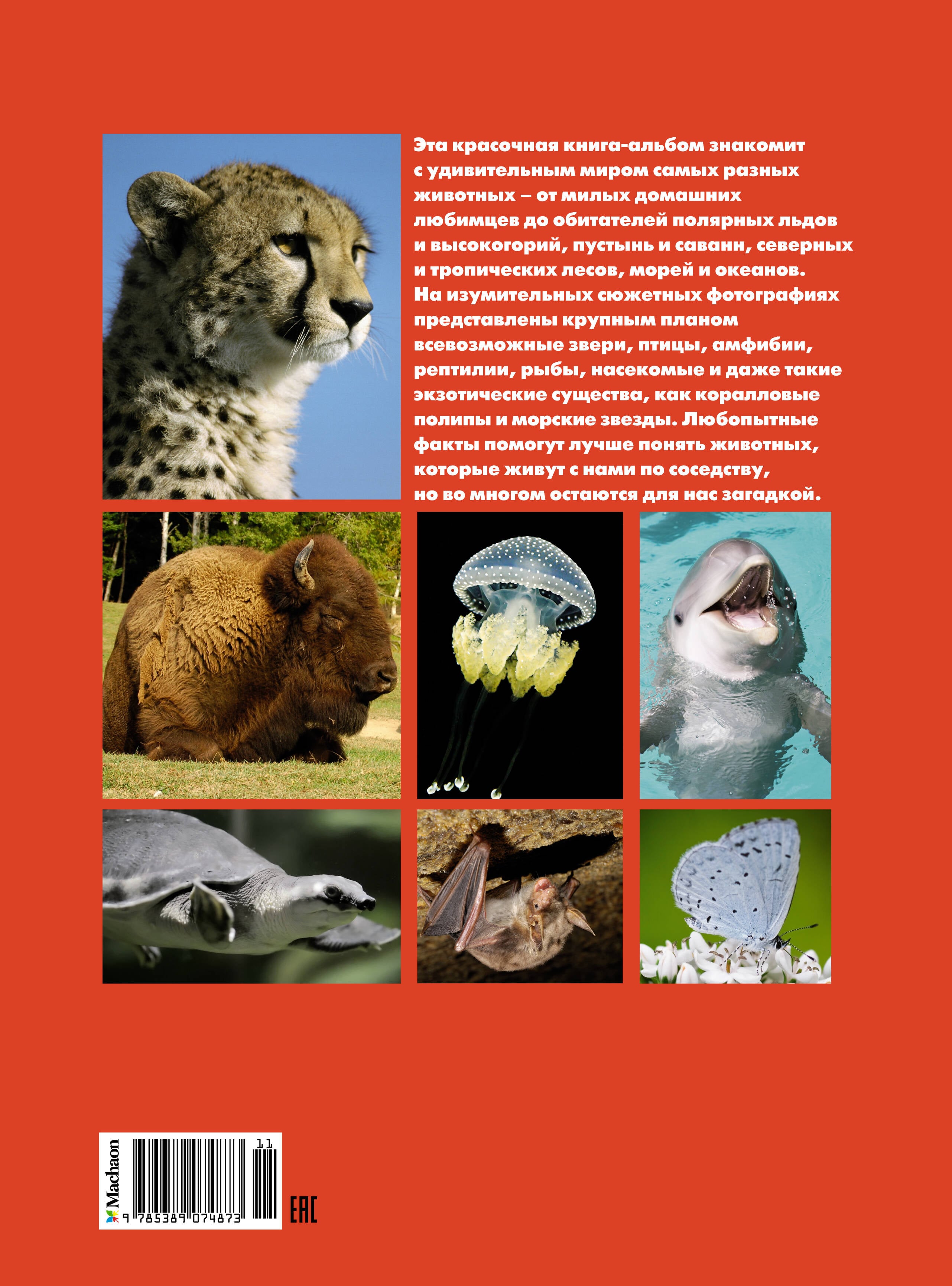 Эта красочная книга-альбом знакомит с удивительным миром самых разных животных - от милых домашних любимцев до обитателей полярных льдов и высокогорий, пустынь и саванн, северных и тропических лесов, морей и океанов. На изумительных сюжетных фотографиях представлены крупным планом всевозможные звери, птицы, амфибии, рептилии, рыбы, насекомые и даже такие экзотические существа, как коралловые полипы и морские звезды. Любопытные факты помогут лучше понять животных, которые живут с нами по соседству, но во многом остаются для нас загадкой.| Издательство | Азбука-Аттикус Издат.группа ООО |