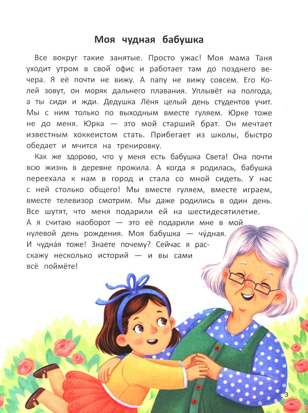 Главная героиня рассказов - пятилетняя Лиза. Её мама, папа, дедушка и старший брат постоянно заняты. Всё своё время девочка проводит с бабушкой Светой. Лиза её очень любит, поэтому говорит, что бабушка - чудная. Но при этом и чудная: некоторые поступки бабушки кажутся маленькой Лизе странными и смешными.| Издательство | Феникс |