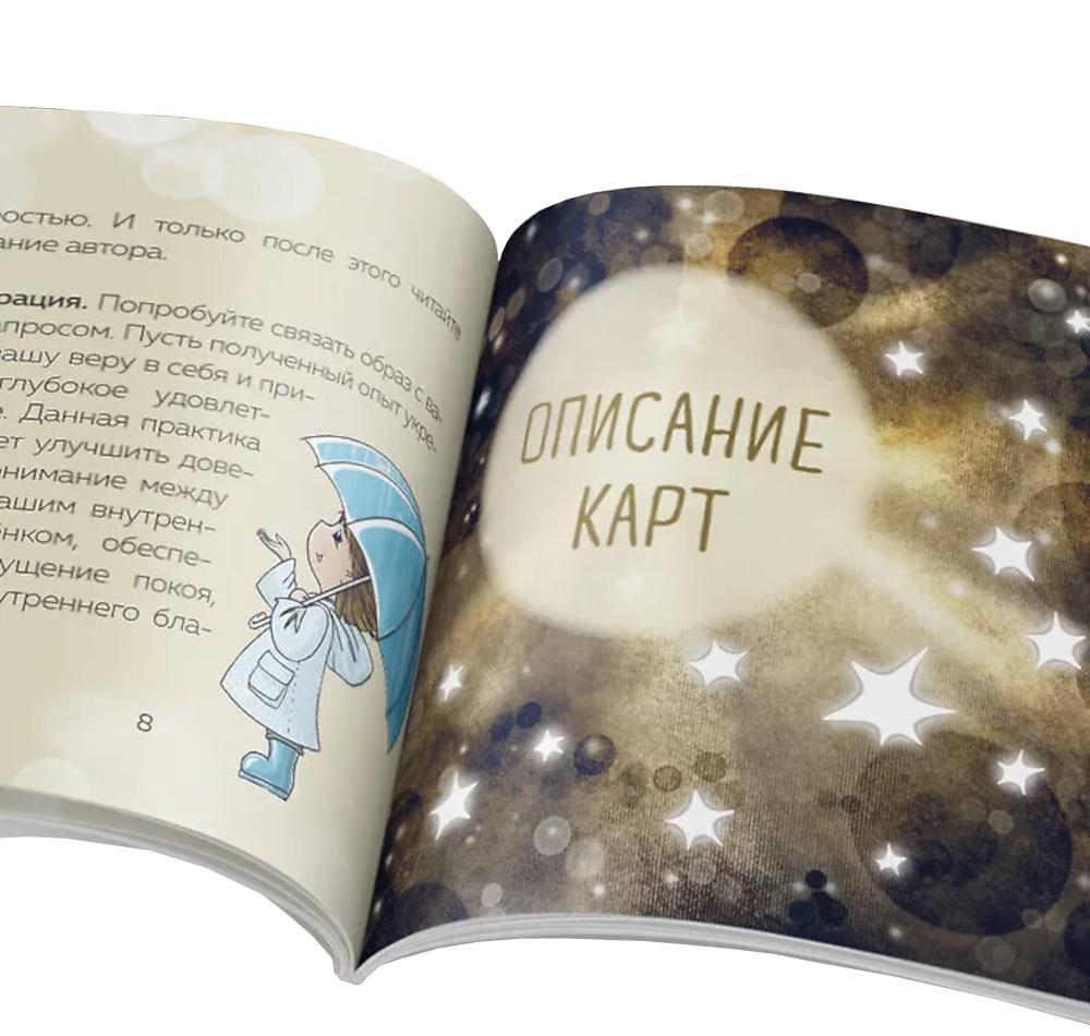 Колода метафорических ассоциативных карт (МАК) «Моя Девочка» художницы Наталии Лукомской создана для тех, кто стремится познать свою внутреннюю силу, восстановить целостность и любовь к себе. Карты дают возможность: - обратиться к своему внутреннему ребёнку; - восстановить связь с глубинными эмоциями и убеждениями, заложенными в детстве; - вернуть утраченную энергию. Основная цель колоды - восстановление контакта с собой через понимание и принятие своего внутреннего ребёнка, укрепление связи между взрослой частью личности и детскими аспектами души. МАК «Моя Девочка» - это: - 52 вдохновляющие карты с теплыми душевными иллюстрациями. - Цветное руководство к колоде с описанием всех карт. - Удобная коробочка из плотного картона, украшенная лаком.| Издательство | Эксмо |
