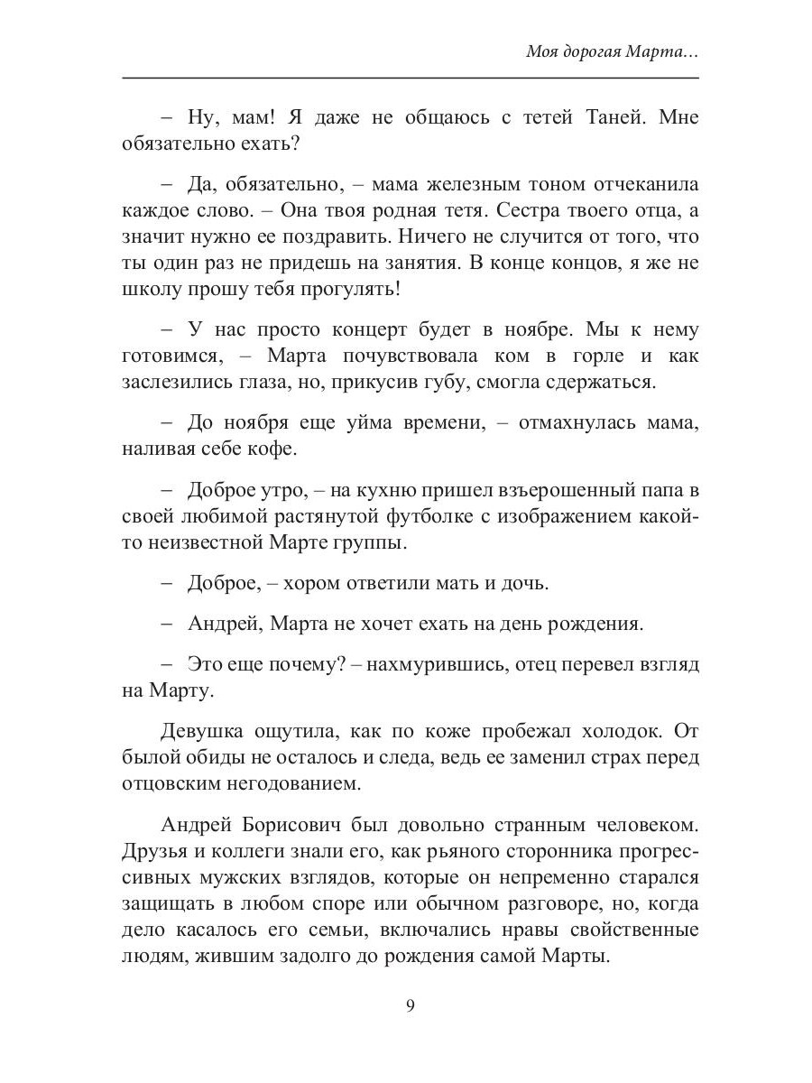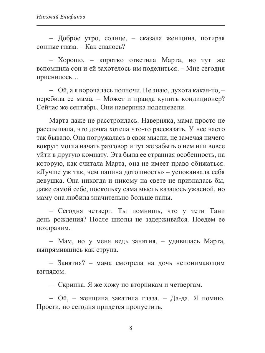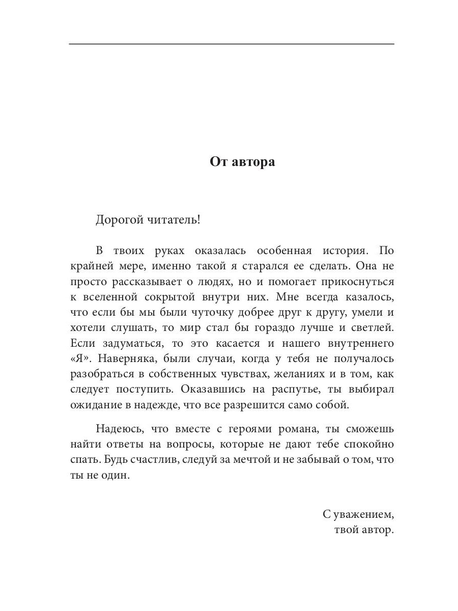 Она мечтала о прекрасном - делиться музыкой в своей душе. Но путь к мечте порой бывает очень сложным. Далеко не все хотят понять и поддержать. Проблемы дома, трудности в школе, голос внутри твердит: «Это не твое. Ты не можешь. Ты не должна». Как тут не сдаться? Неожиданно в жизни юной Марты появляется таинственный молодой человек по имени Август, что приходит к ней во снах, где она каждый раз оказывается в большом старом особняке. Август хочет слушать ее, помогать. Он становится тем, кого так не хватало Марте в жизни. Вместе они смогут бросить вызов судьбе.| Издательство | Т8 RUGRAM |