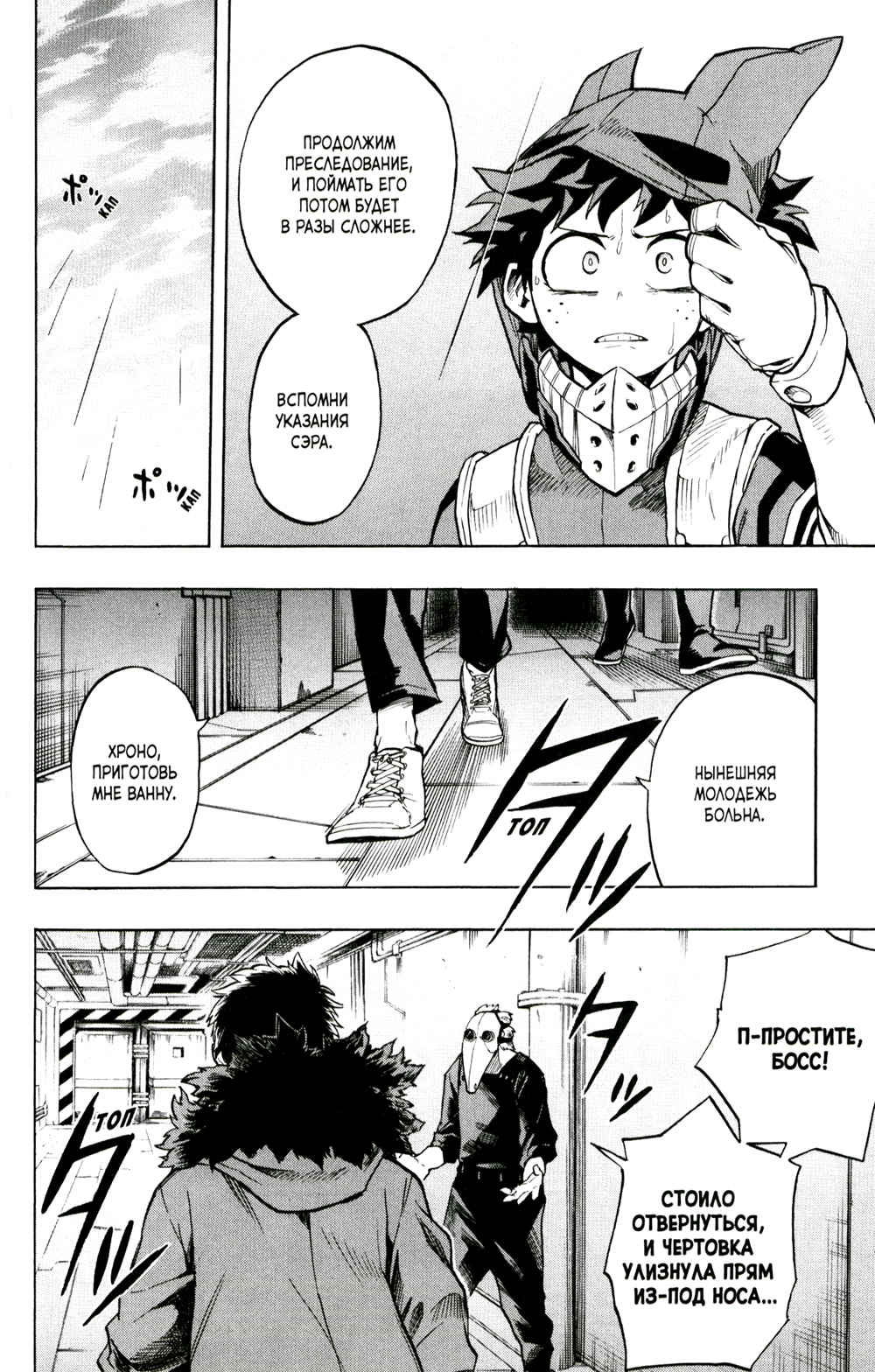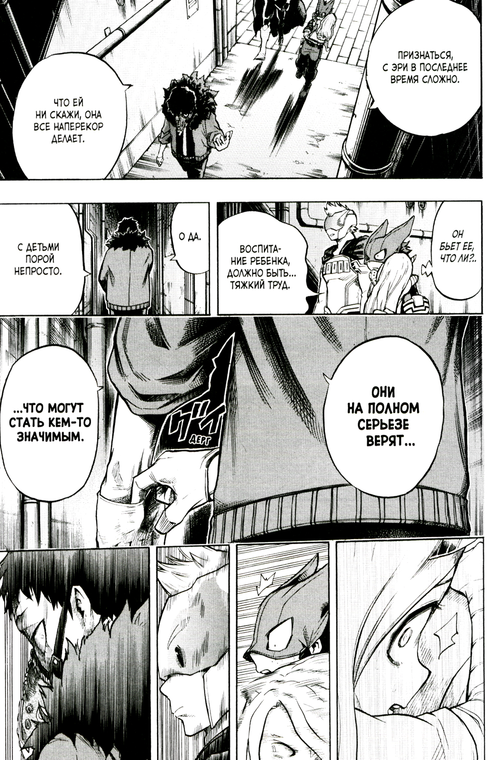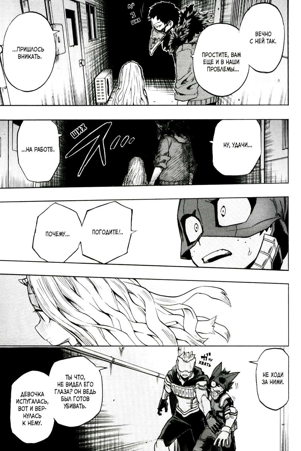 Попав на стажировку в агентство Ночноглаза, Мидория узнаёт страшную правду. Оказывается, Сэр видел печальное будущее Всемогущего - и оно вот-вот станет явью. Тем временем преступная группировка во главе с Тисаки ведет переговоры с Альянсом Злодеев. У якудза есть некий план по «разрушению устоев». Для этого в подземельях своей штаб-квартиры они разрабатывают особое вещество, обладающее пагубными для причуд свойствами…