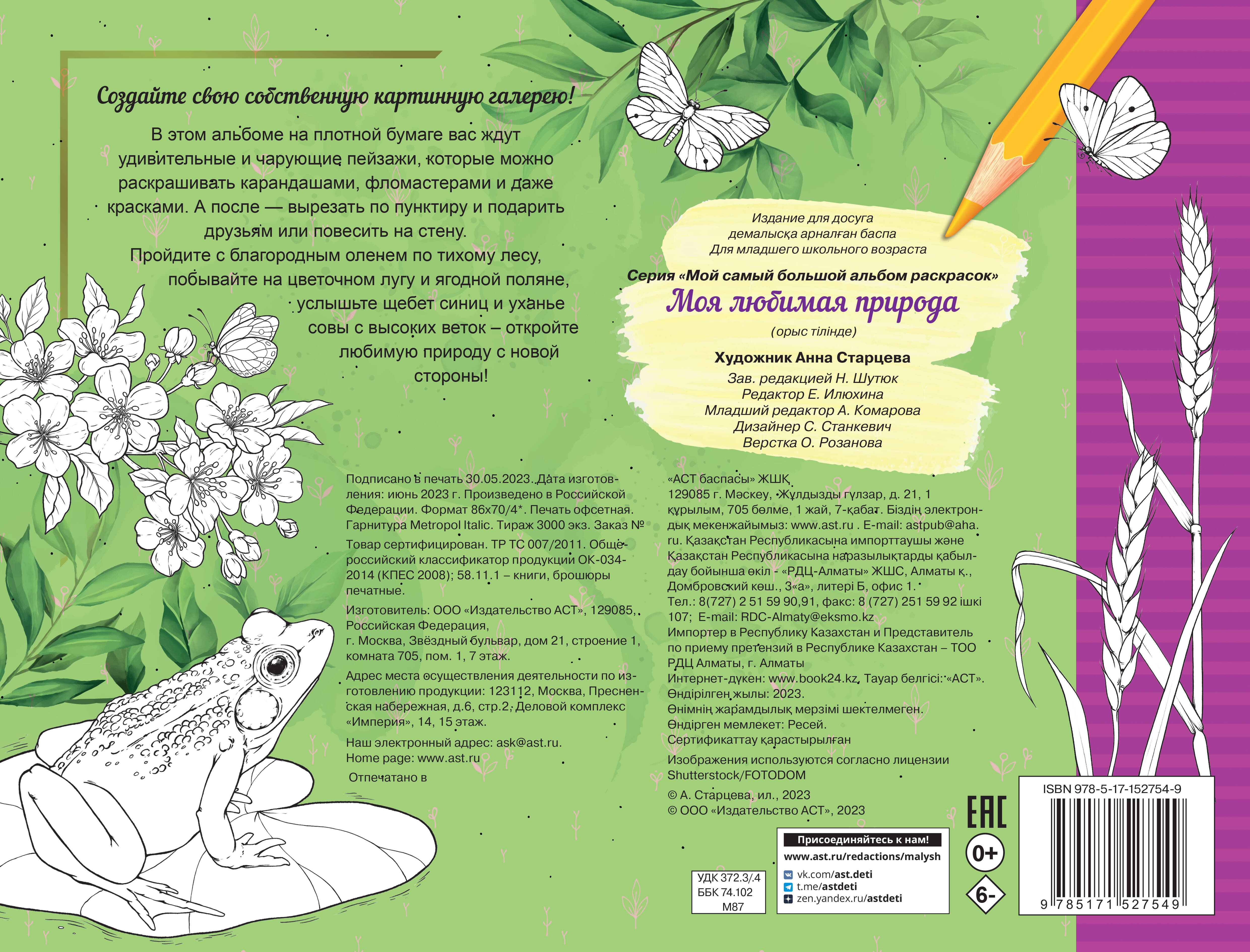 Создайте свою собственную картинную галерею! В этом альбоме на плотной бумаге вас ждут удивительные и чарующие пейзажи, которые можно раскрашивать карандашами, фломастерами и даже красками. А после - вырезать по пунктиру и подарить друзьям или повесить на стену. Пройдите с благородным оленем по тихому лесу, побывайте на цветочном лугу и ягодной поляне, услышьте щебет синиц и уханье совы с высоких веток - откройте любимую природу с новой стороны!| Издательство | ИЗДАТЕЛЬСТВО "АСТ" |