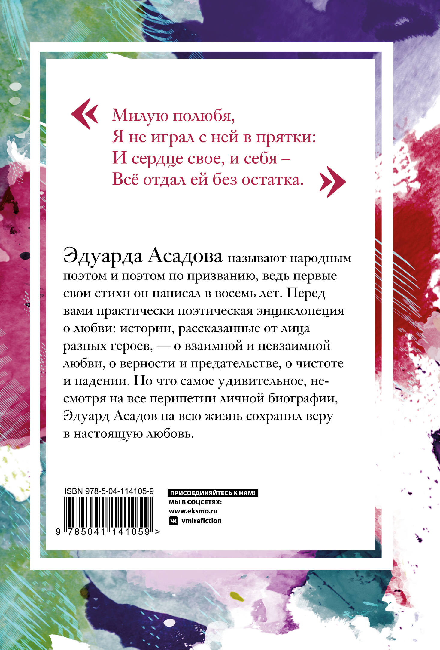 «Настоящая слава Асадова связана не с военными и не с патриотическими его стихами (последних относительно немного, он никогда не спекулировал на этой теме), а именно со стихами о любви, со студенческими и средне интеллигентскими love-stories: измена, раскаяние, простит - не простит, слезы. Асадов - поэт сентиментальный и назидательный, как Карамзин (и, как Карамзин, он сбивает пафос дружелюбной иронией, ибо читателя своего искренне любит). Стихи его часто называли рифмованными прописями. Он любовался кремневой твердостью своих неярких, неброских, но непрощающих героинь; и он же от души, горячо прощал своим непостоянным героям, страдал за них, жалел их…» - Дмитрий Быков| Издательство | ООО "Издательство "Эксмо" |