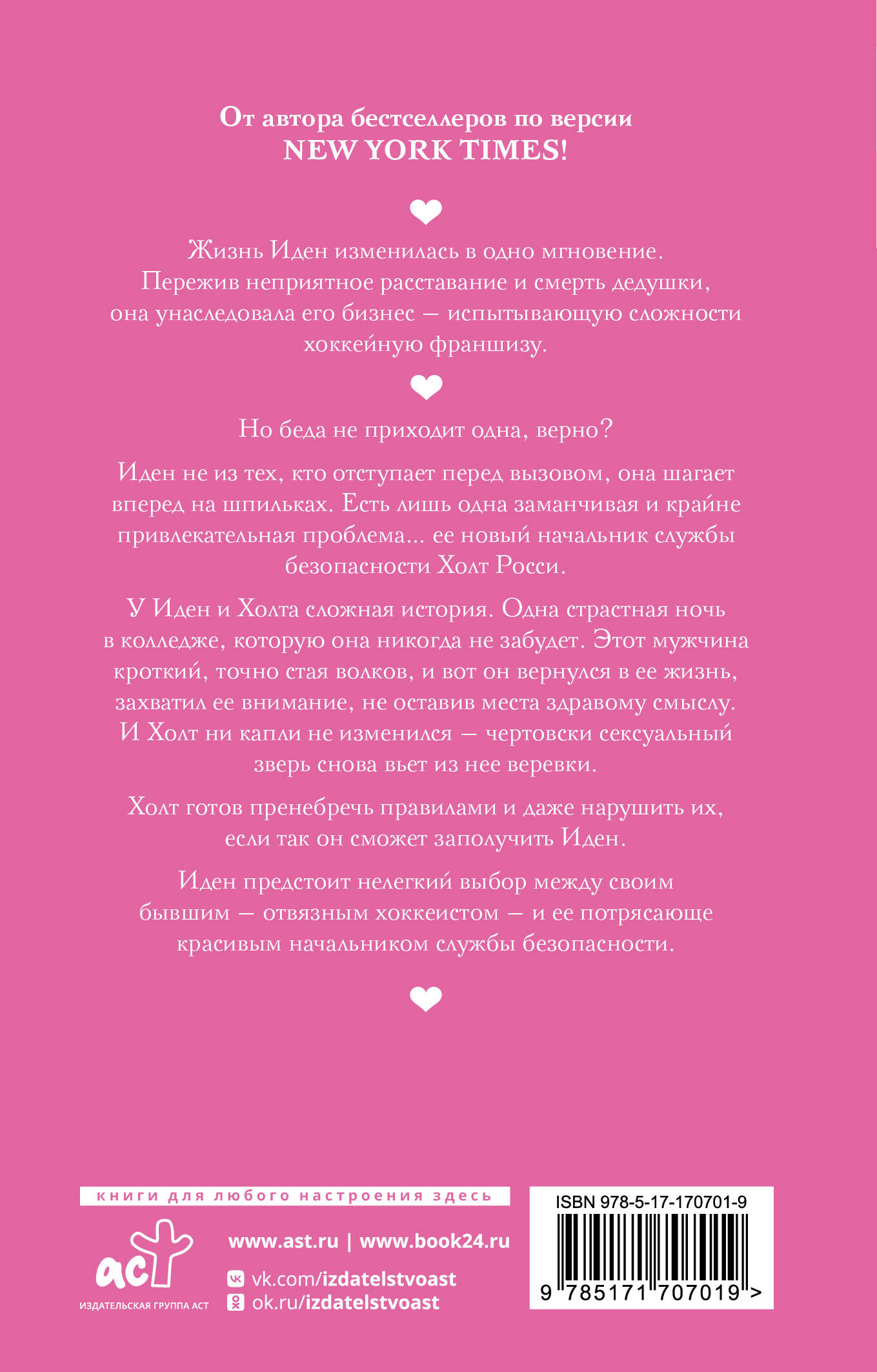 Жизнь Иден изменилась в одно мгновение. Пережив неприятное расставание и смерть дедушки, она унаследовала его бизнес - испытывающую сложности хоккейную франшизу. Но беда не приходит одна, верно? Иден не из тех, кто отступает перед вызовом, она шагает вперед на шпильках. Есть лишь одна заманчивая и крайне привлекательная проблема… ее новый начальник службы безопасности Холт Росси. У Иден и Холта сложная история. Одна страстная ночь в колледже, которую она никогда не забудет. Этот мужчина кроткий, точно стая волков, и вот он вернулся в ее жизнь, захватил ее внимание, не оставив места здравому смыслу. И Холт ни капли не изменился - чертовски сексуальный зверь снова вьет из нее веревки. Холт готов пренебречь правилами и даже нарушить их, если так он сможет заполучить Иден. Иден предстоит нелегкий выбор между своим бывшим - отвязным хоккеистом - и ее потрясающе красивым начальником службы безопасности.