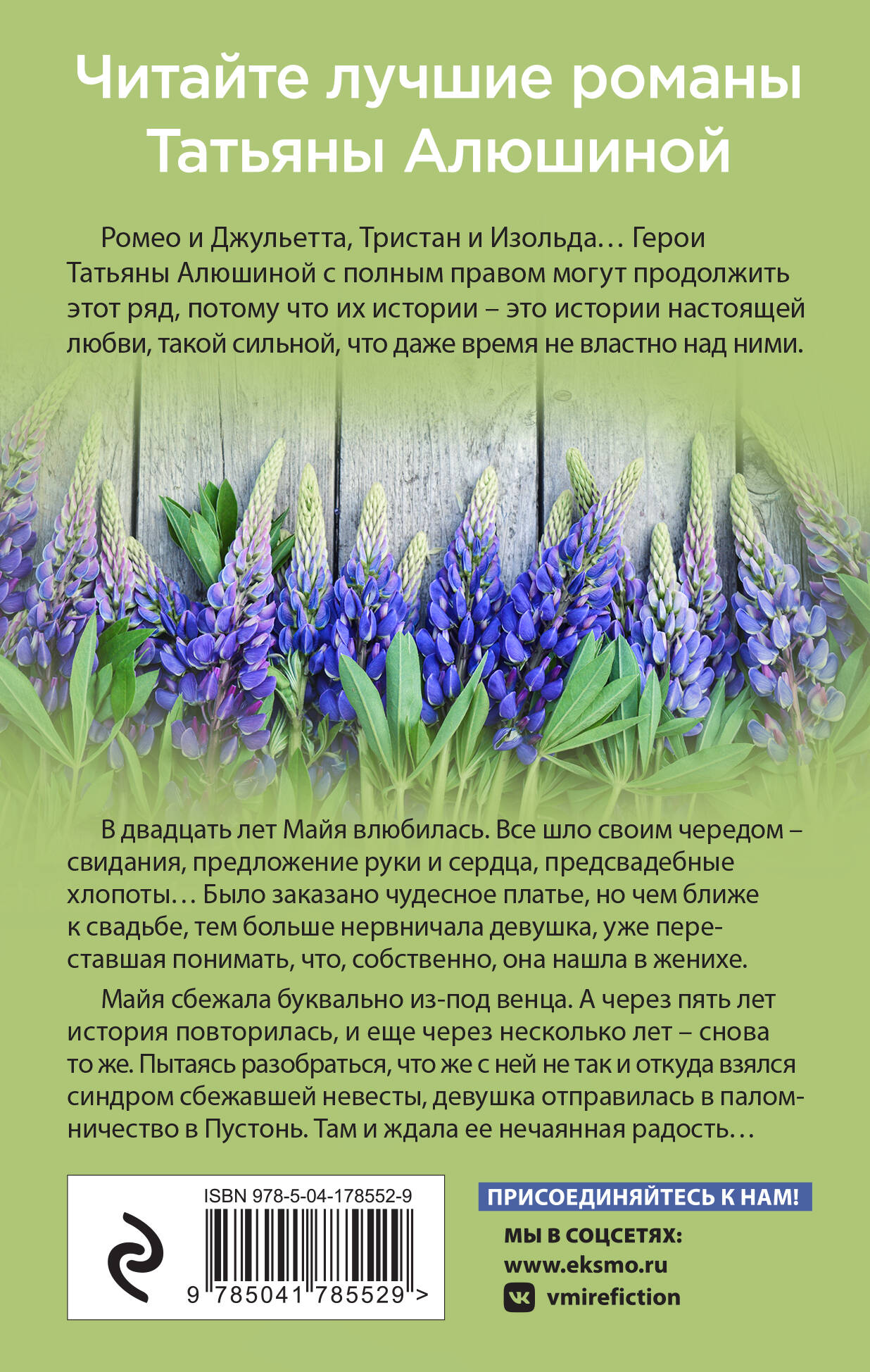 Романы Татьяны Алюшиной давно заслужили признание читательниц по всей стране, а тиражи ее книг насчитывают более пяти миллионов экземпляров. Захватывающие сюжеты, незабываемые чувства, подлинная страсть - ее книги читаются на одном дыхании, а истории главных героинь трогают сердца и снова помогают поверить в любовь! В двадцать лет Майя влюбилась. Все шло своим чередом - свидания, предложение руки и сердца, предсвадебные хлопоты… Было заказано чудесное платье, но чем ближе к свадьбе, тем больше нервничала девушка, уже переставшая понимать, что, собственно, она нашла в женихе. Майя сбежала буквально из-под венца. А через пять лет история повторилась, и еще через несколько лет - снова то же. Пытаясь разобраться, что же с ней не так и откуда взялся синдром сбежавшей невесты, девушка отправилась в паломничество в Пустонь. Там и ждала ее нечаянная радость…| Издательство | ООО "Издательство "Эксмо" |