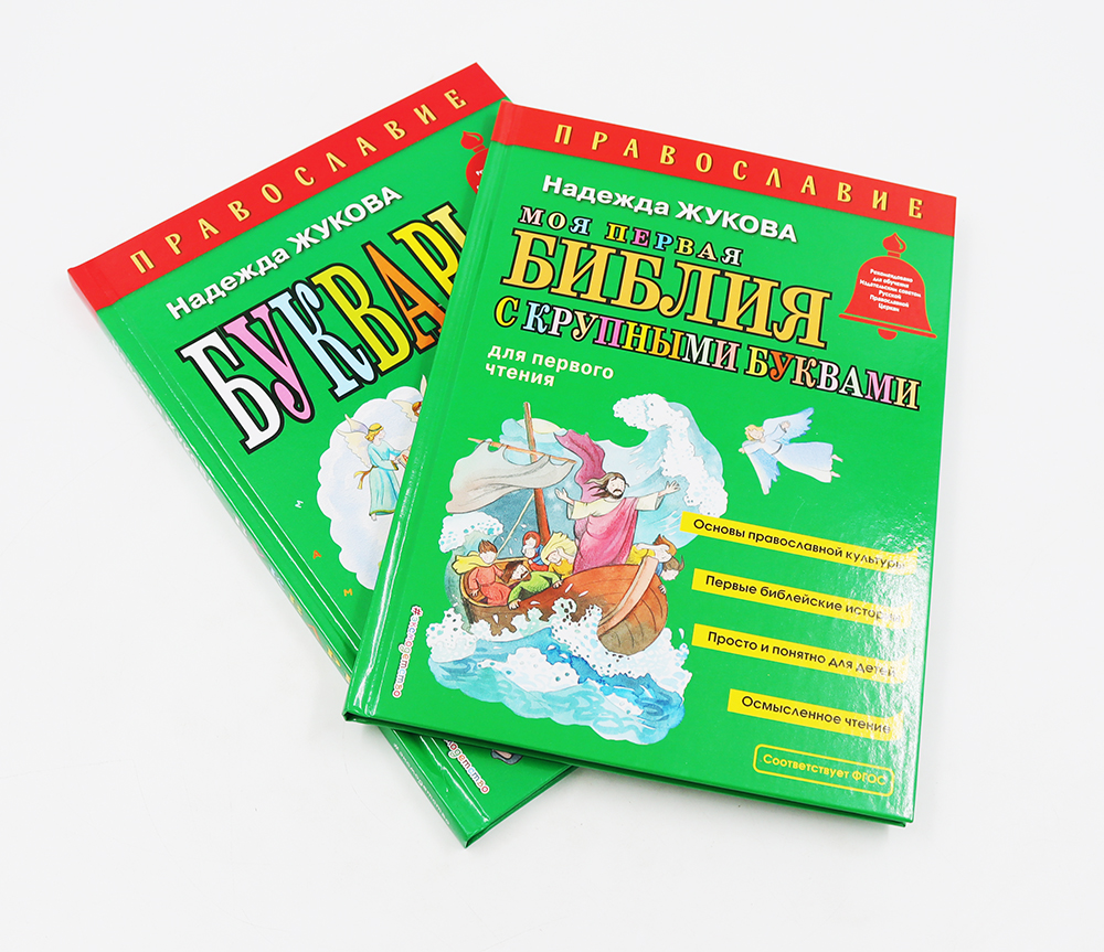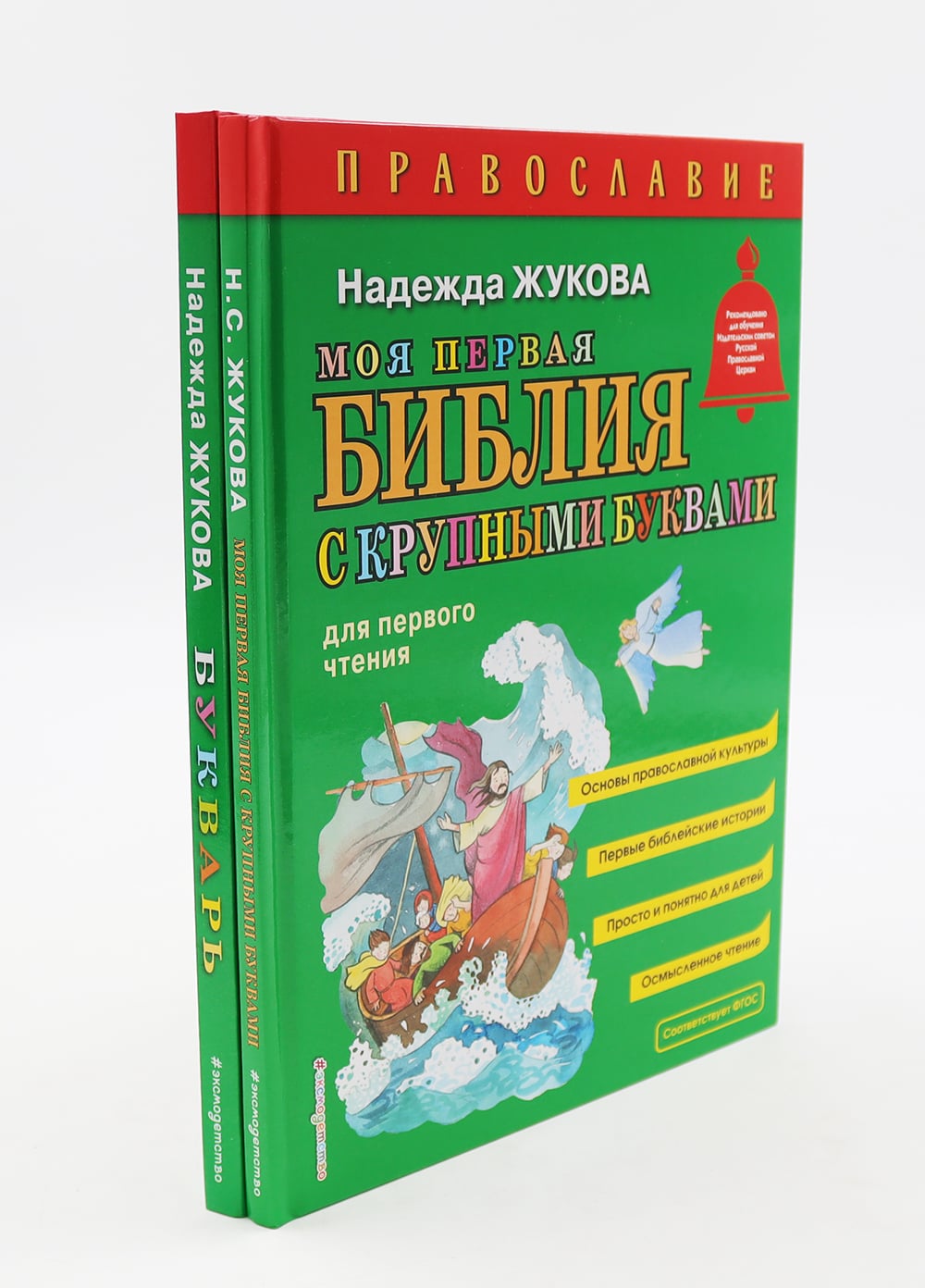 Комплект состоит из двух книг для детей Н.С. Жуковой: «Моя первая Библия» и «Православный букварь». «Православный букварь» Жуковой сочетает в себе традиционную методику обучения чтению с самыми простыми словами и предложениями из церковной жизни. Данный Букварь может быть использован при обучении чтению для всех детей. Также он рекомендован Синодальным отделом религиозного образования и катехизации РПЦ для уроков в православных гимназиях и воскресных школах. Вся методическая литература по авторской программе Надежды Жуковой строится на сочетании традиционной и оригинальной логопедической методики. При составлении «Православного букваря» был использован 30-тилетний опыт работы известного логопеда, а также сделан акцент на знакомстве ребёнка с основами православной культуры. В книге использованы иллюстрации, подготовленные специально для «Православного букваря», включены первые молитвы, а также словарик самых нужных слов для православного ребёнка. Книга «Моя первая Библия» - дополнение к «Православному букварю» Надежды Жуковой! Если ваш ребёнок уже научился читать с помощью Букваря Надежды Жуковой, то закономерным продолжением закрепления техники чтения будет эта книга. Она создана специально для детей, которых родители хотят воспитать настоящими христианами. Книга рекомендована для обучения Издательским советом Русской Православной Церкви, может быть использована на уроках в православных гимназиях и для домашнего чтения. Так как полный текст Библии слишком сложен для детского восприятия, мы предлагаем родителям вместе с ребёнком прочитать специально подобранные и адаптированные первые библейские истории. В книге содержится 34 рассказа, набранных крупным шрифтом и написанных простым языком, их без труда сможет понять только освоивший чтение ребёнок. Каждую историю завершают вопросы - таким образом прочитанное лучше запомнится, а чтение станет осознанным. С помощью одной книги ребёнок сможет закрепить технику чтения и узнать основы православной культуры. Чудесные цветные иллюстрации замечательного детского художника Соны Адалян дополняют интересные и поучительные библейские рассказы. НАДЕЖДА СЕРГЕЕВНА ЖУКОВА - известный московский логопед, кандидат педагогических наук. Ей принадлежат оригинальные исследования поступательных процессов развития речи у дошкольников. Многочисленные научные труды автора были опубликованы в отечественных и зарубежных профильных изданиях. В своей практической работе автор сохраняет и продолжает традиции таких известных советских педагогов - логопедов-практиков, как Е.Ф. Рау, А.Г. Ипполитова.