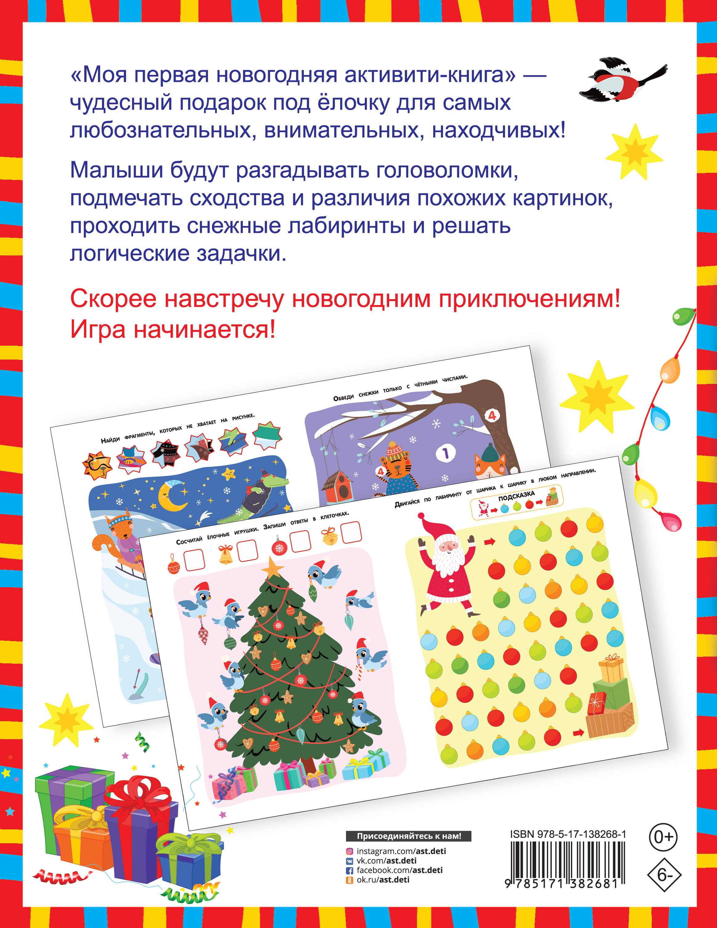 О чем эта книга Новая книжка в серии «Первые активити-книжки» - увлечет компанию дошколят, позволит почувствовать атмосферу праздника. Интересные задания развивают гибкость ума, речь, внимание, память и графические навыки, пробуждают творческие способности. Кому эта книга будет интересна Занимательные задания собраны специально для компании дружных и веселых малышей - а также их родителей. На каждой страничке - веселые увлекательные игры, которые помогут создать по-настоящему праздничное настроение. Каковы особенности этой книги • Весёлые увлекательные задания для новогоднего настроения. • Лучшие идеи для игр и развлечений - на каждой страничке. • Эффективная тренировка интеллекта в игровой форме. • Стильное оформление и красочные иллюстрации. • Малыши смогут с удовольствием и надолго погрузиться в удивительный мир новогодних игр и головоломок.