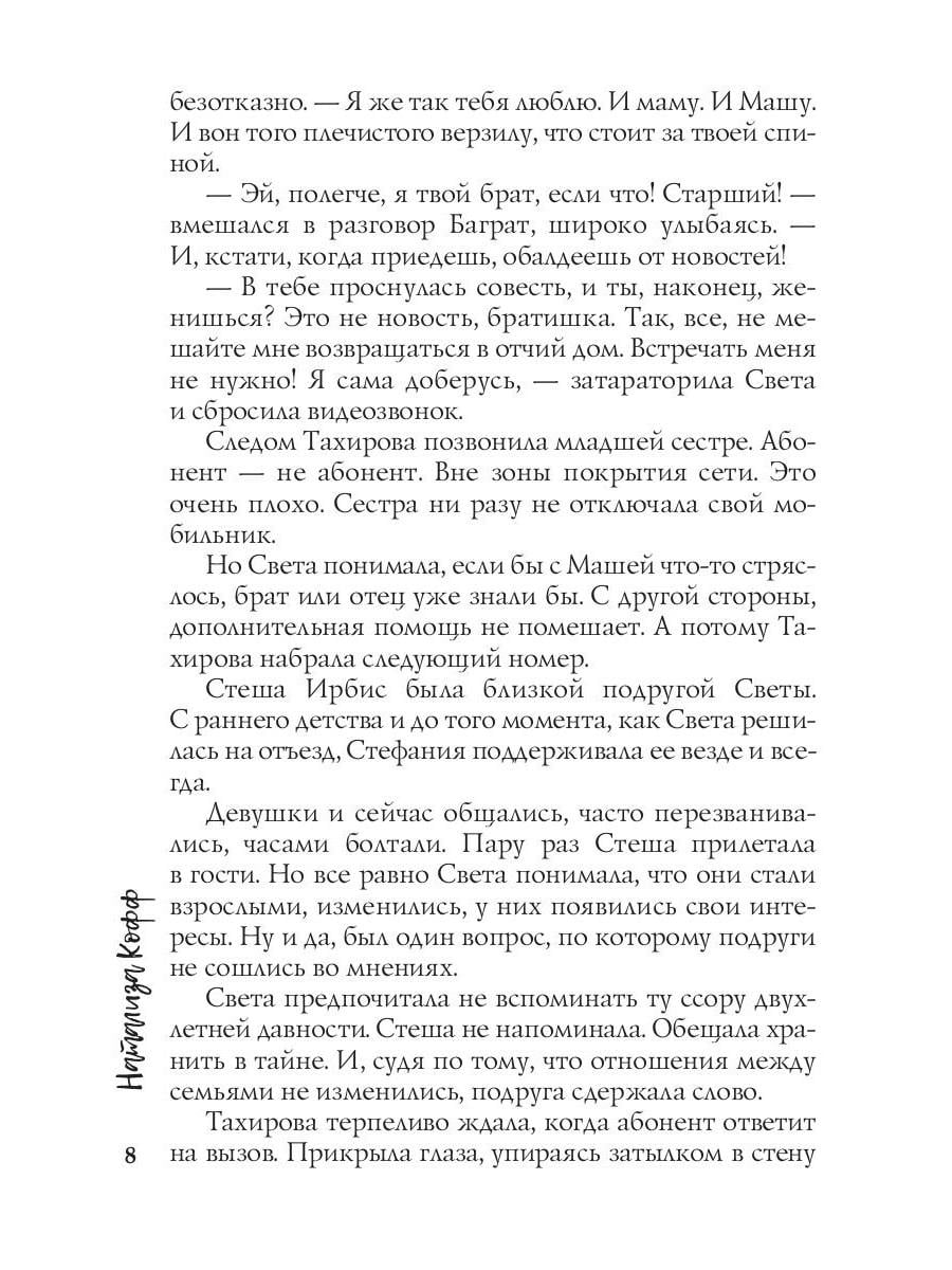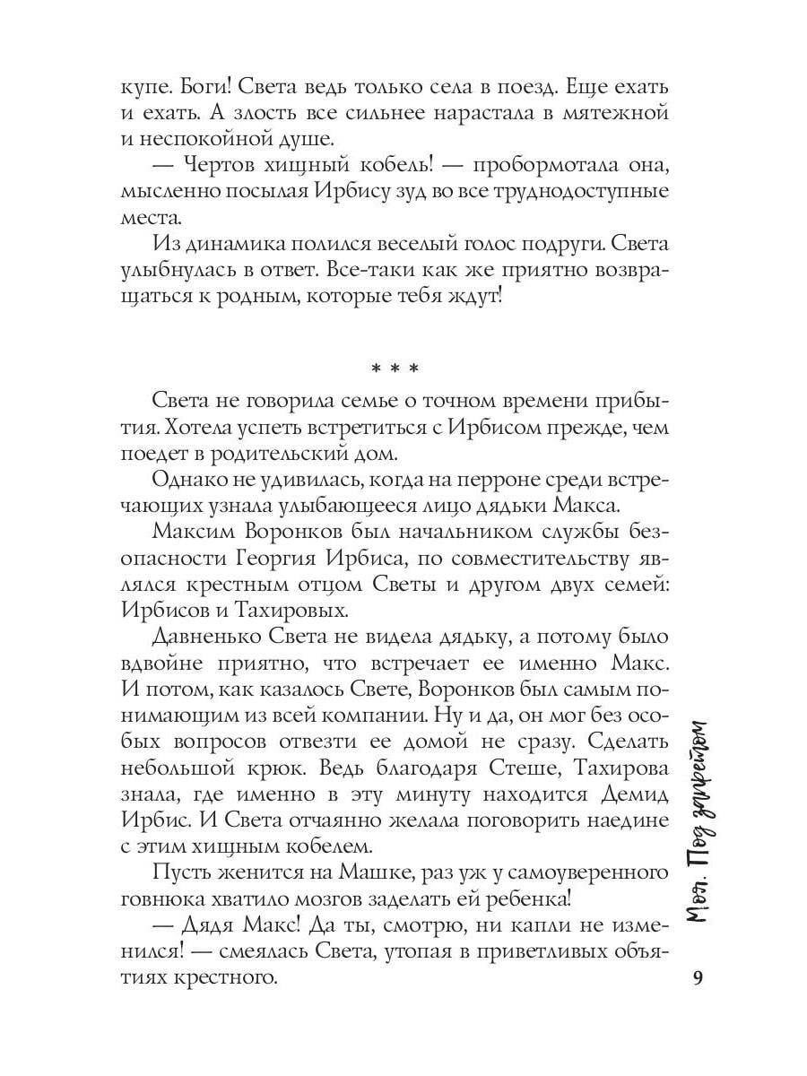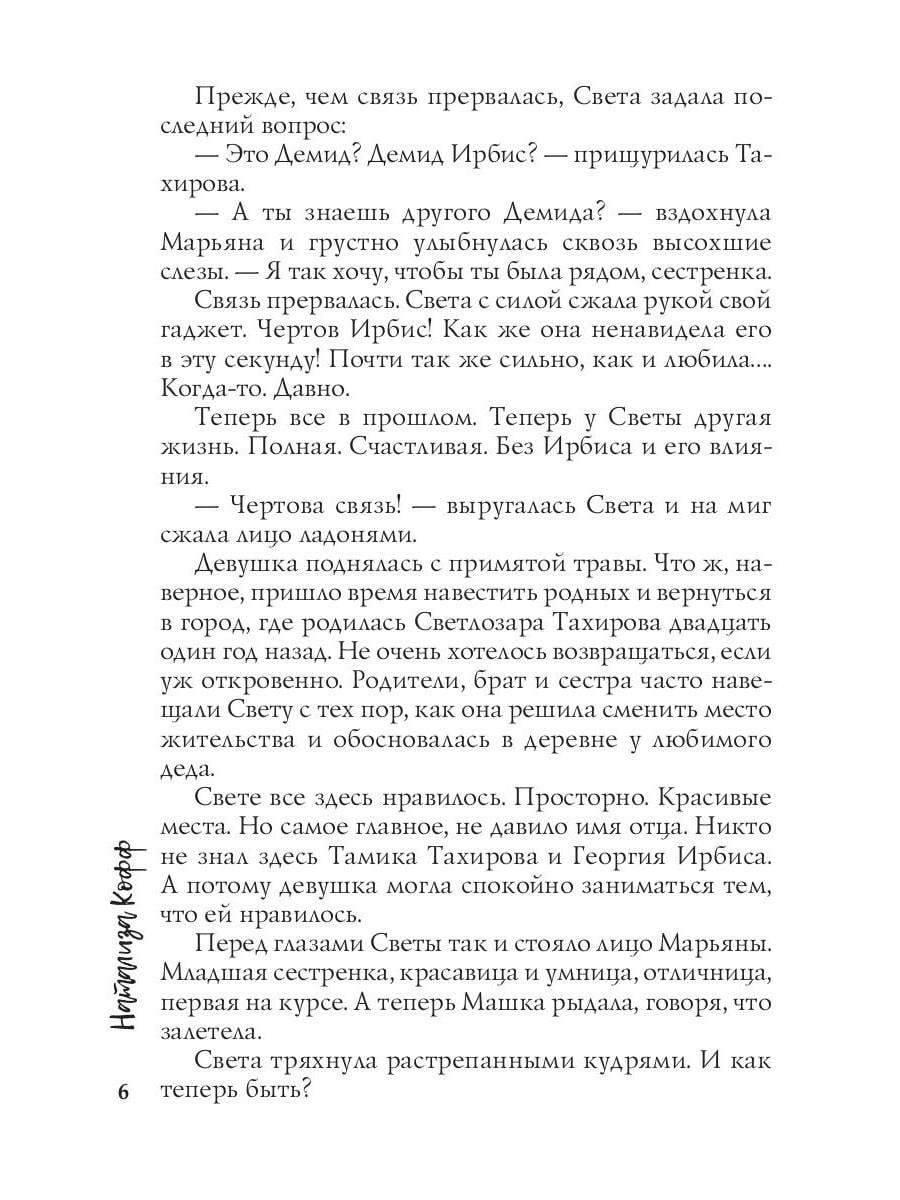 - Это Демид, - шмыгнула носом Марьяна и посмотрела прямо в глаза Светлане. Что хотела сказать своим взглядом Маша? Демид? Чертов похотливый кобель умудрился заделать Машке ребенка? Прежде, чем связь прервалась, Света задала последний вопрос: - Это Демид? Демид Ирбис? - прищурилась Тахирова. - А ты знаешь другого Демида? - вздохнула Марьяна и грустно улыбнулась сквозь высохшие слезы. - Я так хочу, чтобы ты была рядом, сестренка. Связь прервалась. Света с силой сжала рукой свой гаджет. Чертов Ирбис! Как же она ненавидела его в эту секунду! Почти так же сильно, как и любила…Когда-то. Давно. Теперь все в прошлом. Теперь у Светы другая жизнь. Полноценная. Счастливая. Без Ирбиса и его влияния.| Издательство | Т8 RUGRAM |
