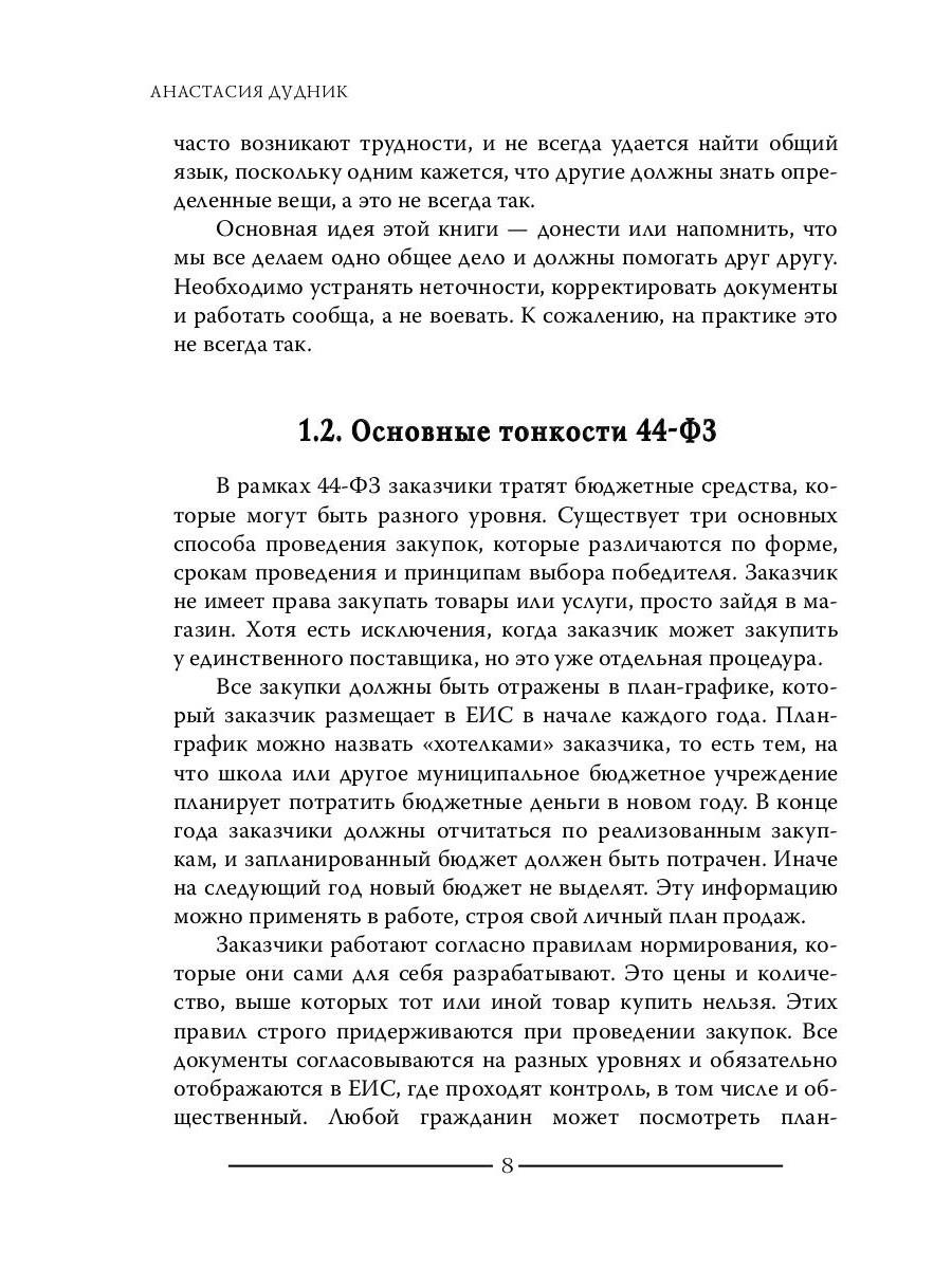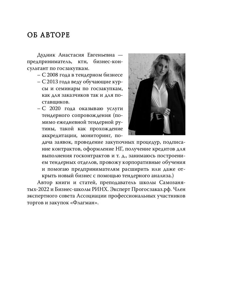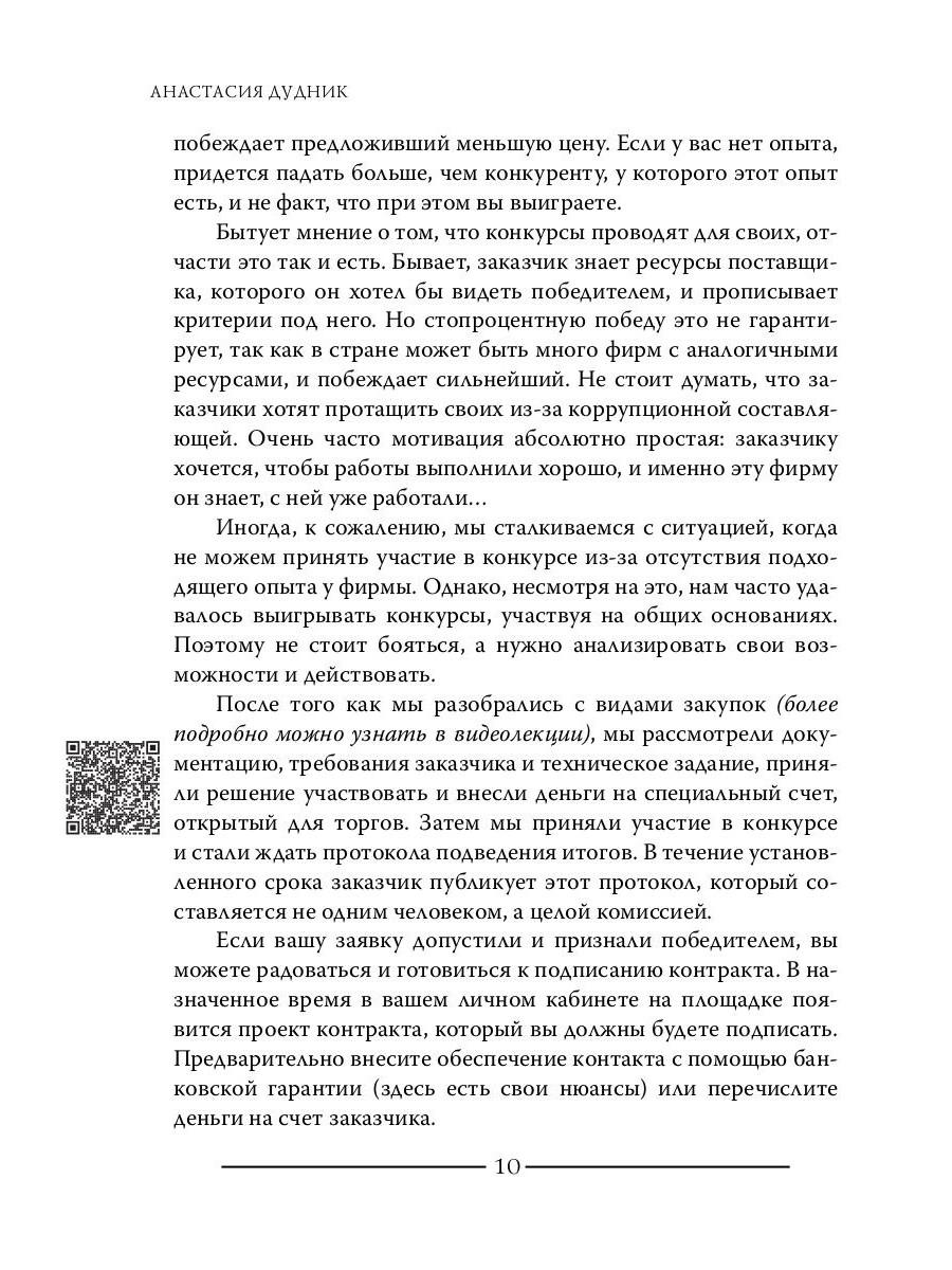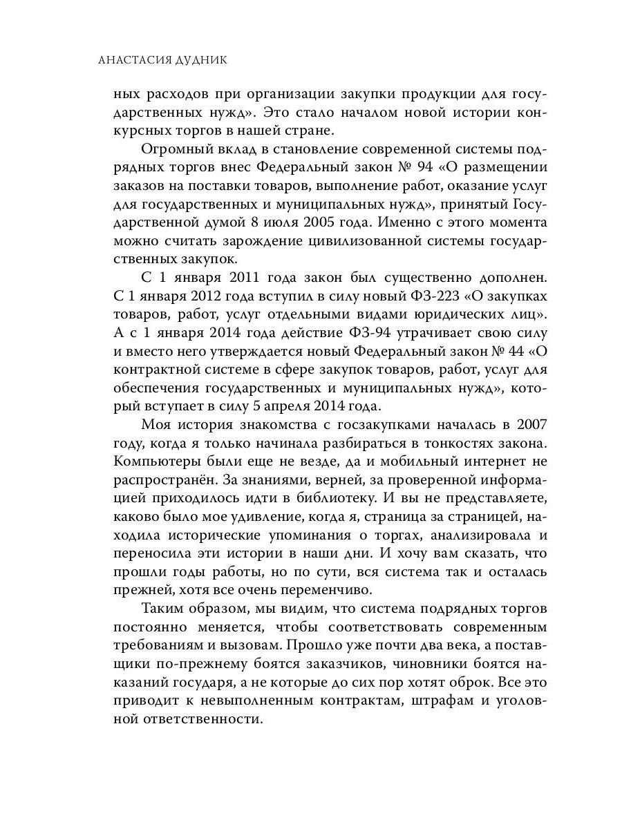 Анастасия Дудник - предприниматель, с 2008 года работает в госзакупках. В книге делится сво им опытом, откровенно говорит про работу с государством, организацию бизнеса, тендерное сопровождение, сложности и положительные моменты в работе. Читатель получит честный рассказ с элементами аналитики, ссылками на законы и истории из жизни с примерами о том, как не надо делать в том числе.| Издательство | Рипол Классик |