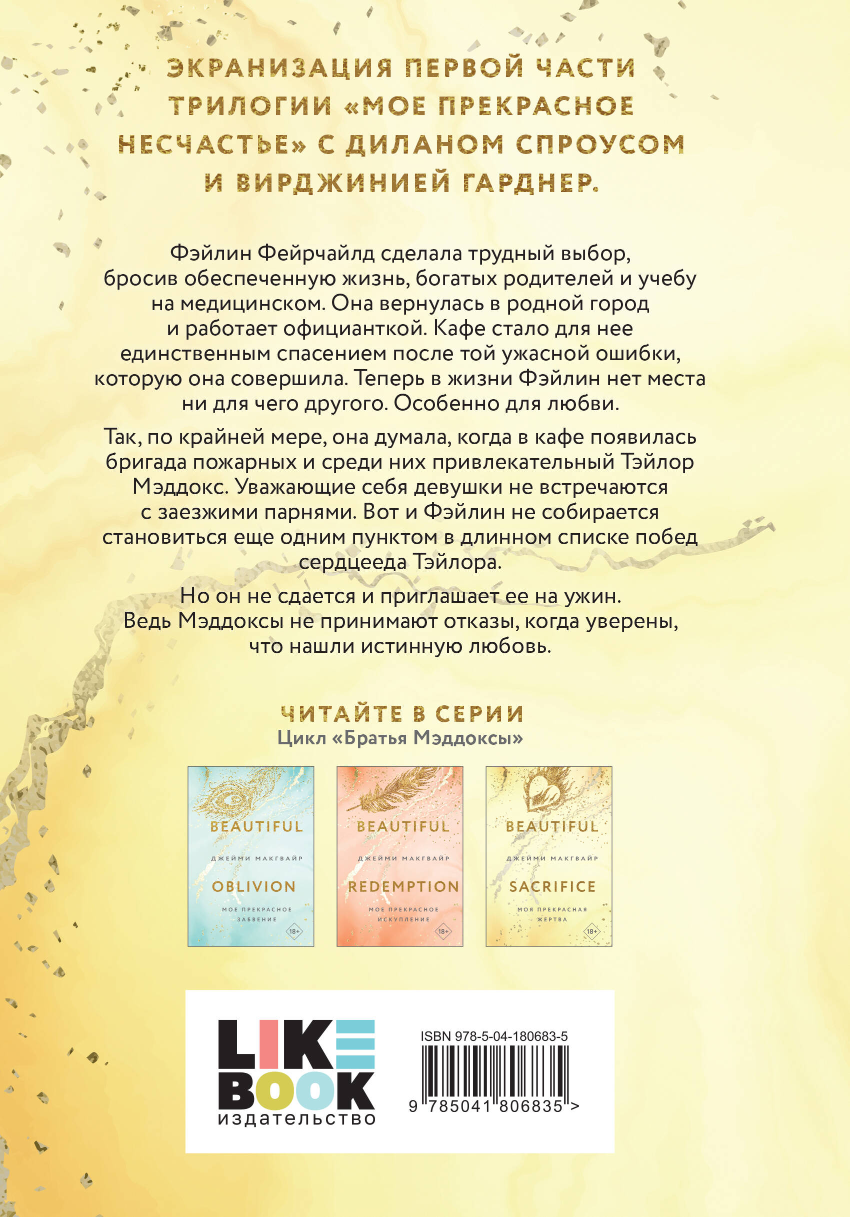 Новая книга о знаменитых братьях Мэддоксах! На этот раз Джейми Макгвайр расскажет историю Тэйлора, одного из близнецов. Бестселлер New York Times! Права на издание книги проданы в 26 стран. Экранизация «Мое прекрасное несчастье» и «Моя прекрасная свадьба» с Диланом Спроусом и Вирджинией Гарднер. Фэйлин Фейрчайлд сделала трудный выбор, бросив обеспеченную жизнь, богатых родителей и учебу на медицинском. Она вернулась в родной город и работает официанткой. Кафе стало для нее единственным спасением после той ужасной ошибки, которую она совершила. Теперь в жизни Фэйлин нет места ни для чего другого. Особенно для любви. Так, по крайней мере, она думала, когда в кафе появилась бригада пожарных и среди них привлекательный Тэйлор Мэддокс. Уважающие себя девушки не встречаются с заезжими парнями. Вот и Фэйлин не собирается становиться еще одним пунктом в длинном списке побед сердцееда Тэйлора. Но он не сдается и приглашает ее на ужин. Ведь Мэддоксы не принимают отказы, когда уверены, что нашли истинную любовь. «Цикл "Братья Мэддокс" сексуален, вызывает привыкание и полон сюрпризов - прям как сами парни Мэддоксы». - Ками Гарсия, автор бестселлера «Прекрасные разбитые сердца»| Издательство | ООО "Издательство "Эксмо" |