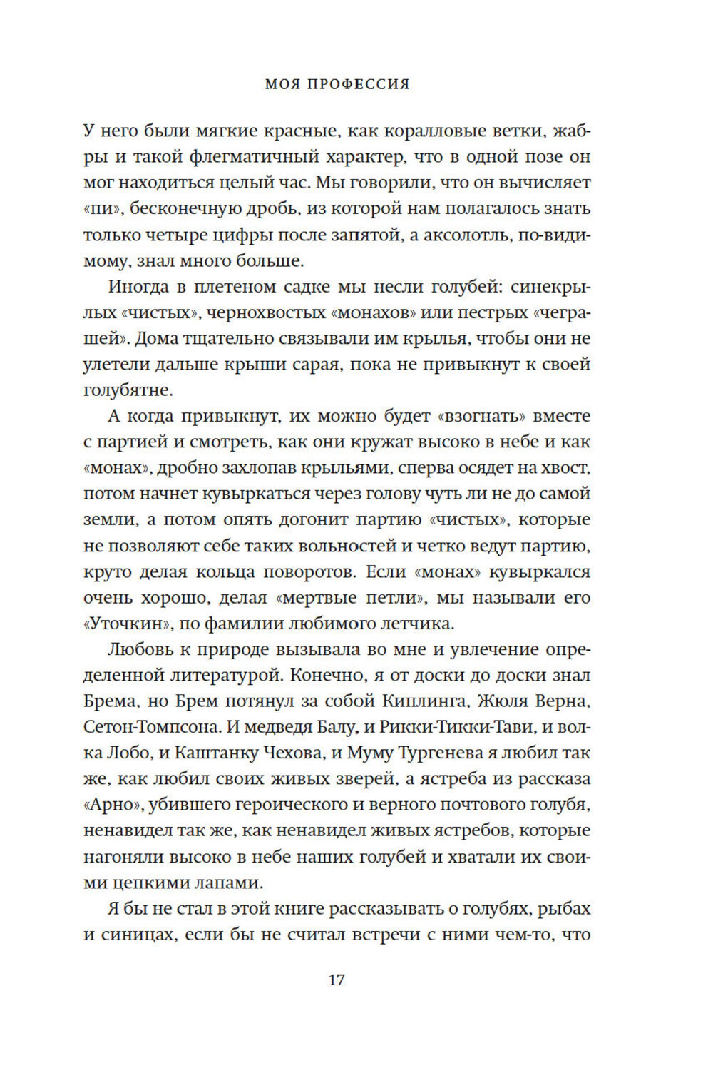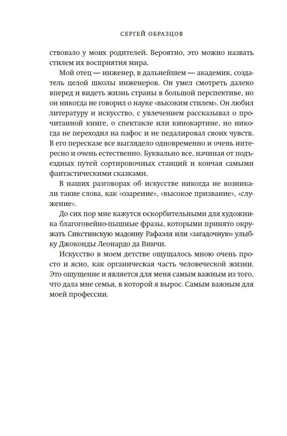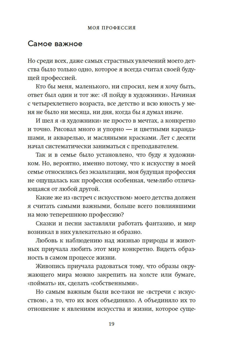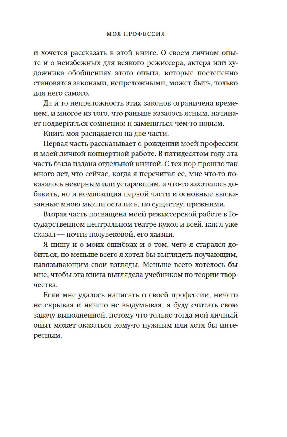 «Моя профессия» - книга необычная. Прежде всего потому, что написана она человеком, создавшим уникальный театр и придумавшим профессию, которой до него не существовало. Этот театр в Москве на Садовой-Самотечной известен теперь во всем мире. А начиналось все с небольшой куклы Би-ба-бо, которую Сергею Образцову в детстве подарила мама. Пройти путь от маленькой куклы до огромного прославленного театра - согласитесь, не каждому под силу. Какими же качествами надо обладать, насколько надо быть одержимым своим делом, чтобы это осуществилось? Читая «Мою профессию», вы будете слышать голос человека, который искренне любил свое дело и своего зрителя. А главное - хотел сделать мир лучше и добрее. «Процесс творчества, - писал он, - похож на известный эпизод русской сказки, в которой Иван-царевич добывает сундук, а из сундука зайца, а из зайца утку, а из утки яйцо, а из яйца иголку. Причем заяц пробует удрать, утка - улететь, яйцо - утонуть. Весь этот сложный процесс был бы бессмыслен и глуп, если бы все кончилось обыкновенной иголкой. Дело-то ведь не в иголке, а в том, что когда ее сломаешь, то умрет Кощей Бессмертный, будет спасена Василиса Прекрасная и победит добро». Образцов адресует свою книгу не только коллегам - актерам и режиссерам, но и каждому из нас. И поверьте, она вдохновляет лучше, чем все мотивационные тексты вместе взятые.| Издательство | Азбука |