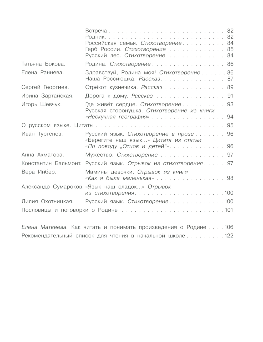 В книгу вошли произведения русских поэтов и писателей о любви к Родине, её природе, истории и языку. Они помогут сформировать у ребёнка чувство патриотизма и гордости за свою страну, осознать ответственность за настоящее и будущее родного края. Книга подойдёт для домашнего чтения, а также поможет учителям начальных классов провести интересное тематическое занятие. В каждом сборнике серии есть уникальное приложение, разработанное экспертами по литературному чтению. Лёгкий стиль, чёткая постановка задач, ясные ответы, интересные примеры - освоить эффективные приёмы работы с текстом по силам любому взрослому! Для младшего школьного возраста.| Издательство | Детская и юношеская книга |