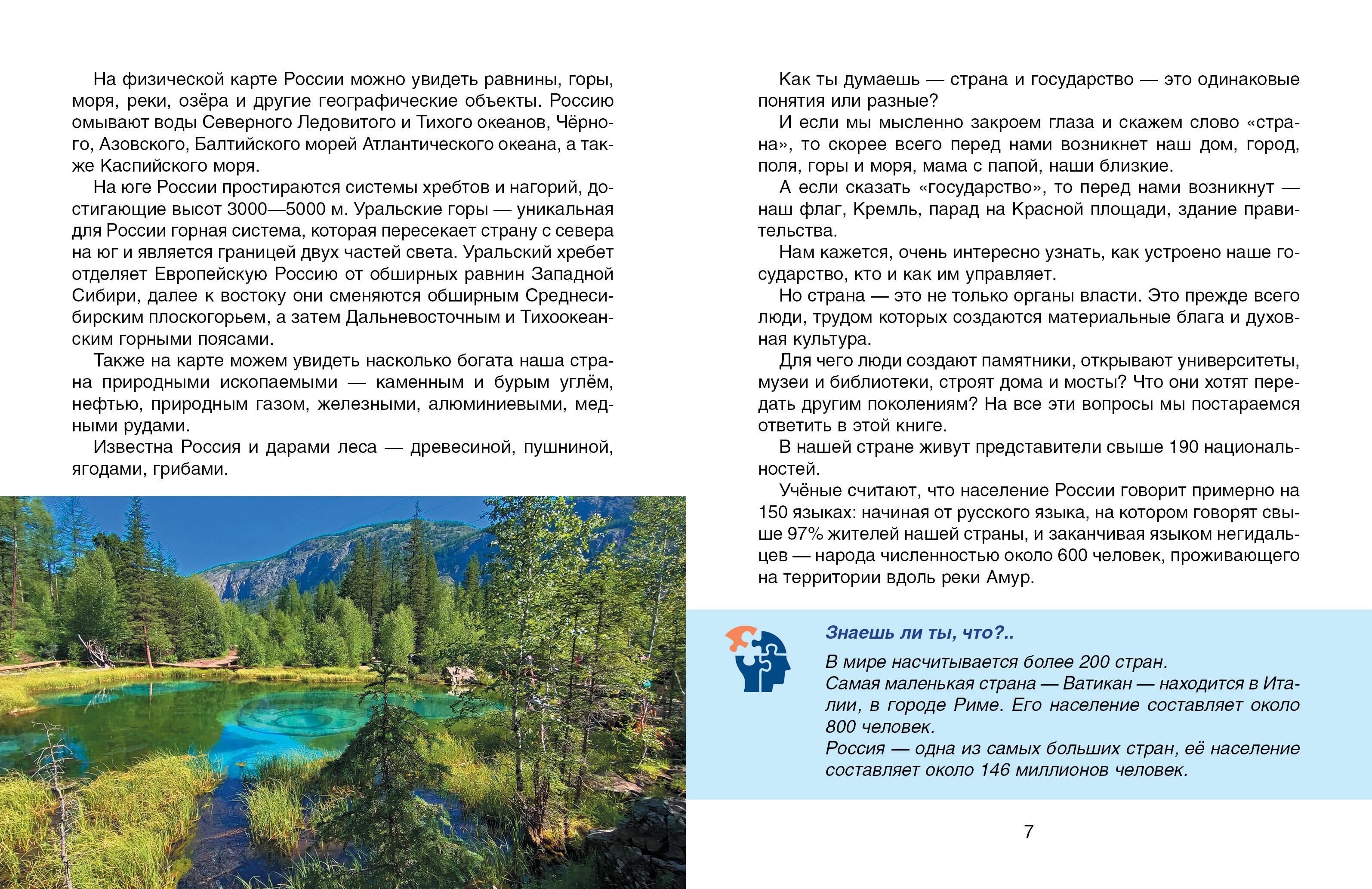 В пособии представлена информация о государственном устройстве, истории, культурном достоянии, народах и религиях России, а также о социальной политике, символах и субъектах Российской Федерации. Книга предназначена для младших школьников. Она поможет юным читателям понять, что значит быть гражданином и патриотом своей страны. Материалы можно использовать на уроках "Разговоры о важном".| Издательство | Издательство "АСТ" |