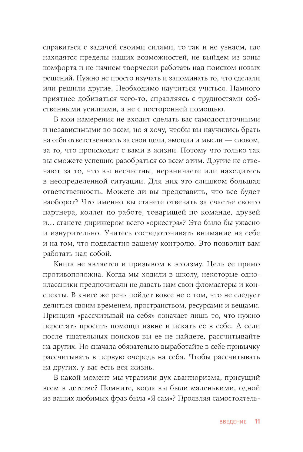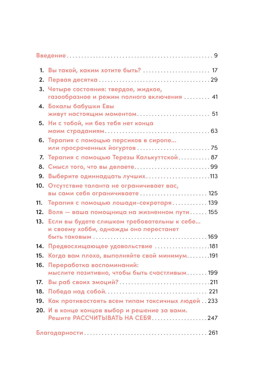 Эта книга - о том, как не бояться брать ответственность за маленькие и большие решения, за свою карьеру и успех в жизни. Она о том, как не зависеть от чужого мнения, не ждать помощи от окружающих, не надеяться на удачное стечение обстоятельств, которое никак не наступит. Прочитав ее, вы обретете надежную внутреннюю опору, научитесь самостоятельно достигать желаемого, не откладывая свою жизнь на потом. Одна из самых известных в Испании психологов Патрисия Рамирес использует яркие метафоры, такие как «бокалы бабушки Евы», «лошадь-секретарь» или «персики в сиропе», чтобы просто и доступно объяснить лежащие в основе книги психологические концепции. А еще внутри вы найдете множество полезных техник и упражнений, которые помогут стать увереннее в себе.| Издательство | Альпина Паблишер |