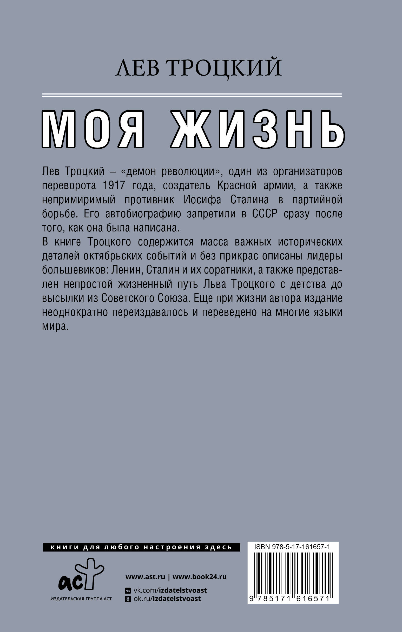 Лев Троцкий - "демон революции", один из организаторов переворота 1917 года, создатель Красной Армии, а также непримиримый противник Иосифа Сталина в партийной борьбе. Его автобиографию запретили в СССР сразу после того, как она была написана. В книге Троцкого содержится масса важных исторических деталей октябрьских событий, и без прикрас описаны лидеры большевиков: Ленин, Сталин и их соратники, а также представлен не простой жизненный путь Льва Троцкого - с детства до высылки из Советского Сюоза. Еще при жизни автора издание неоднократно переиздавалась и переведена на многие языки мира.| Издательство | Издательство "АСТ" |
