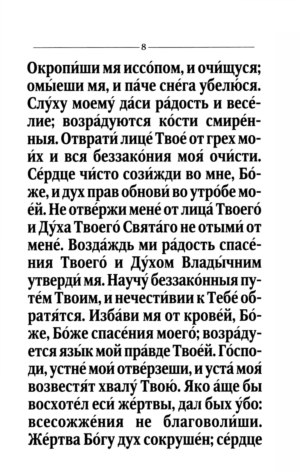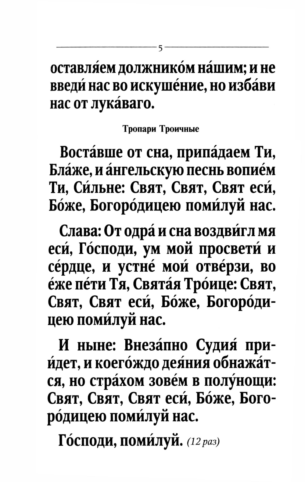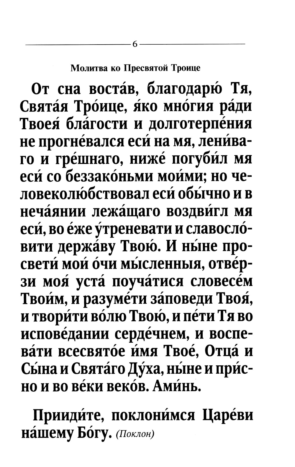 Настоящее издание, напечатанное крупным гражданским шрифтом, включает в себя молитвослов традиционного содержания с совмещенными канонами, а также Псалтирь Пророка Давида.| Издательство | Терирем |