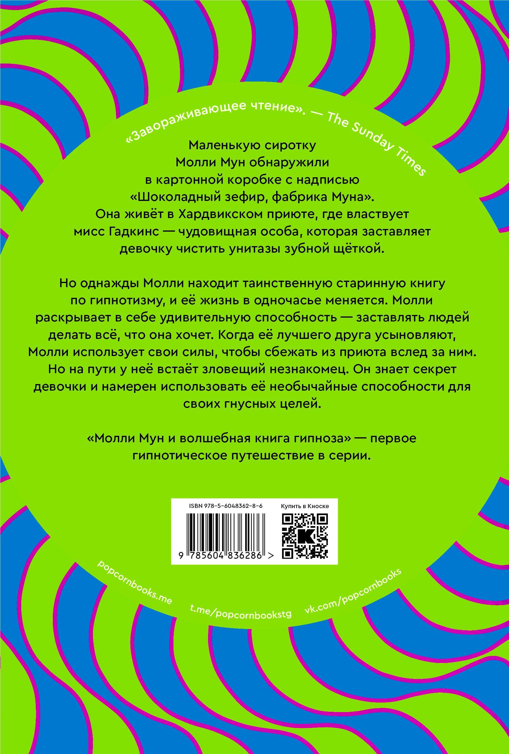 Маленькую сиротку Молли Мун обнаружили в картонной коробке с надписью «Шоколадный зефир, фабрика Муна». Она живёт в Хардвикском приюте, где властвует мисс Гадкинс - чудовищная особа, которая заставляет девочку чистить унитазы зубной щёткой. Но однажды Молли находит таинственную старинную книгу по гипнотизму, и её жизнь в одночасье меняется. Молли раскрывает в себе удивительную способность - заставлять людей делать всё, что она хочет. Когда её лучшего друга усыновляют, Молли использует свои силы, чтобы сбежать из приюта вслед за ним. Но на пути Молли встаёт зловещий незнакомец. Он знает секрет девочки и намерен использовать её необычайные способности для своих гнусных целей.| Издательство | ИНДИВИДУУМ ПРИНТ ООО |