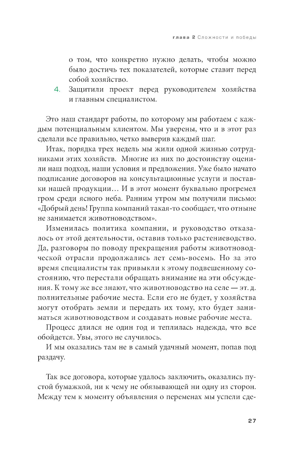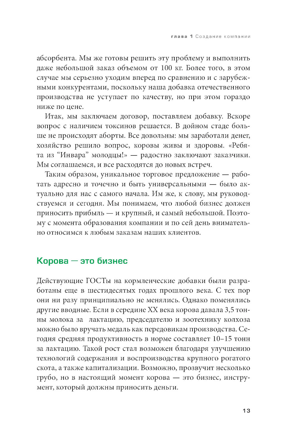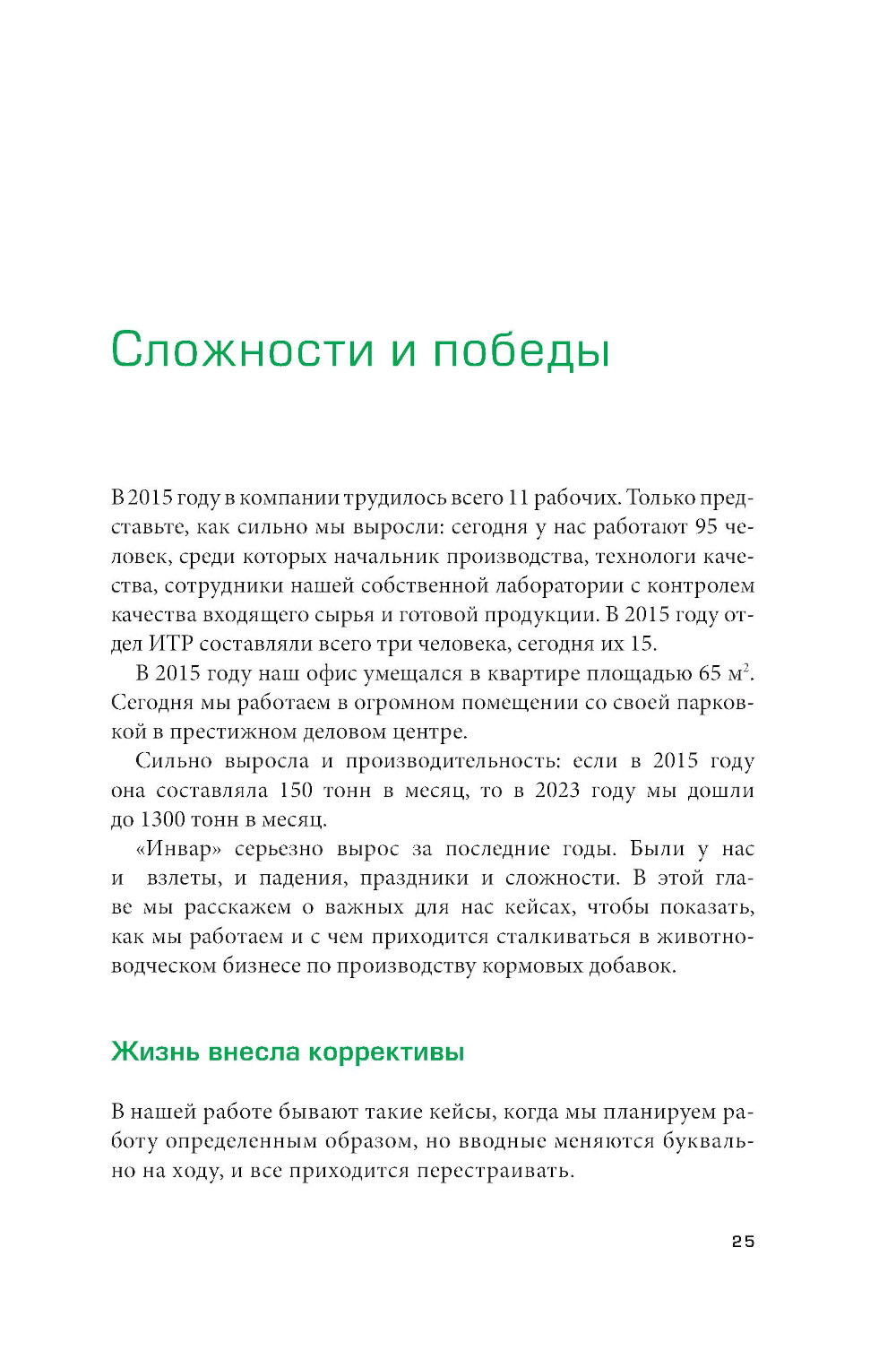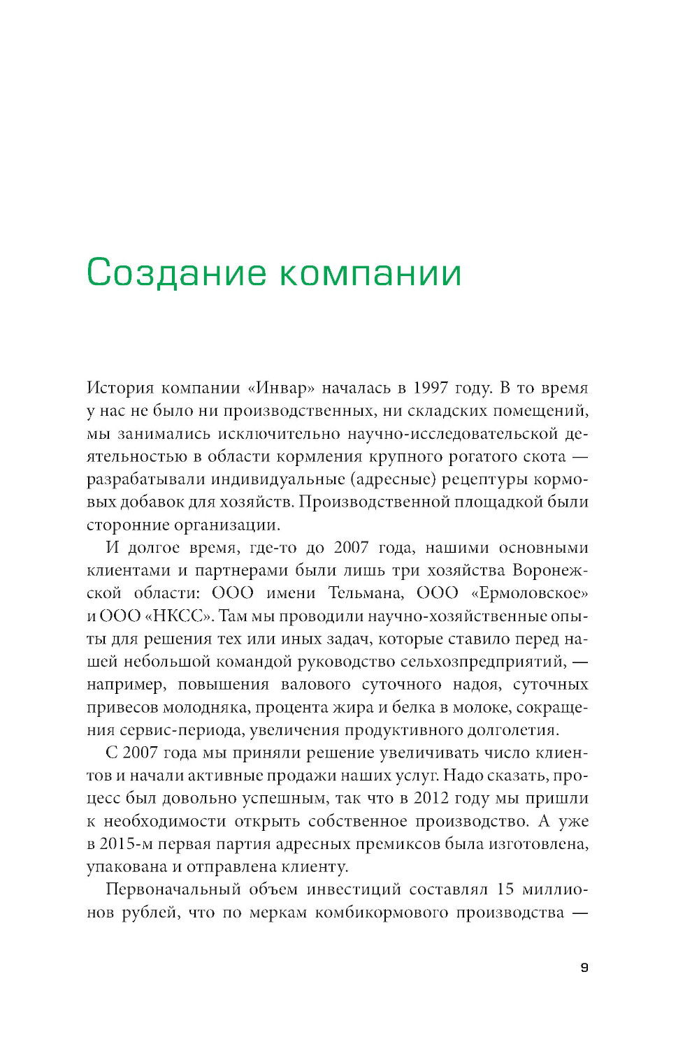 Ваши луга могут быть зеленее, ваши коровы - здоровее, а ваш бизнес - прибыльнее. Вы - владелец сельхозпредприятия и мечтаете о стабильной прибыли? Тогда эта книга для вас! История компании «Инвар» приоткрывает завесу тайны над своими уникальными разработками, которые уже помогли десяткам хозяйств по всей России выйти на новый уровень продуктивности. В тесном сотрудничестве с ведущим исследовательским центром животноводства, они разрабатывают и производят уникальные кормовые добавки-драйверы, которые целенаправленно улучшают здоровье и продуктивность коров, обеспечивая рентабельность хозяйств. Вы узнаете историю становления компании «Инвар», ее достижения, трудности и планы на будущее. Ознакомитесь с успешными проектами и лицами, стоящими за каждым успехом, а также получите действенные инструменты продаж и работы с возражениями клиентов. Но это не просто история успеха одной компании. Это руководство к действию для каждого, кто хочет внести свой вклад в продовольственную безопасность страны. Вы поймете, что качественное импортозамещение в кормопроизводстве возможно, а успешное животноводство в России - это реальность.| Издательство | Альпина ПРО |