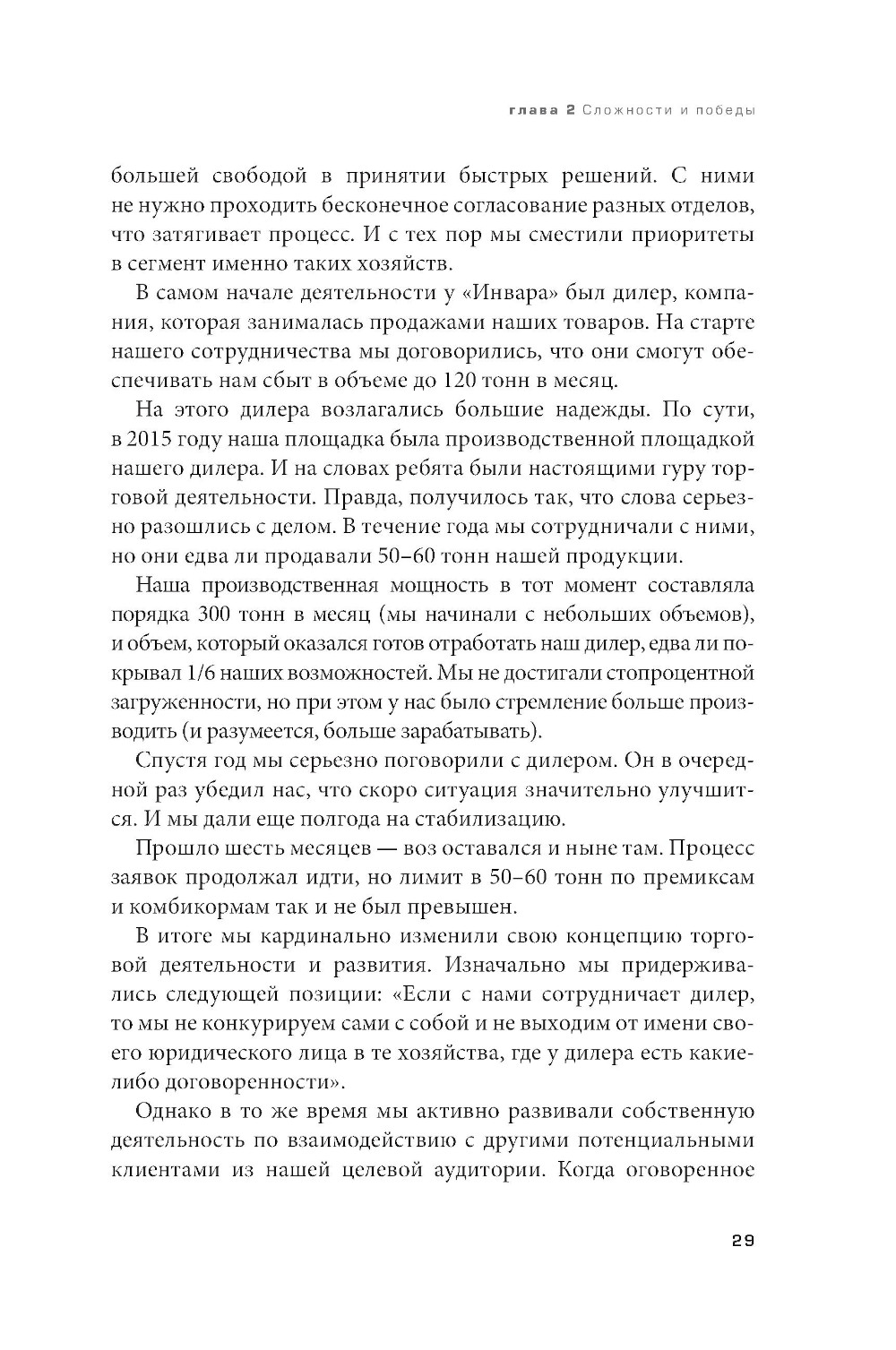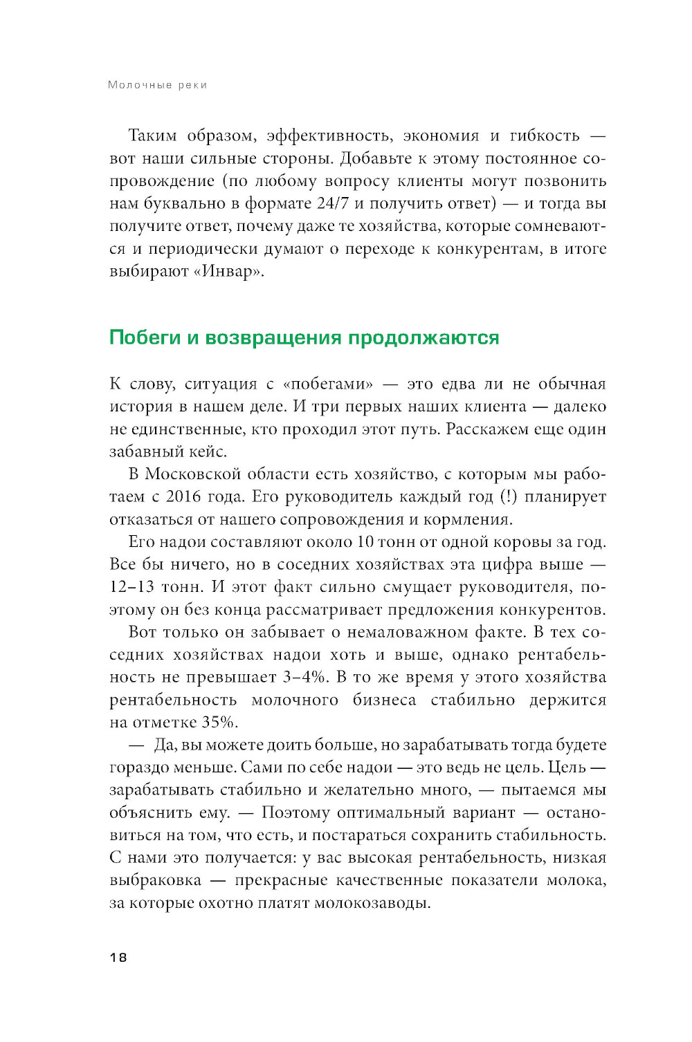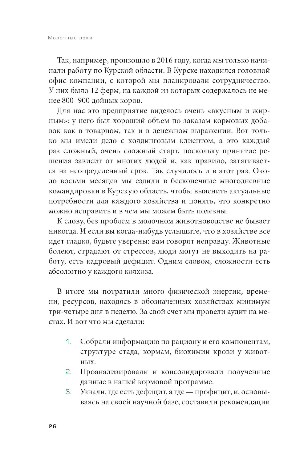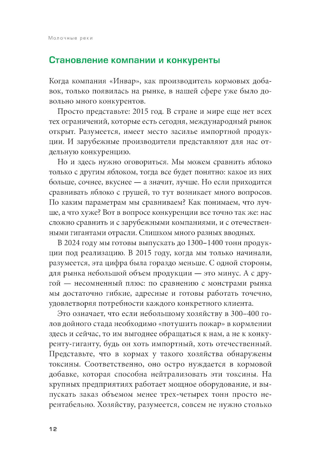 Ваши луга могут быть зеленее, ваши коровы - здоровее, а ваш бизнес - прибыльнее. Вы - владелец сельхозпредприятия и мечтаете о стабильной прибыли? Тогда эта книга для вас! История компании «Инвар» приоткрывает завесу тайны над своими уникальными разработками, которые уже помогли десяткам хозяйств по всей России выйти на новый уровень продуктивности. В тесном сотрудничестве с ведущим исследовательским центром животноводства, они разрабатывают и производят уникальные кормовые добавки-драйверы, которые целенаправленно улучшают здоровье и продуктивность коров, обеспечивая рентабельность хозяйств. Вы узнаете историю становления компании «Инвар», ее достижения, трудности и планы на будущее. Ознакомитесь с успешными проектами и лицами, стоящими за каждым успехом, а также получите действенные инструменты продаж и работы с возражениями клиентов. Но это не просто история успеха одной компании. Это руководство к действию для каждого, кто хочет внести свой вклад в продовольственную безопасность страны. Вы поймете, что качественное импортозамещение в кормопроизводстве возможно, а успешное животноводство в России - это реальность.| Издательство | Альпина ПРО |