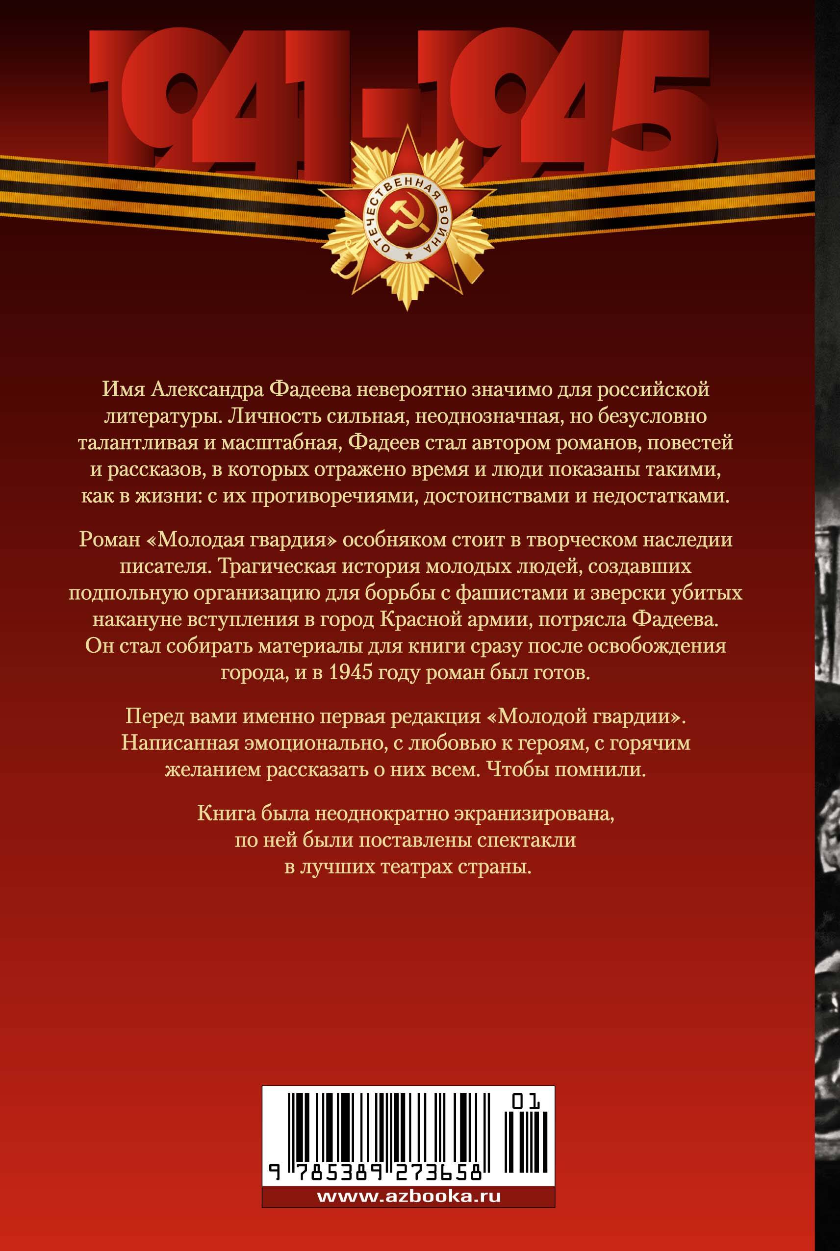 Имя Александра Фадеева невероятно значимо для российской литературы. Личность сильная, неоднозначная, но безусловно талантливая и масштабная, Фадеев стал автором романов, повестей и рассказов, в которых отражено время, и люди показаны такими, как в жизни: с их противоречиями, достоинствами и недостатками. Роман "Молодая гвардия" особняком стоит в творческом наследии писателя. Трагическая история молодых людей, организовавших подпольную организацию для борьбы с фашистами и зверски убитых накануне вступления в город Красной армии, потрясла Фадеева. Он стал собирать материалы для книги сразу после освобождения города, и в 1945 году роман был готов. Перед вами именно первая редакция "Молодой гвардии". Написанная эмоционально, с любовью к героям, с горячим желанием рассказать о них всем. Чтобы помнили. Книга была неоднократно экранизирована, по ней были поставлены спектакли в лучших театрах страны.| Издательство | Азбука-Аттикус Издат.группа ООО |